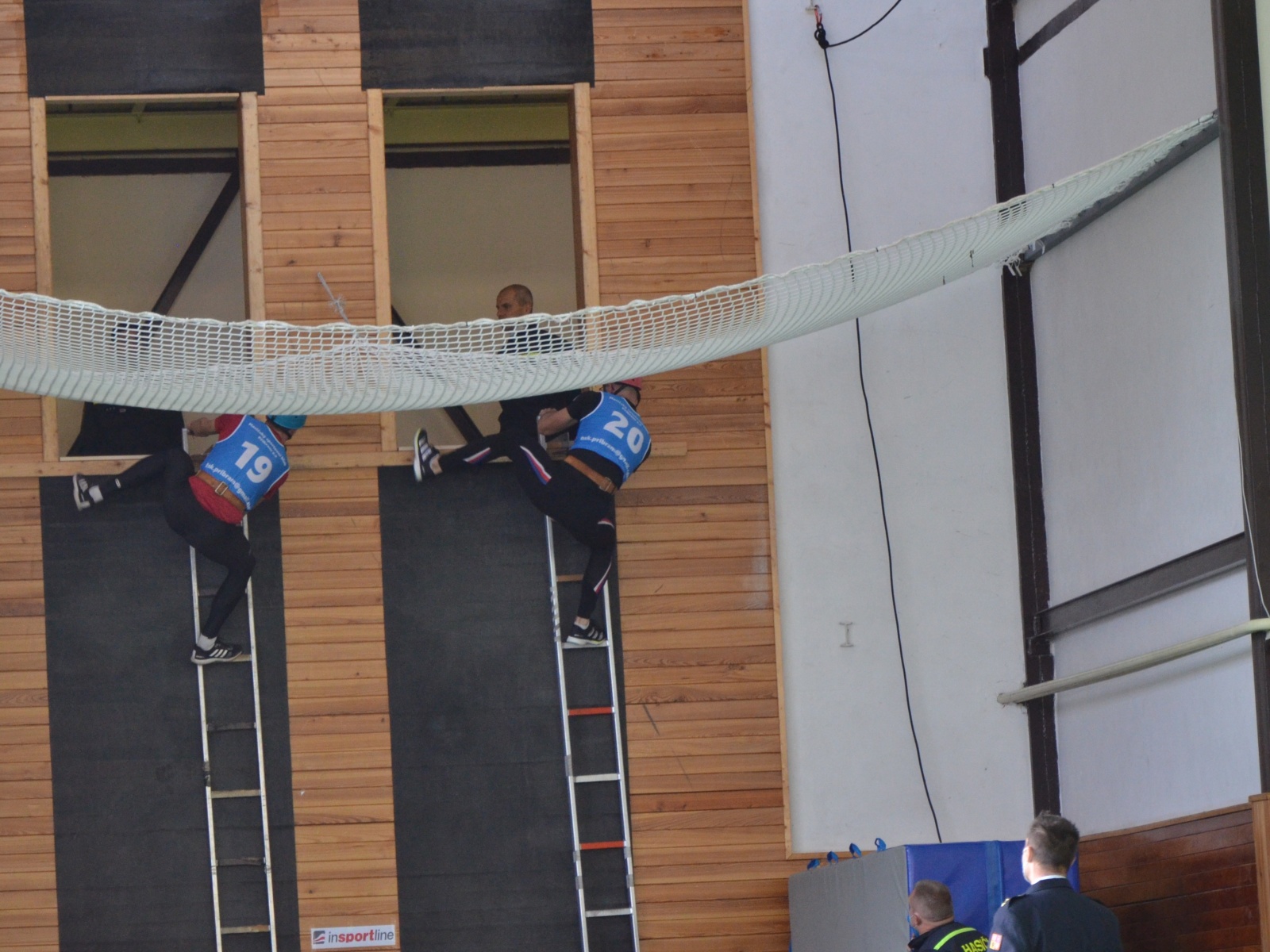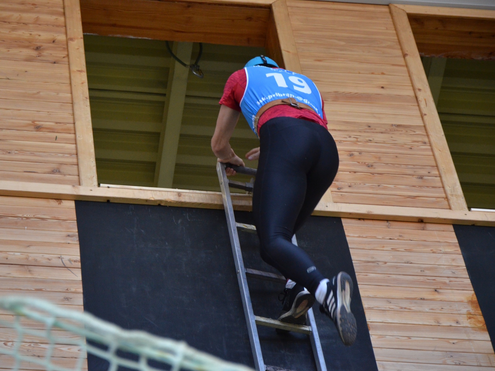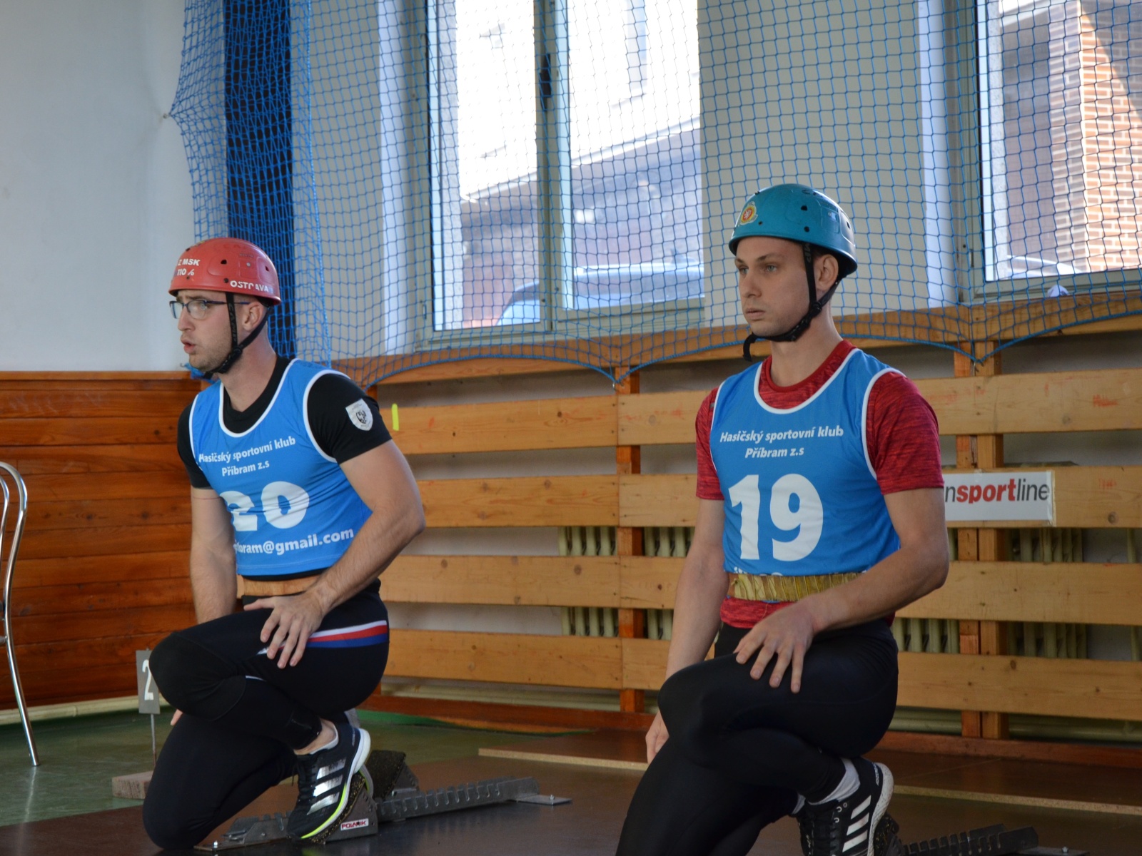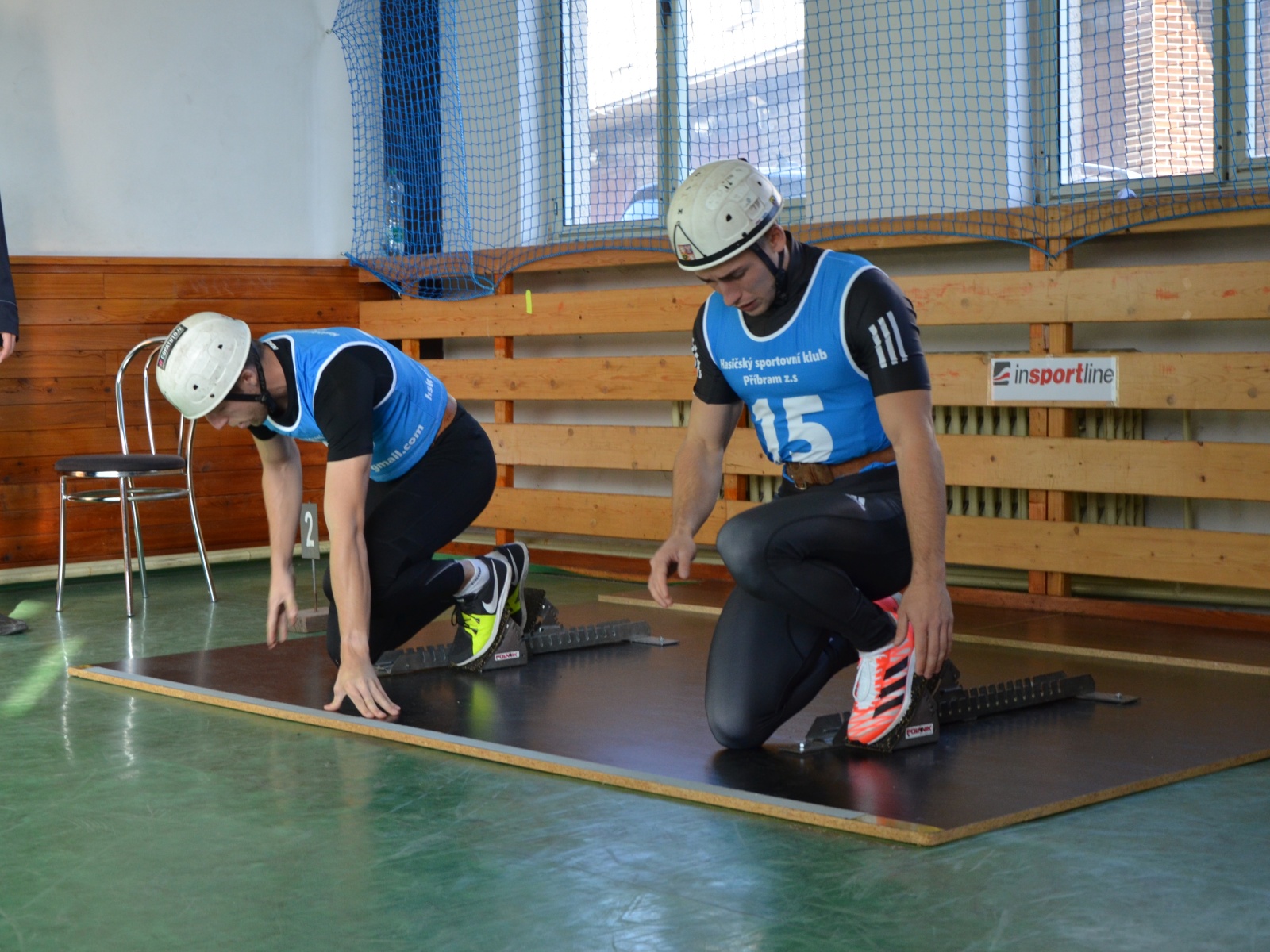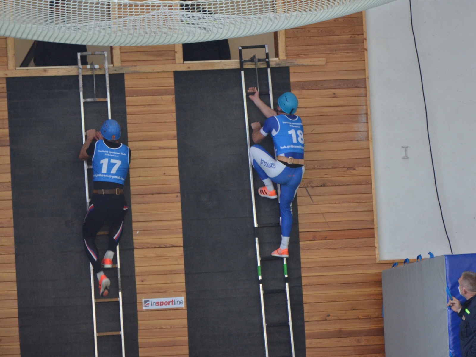 Poslední říjnovou sobotu se na stanici v Příbrami od devíti hodin dopoledne konal už čtvrtý ročník halové soutěže ve výstupu do čtvrtého podlaží cvičné věže pomocí jednohákového žebříku.