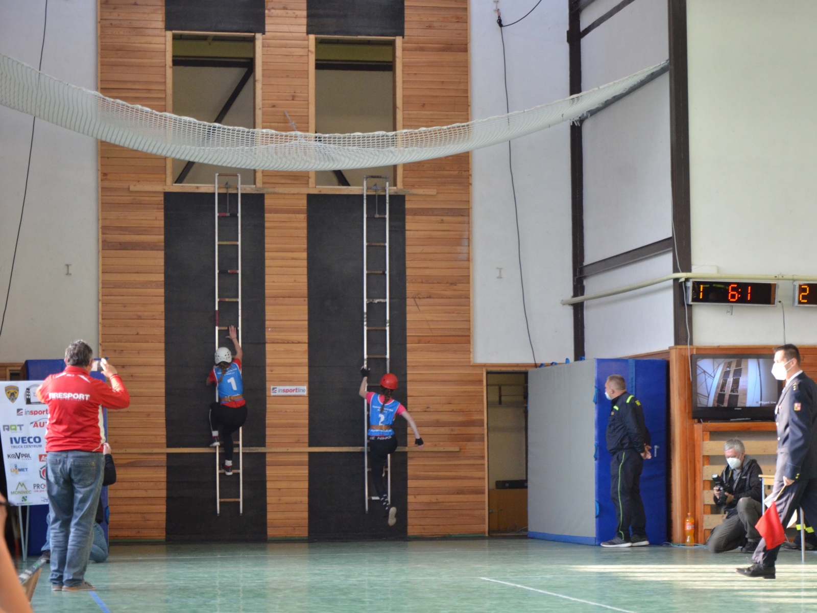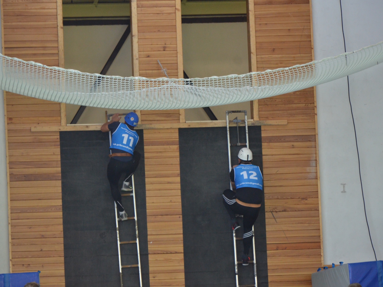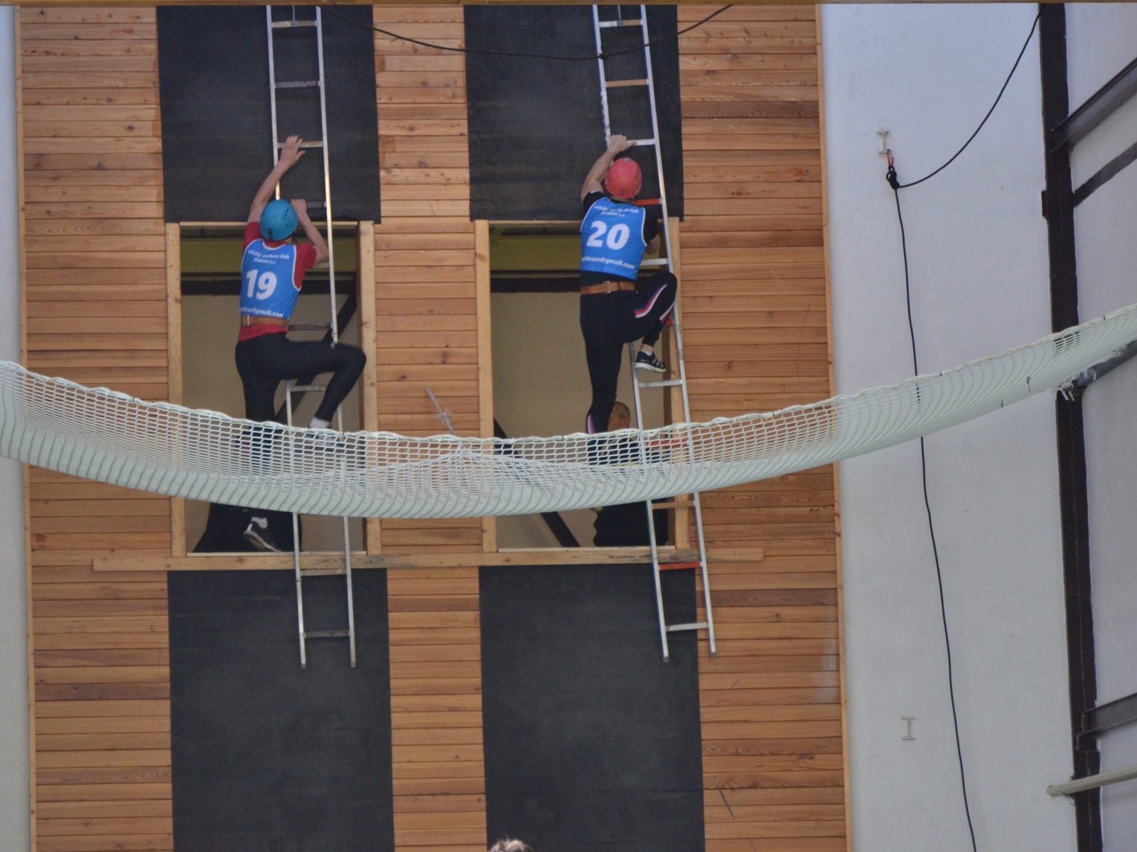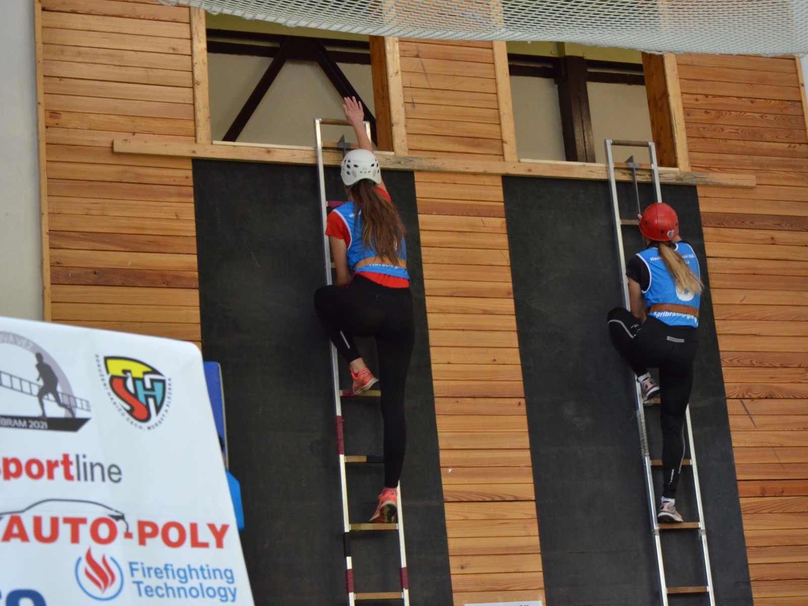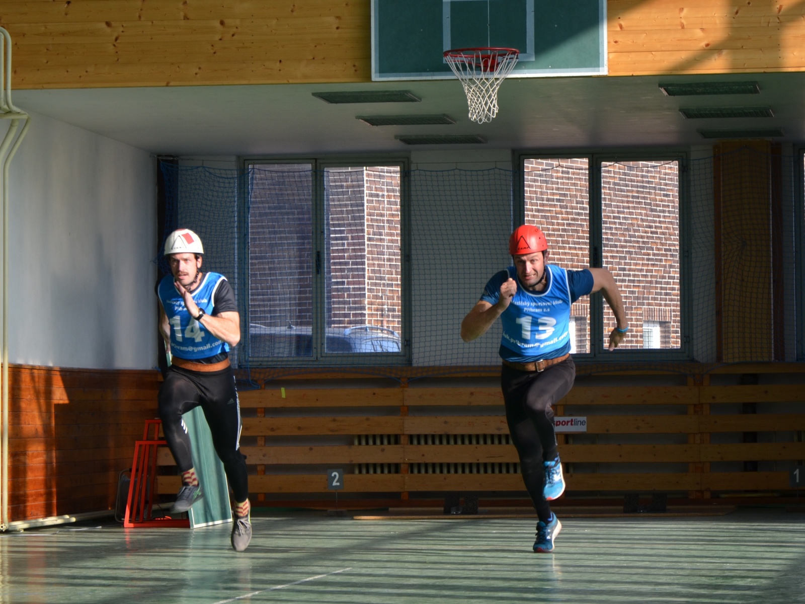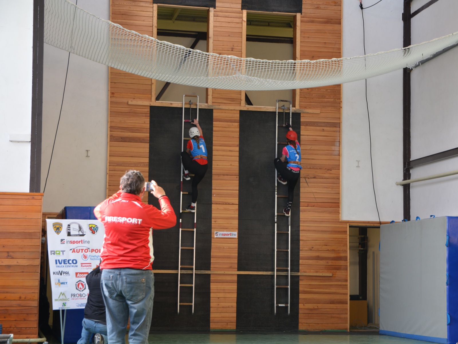 Poslední říjnovou sobotu se na stanici v Příbrami od devíti hodin dopoledne konal už čtvrtý ročník halové soutěže ve výstupu do čtvrtého podlaží cvičné věže pomocí jednohákového žebříku.
