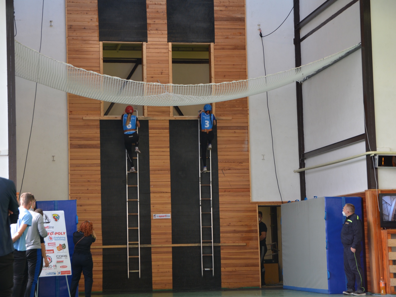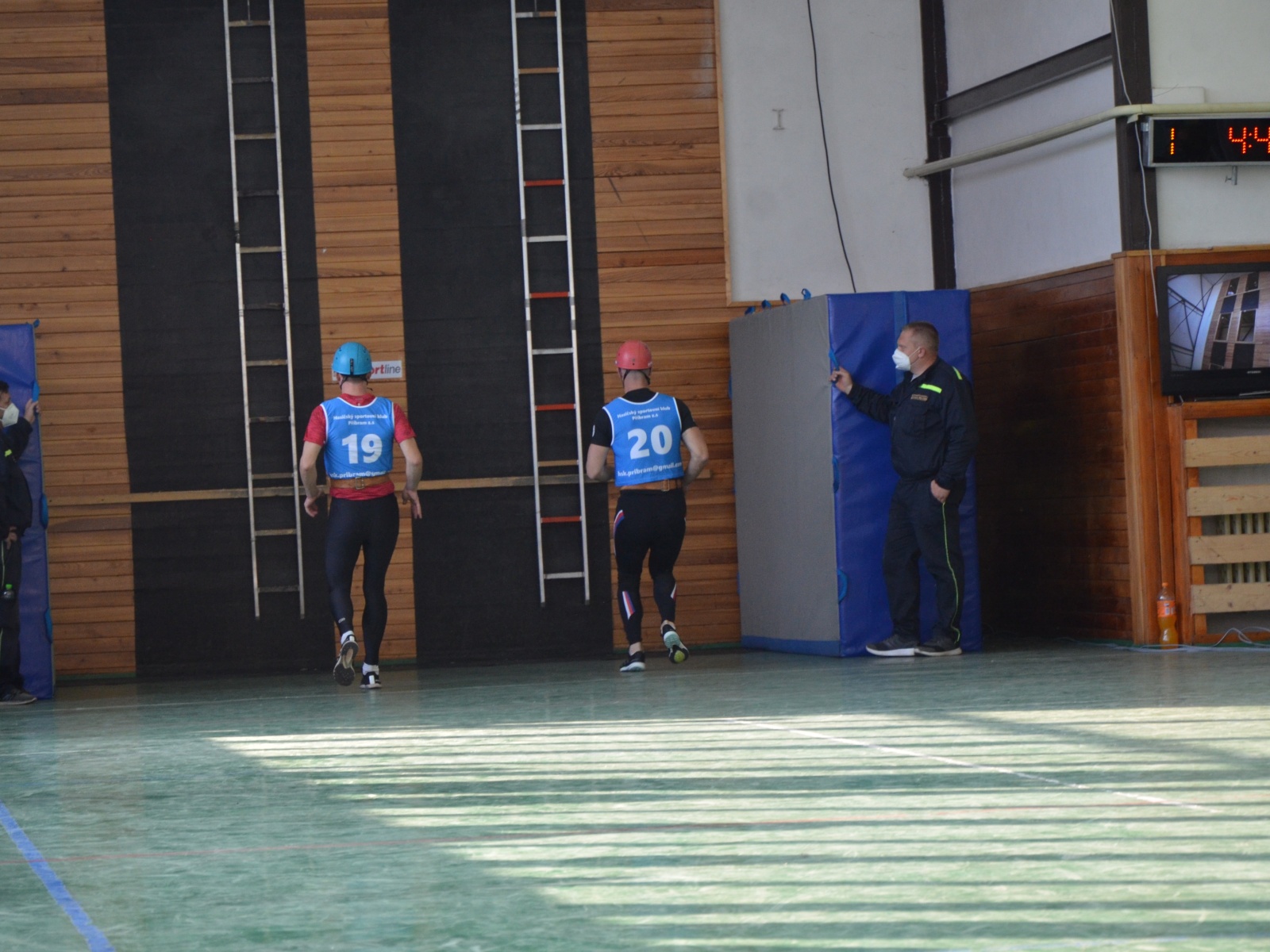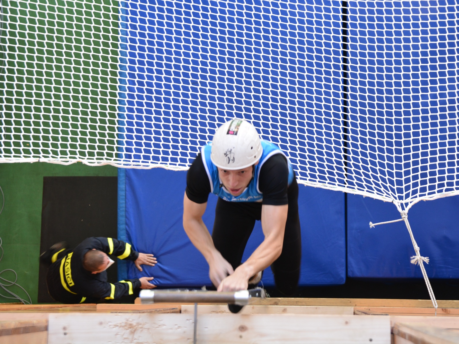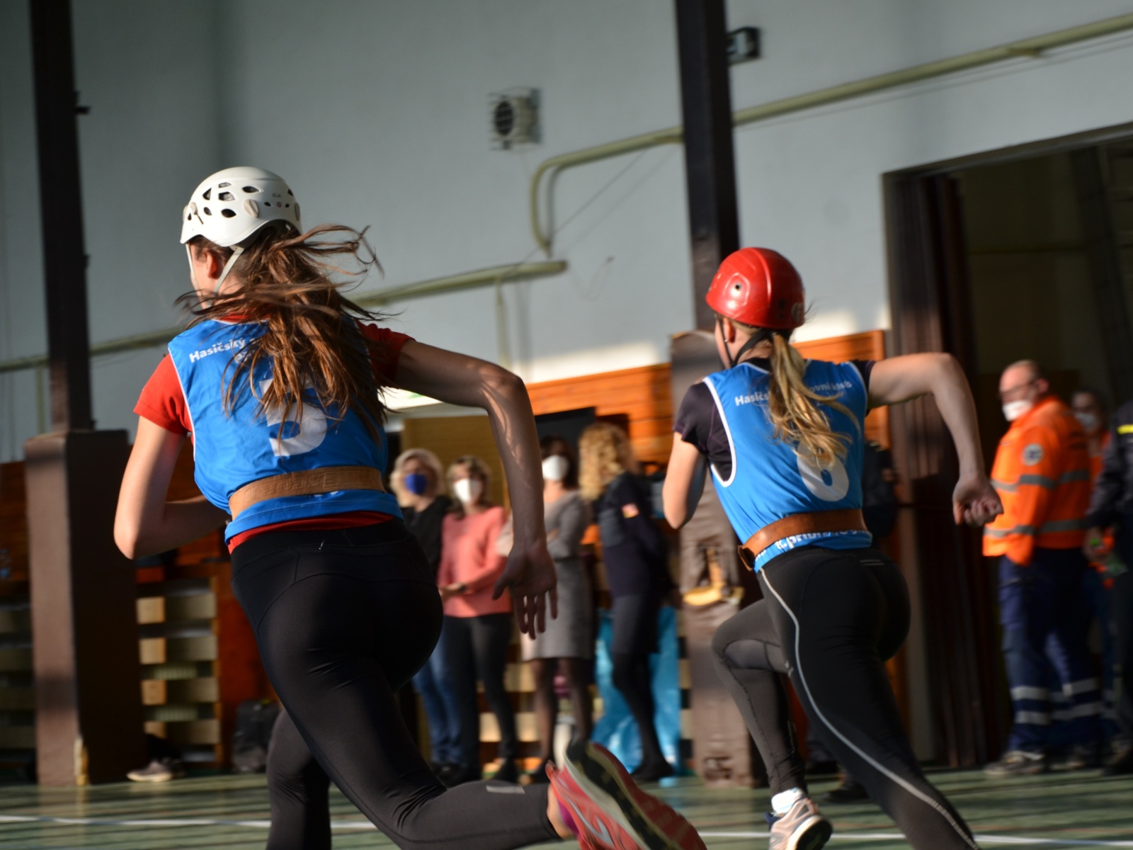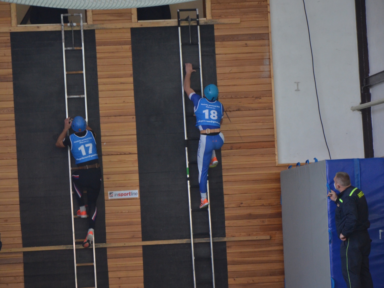 Poslední říjnovou sobotu se na stanici v Příbrami od devíti hodin dopoledne konal už čtvrtý ročník halové soutěže ve výstupu do čtvrtého podlaží cvičné věže pomocí jednohákového žebříku.