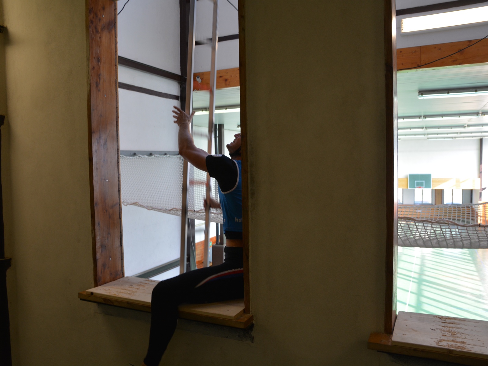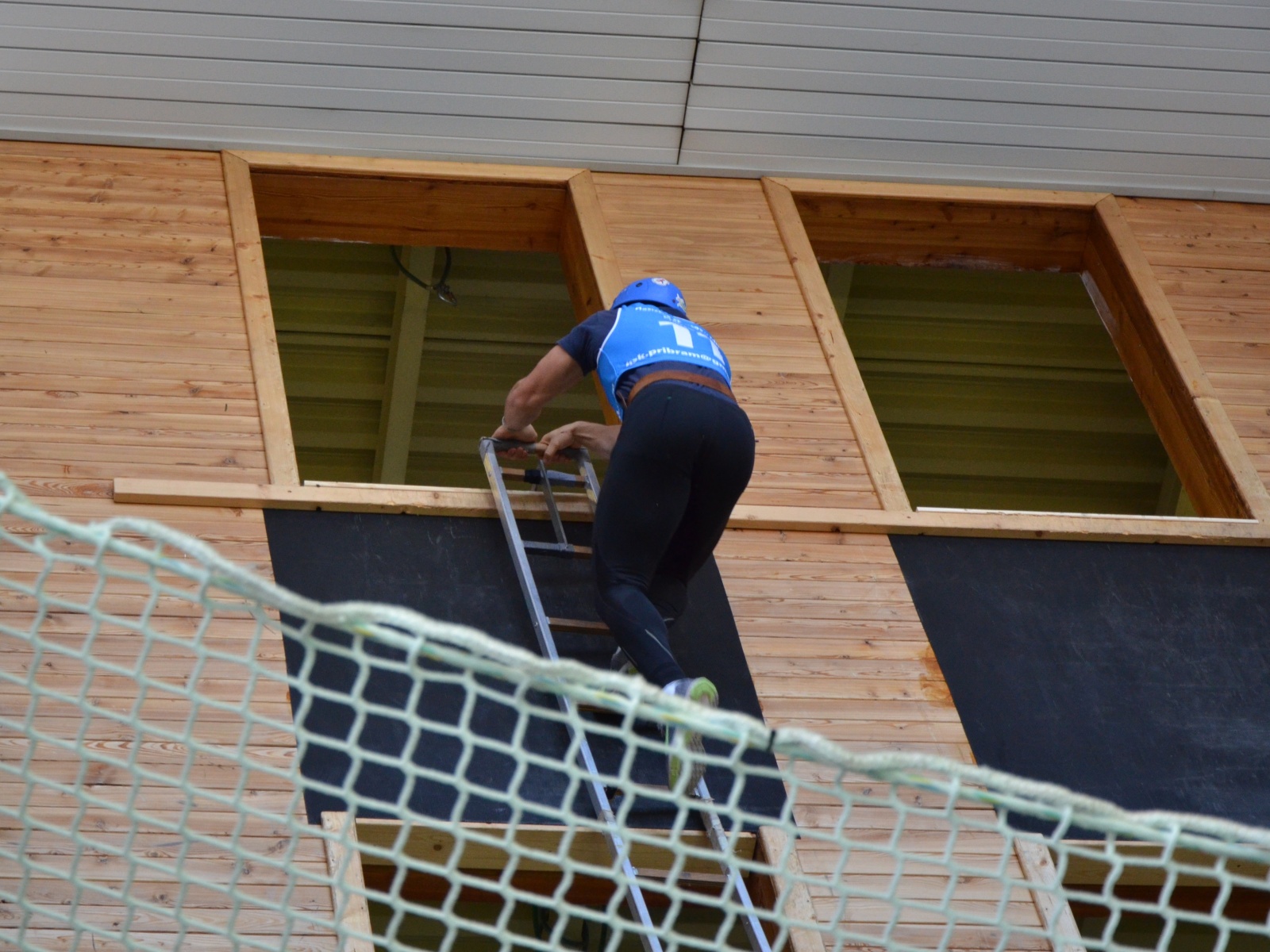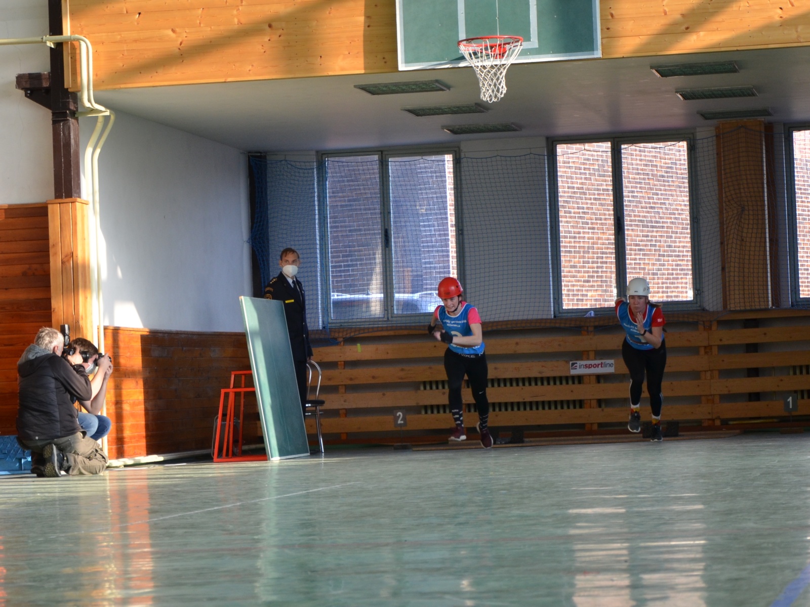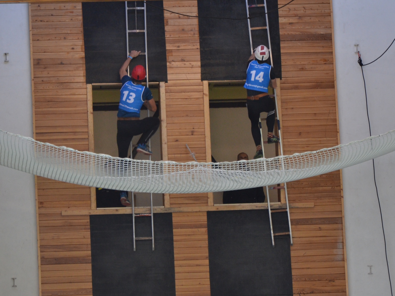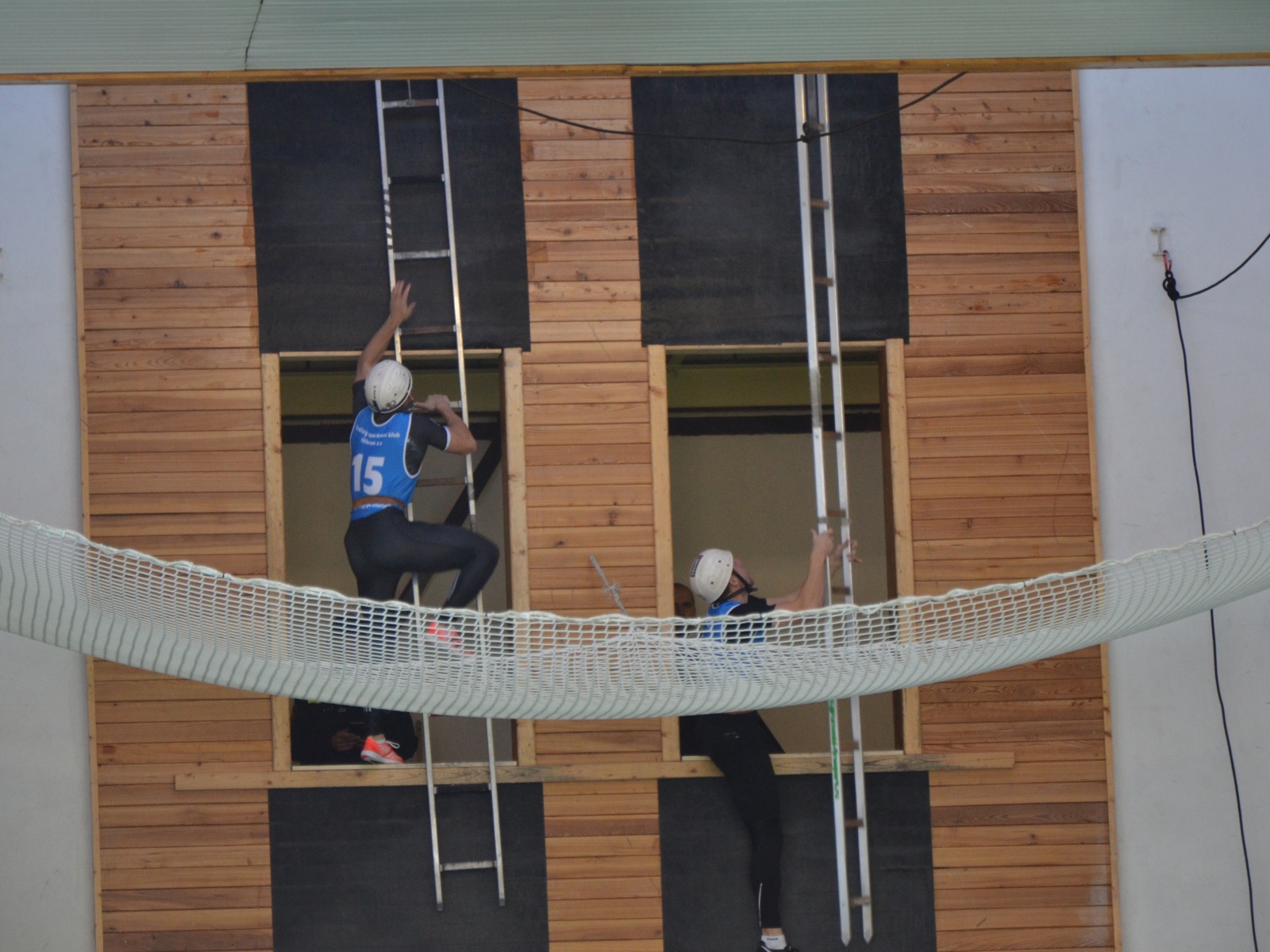 Poslední říjnovou sobotu se na stanici v Příbrami od devíti hodin dopoledne konal už čtvrtý ročník halové soutěže ve výstupu do čtvrtého podlaží cvičné věže pomocí jednohákového žebříku.