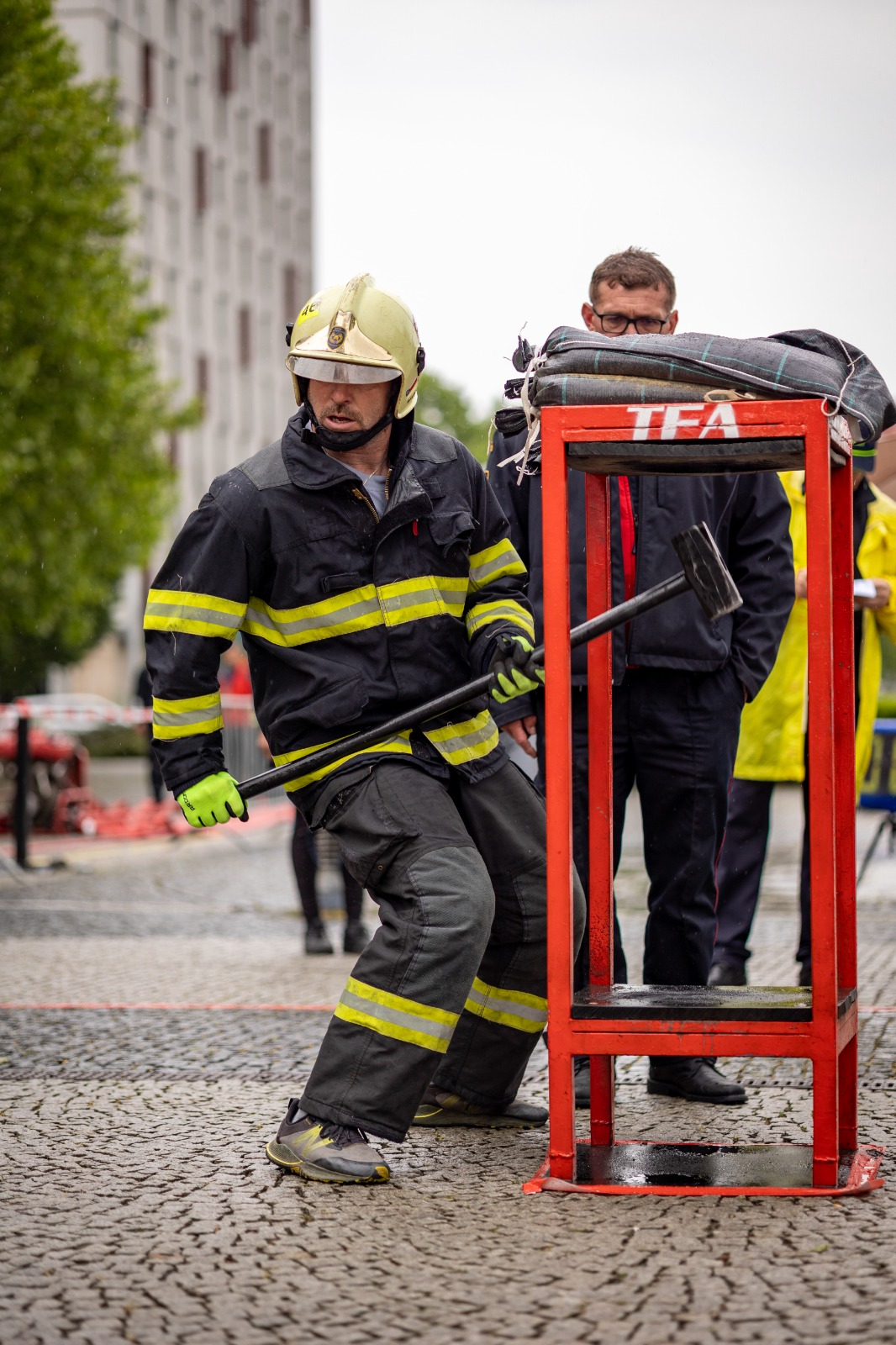 Olomouc – Před Regionálním centrem Olomouc se ve čtvrtek 22. května 2025 zastavil čas. Hřmění oceli, výkřiky rozhodčích, funění soutěžících a pot lesků z tribun naplnily prostor okolo moderní výškové budovy v přednádražní čtvrti. Důvod? Elitní soutěž hasičů TFA Olomouc 2025, známá pod výstižným mottem: Nejtvrdší hasič přežije.