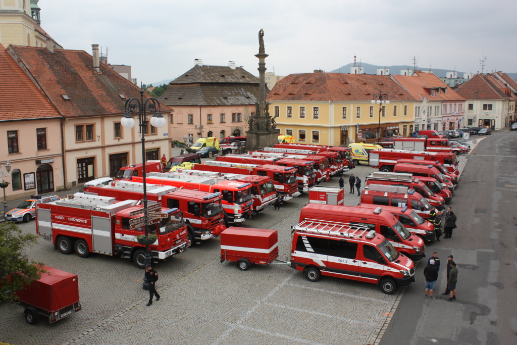 Diváci měli možnost sledovat nejen výkony soutěžících, ale také ukázku hasičské techniky sestávající z 10 velkokapacitních cisternových automobilových stříkaček a 10 dopravních automobilů.