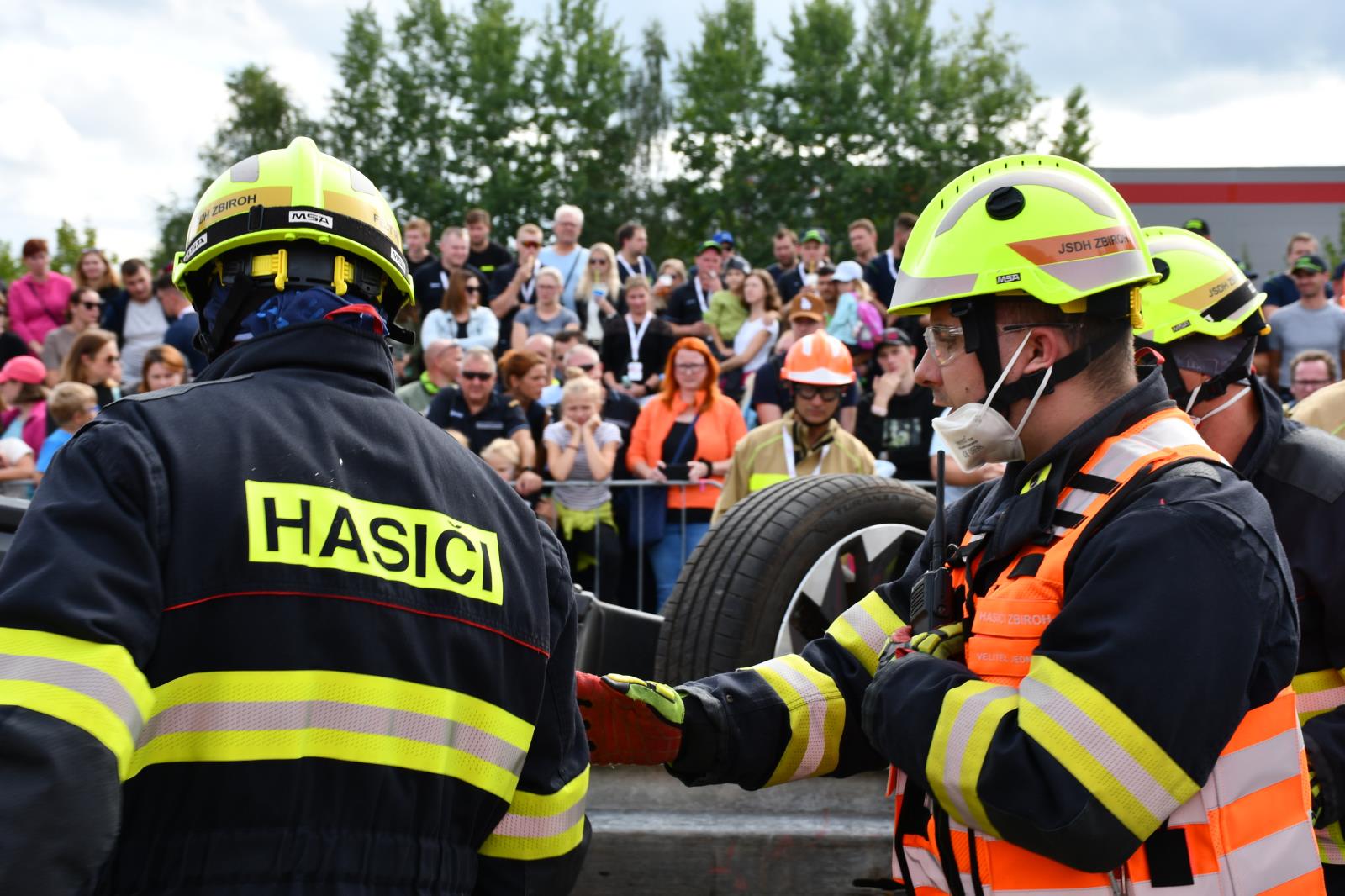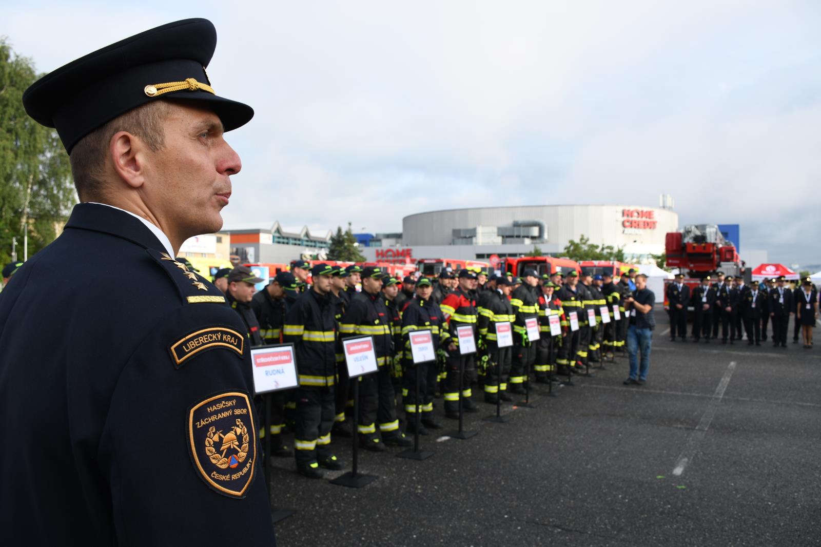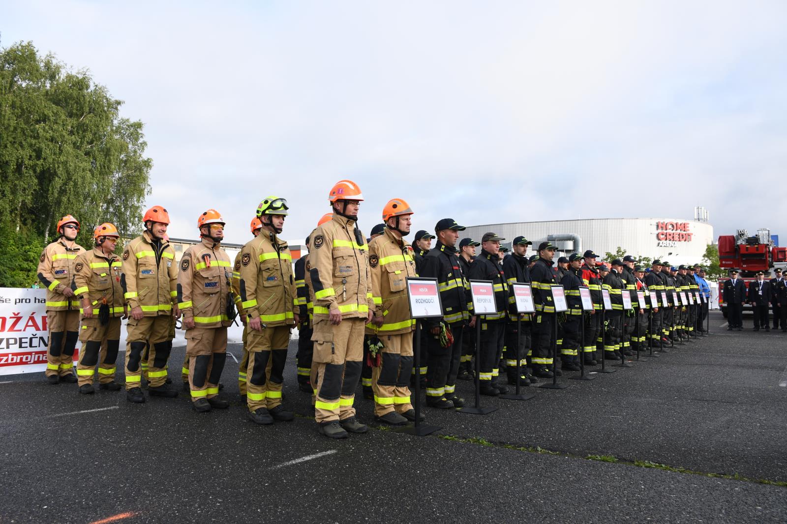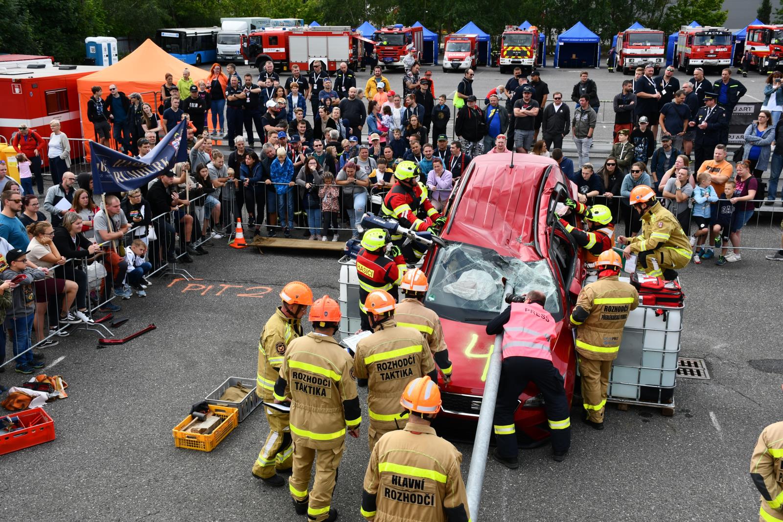 Na parkovišti u liberecké Home Credit Areny to poslední prázdninovou sobotu žilo hasičským mistrovstvím ve vyprošťování. V osm hodin ráno proběhl slavnostní nástup soutěžních družstev a zahájení.