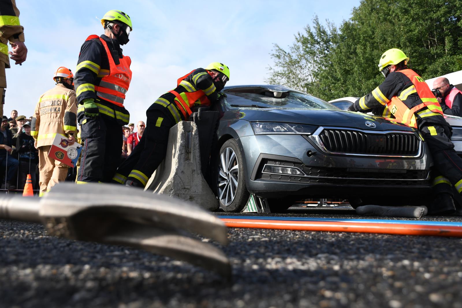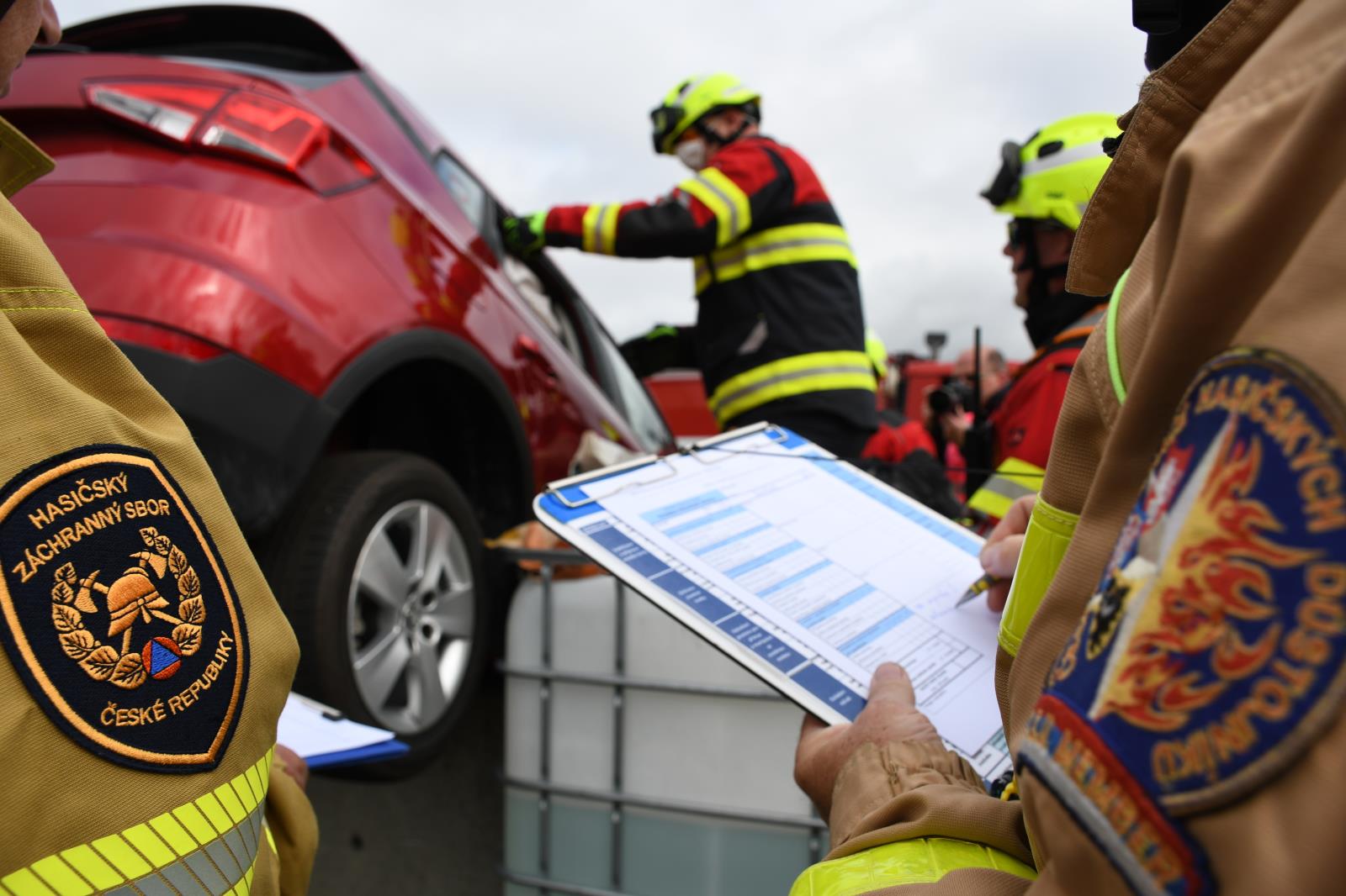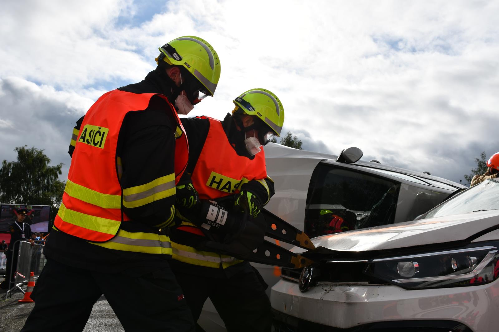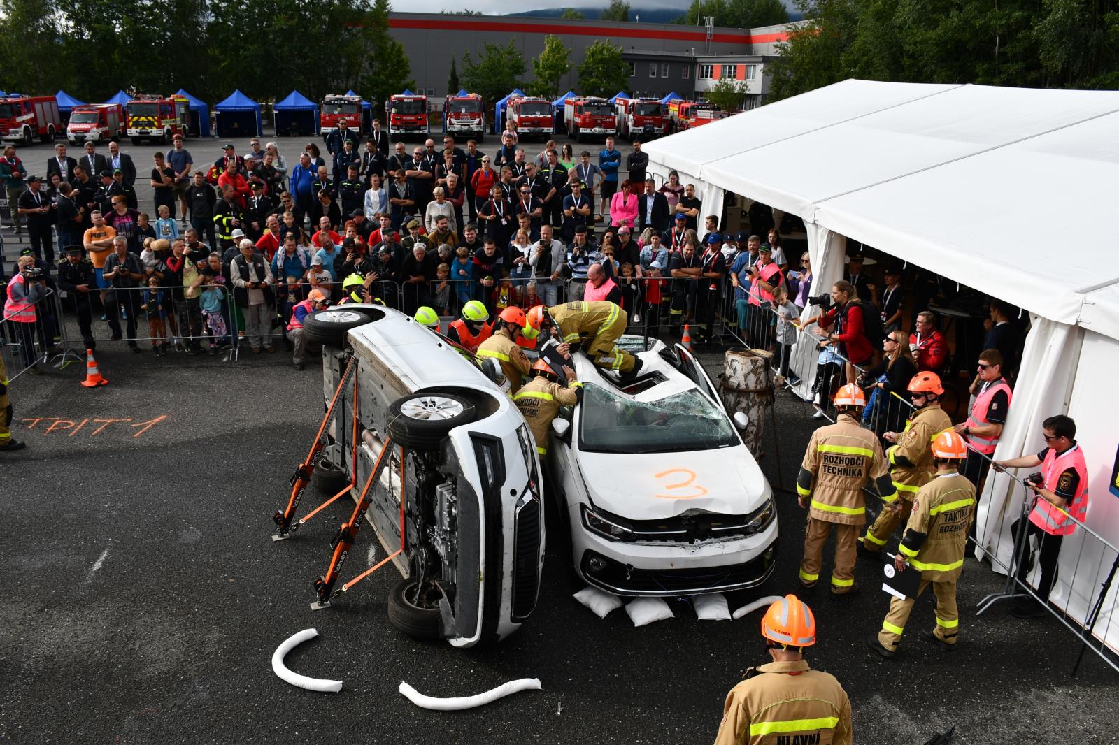 Na parkovišti u liberecké Home Credit Areny to poslední prázdninovou sobotu žilo hasičským mistrovstvím ve vyprošťování. V osm hodin ráno proběhl slavnostní nástup soutěžních družstev a zahájení.