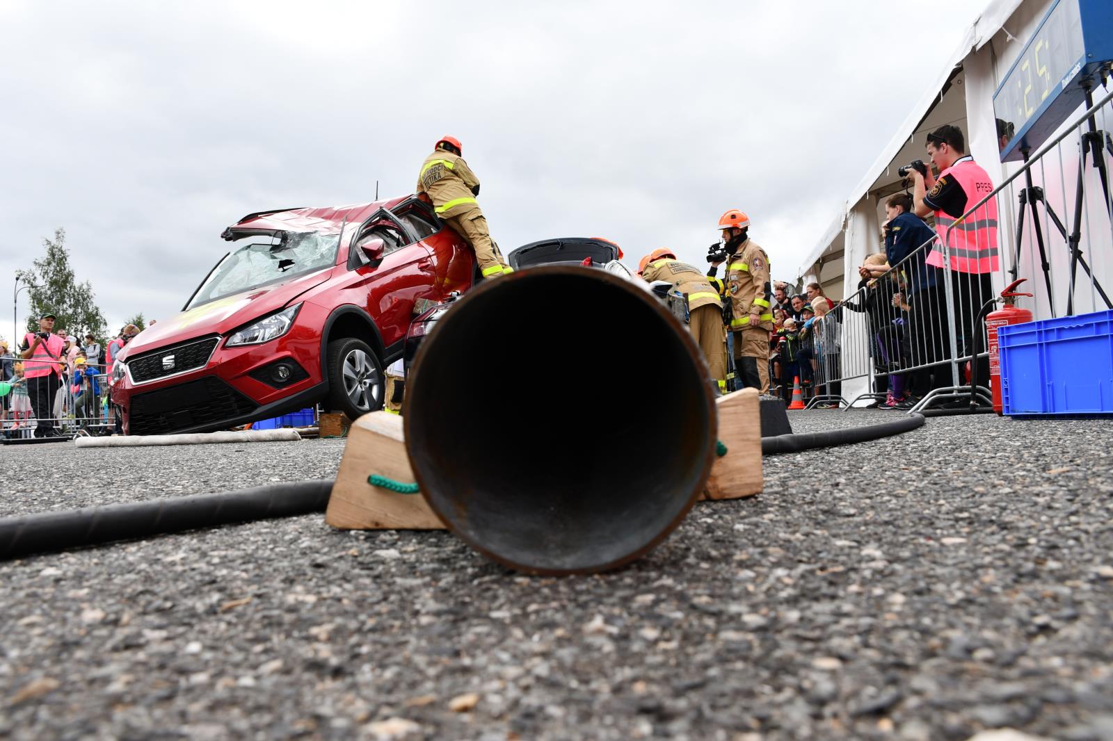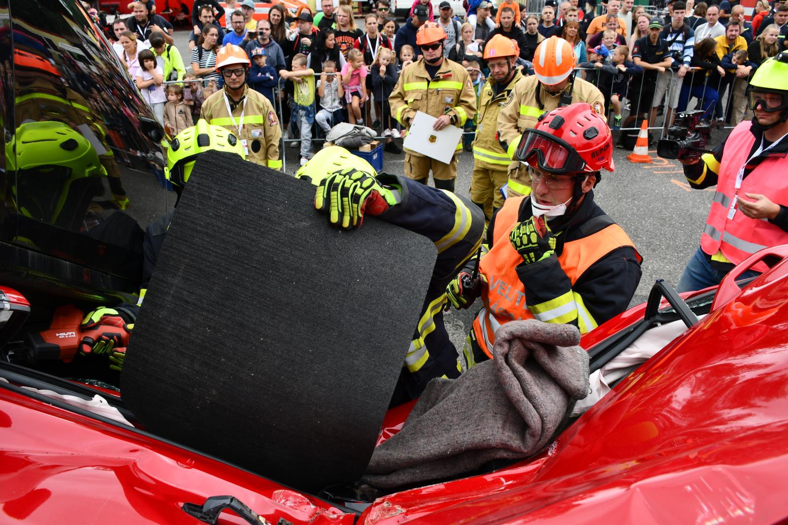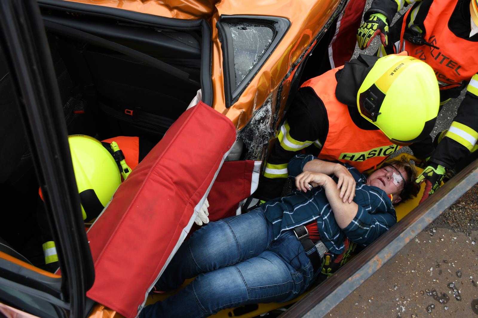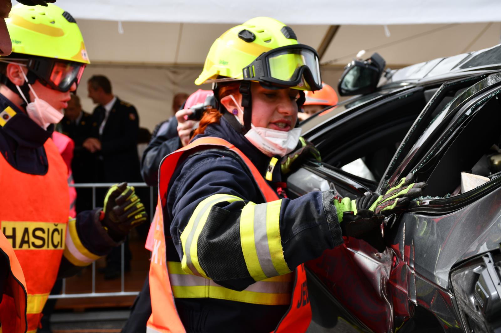 Na parkovišti u liberecké Home Credit Areny to poslední prázdninovou sobotu žilo hasičským mistrovstvím ve vyprošťování. V osm hodin ráno proběhl slavnostní nástup soutěžních družstev a zahájení.