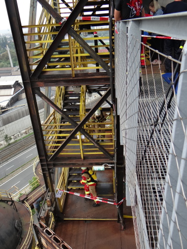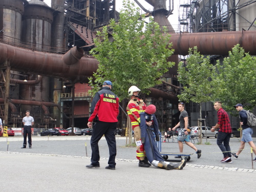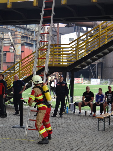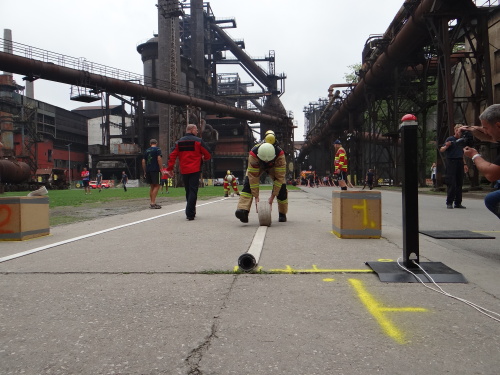 Závodníci absolvovali v kompletním zásahovém vybavení, včetně těžké tlakové láhve a přilby, celkem devět nejrůznějších pohybových, silových a překážkových disciplín. Cíl byl na vrcholu vysoké pece, zvané Bolt Tower.
