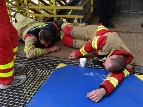 První dvojice z celkem osmi desítek tvrdých hasičů z celé ČR, Slovenska a Polska se již dnes dopoledne postupně postavily na start adrenalinového závodu TFA Ostravská věž (TFA=Nejtvrdší hasič přežije) v Dolní oblasti Vítkovice (DOV).