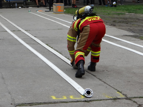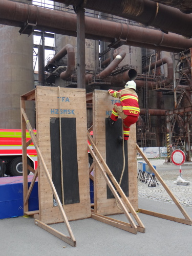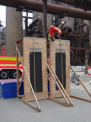 V kompletním zásahovém vybavení, včetně tlakové láhve a přilby, plní tvrdí hasiči celkem devět nejrůznějších pohybových, silových a překážkových disciplín. Cíl je na vrcholu vysoké pece, nazvané Bolt Tower. Děti si v areálu DOV - nedaleko od dospělých závodníků - zkouší své jednodušší „tééfáčko“.