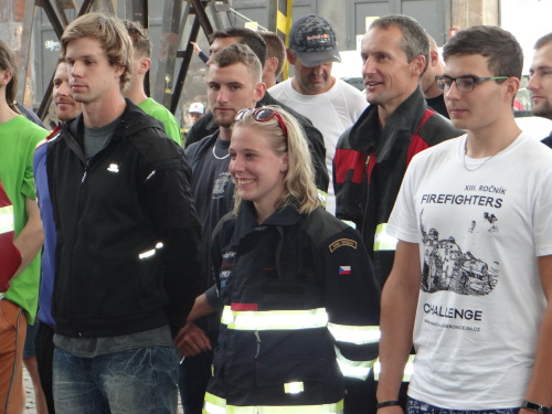Roman Viej dnes startuje paralelně s Janem Haderkou ve 14:34 jako poslední závodící muži, loňský vítěz a mistr světa v TFA Petr Moleš vybíhá s hadicemi zhruba hodinu před nimi, a to ve 13:46 s Vítem Malenovským.