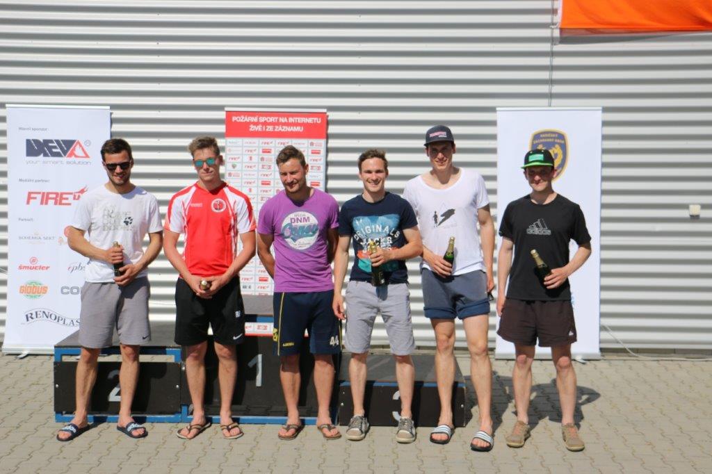 Ve 100 metrech překážek třetí pozice putuje k SDH Kvasiny, vybojoval ji Lukáš Kroupa, který dal stovku za 16,02 vteřin. Na druhém místě s výsledkem 15,77 vteřin skončil Martin Lidmila z SDH Zbožnov. Nejrychlejší, a tím pádem zlatý, byl Jakub Pěkný z Ústeckého kraje. Na vítězství mu stačilo být o pouhé 2 desetiny rychlejší, než jeho soupeři.