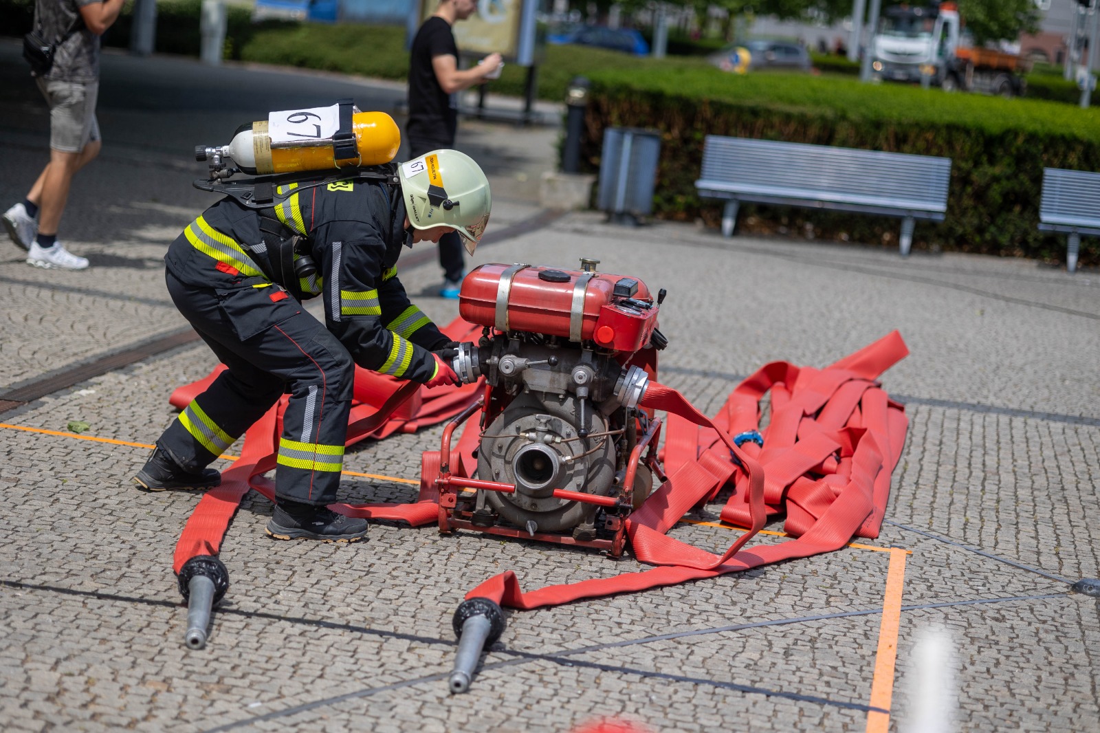 Na start se jich postavilo 12, úspěšné účinkování mají v nejnabitější kategorii do 34 let za sebou Lukáš Navrátil (3. místo, stanice Olomouc) nebo Pavel Popelka (4. místo, stanice Olomouc). Dařilo se i zkušeným borcům Michalu Přecechtělovi (2. místo, stanice Olomouc), Janu Šindelkovi (4. místo, stanice Prostějov) a Danielu Kouřilovi (5. místo, stanice Zábřeh), kteří závodili v kategorii C profesionálních hasičů nad 45 let.