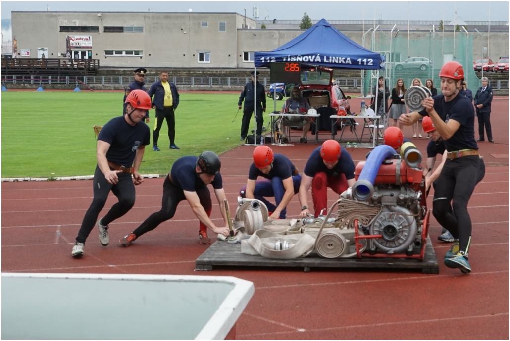 Začínalo se tak královskou disciplínou požárního sportu - požárním útokem, ve kterém soutěží sedmičlenná družstva.