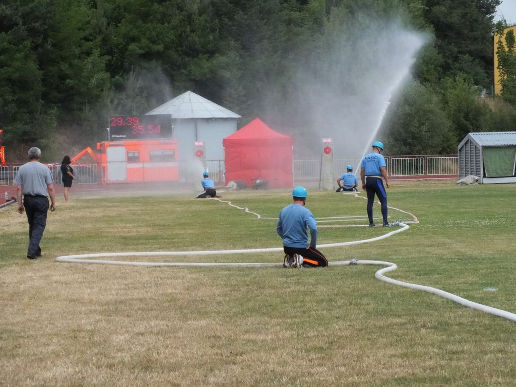 V požárním útoku si nejlépe vedli hasiči z Domažlic, druzí skončili hasiči z Plzně a třetí hasiči z Přeštic.