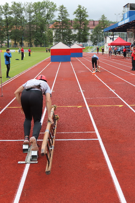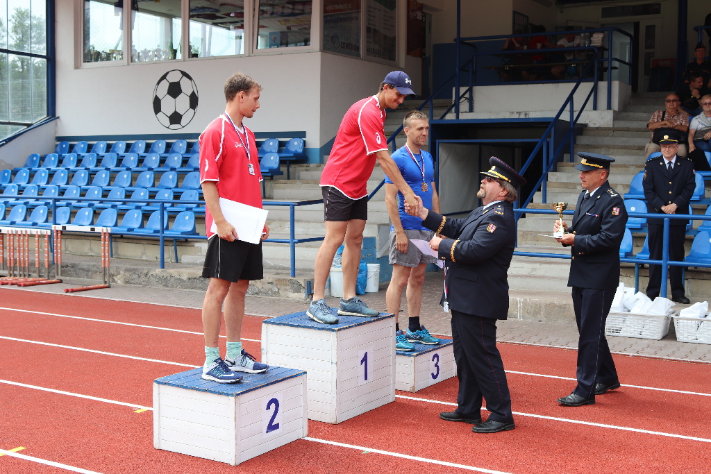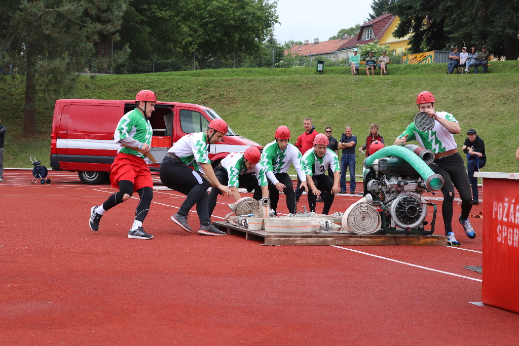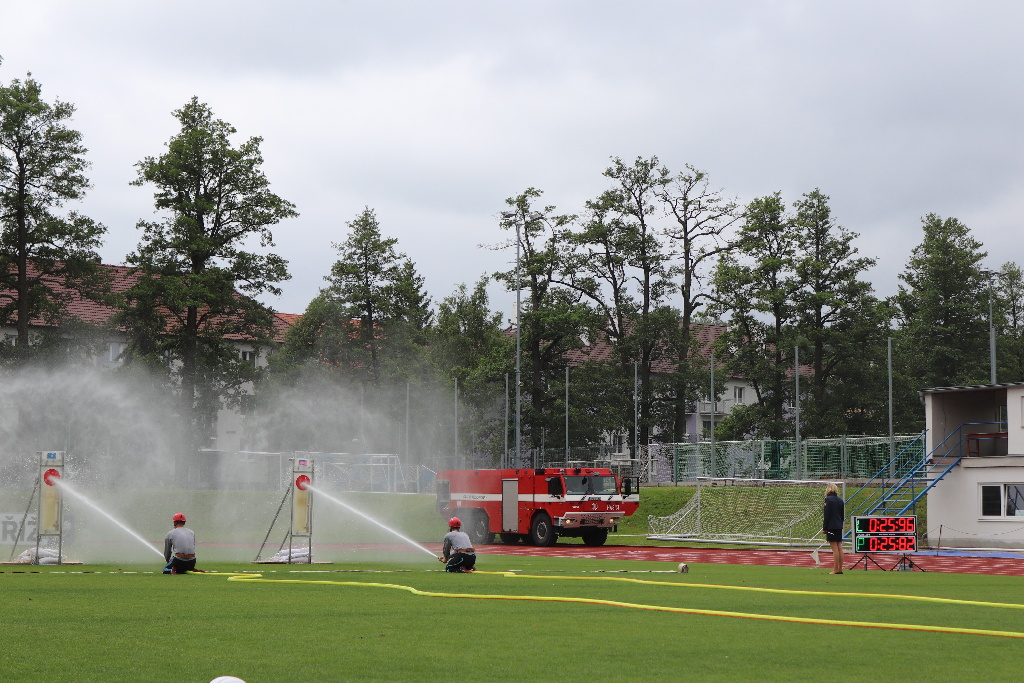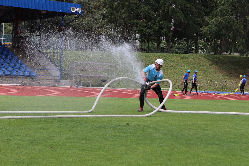 Druhý den dopoledne se na městském stadionu konaly soutěže družstev. První byla štafeta 4 x 100m s překážkami a druhou byl požární útok.