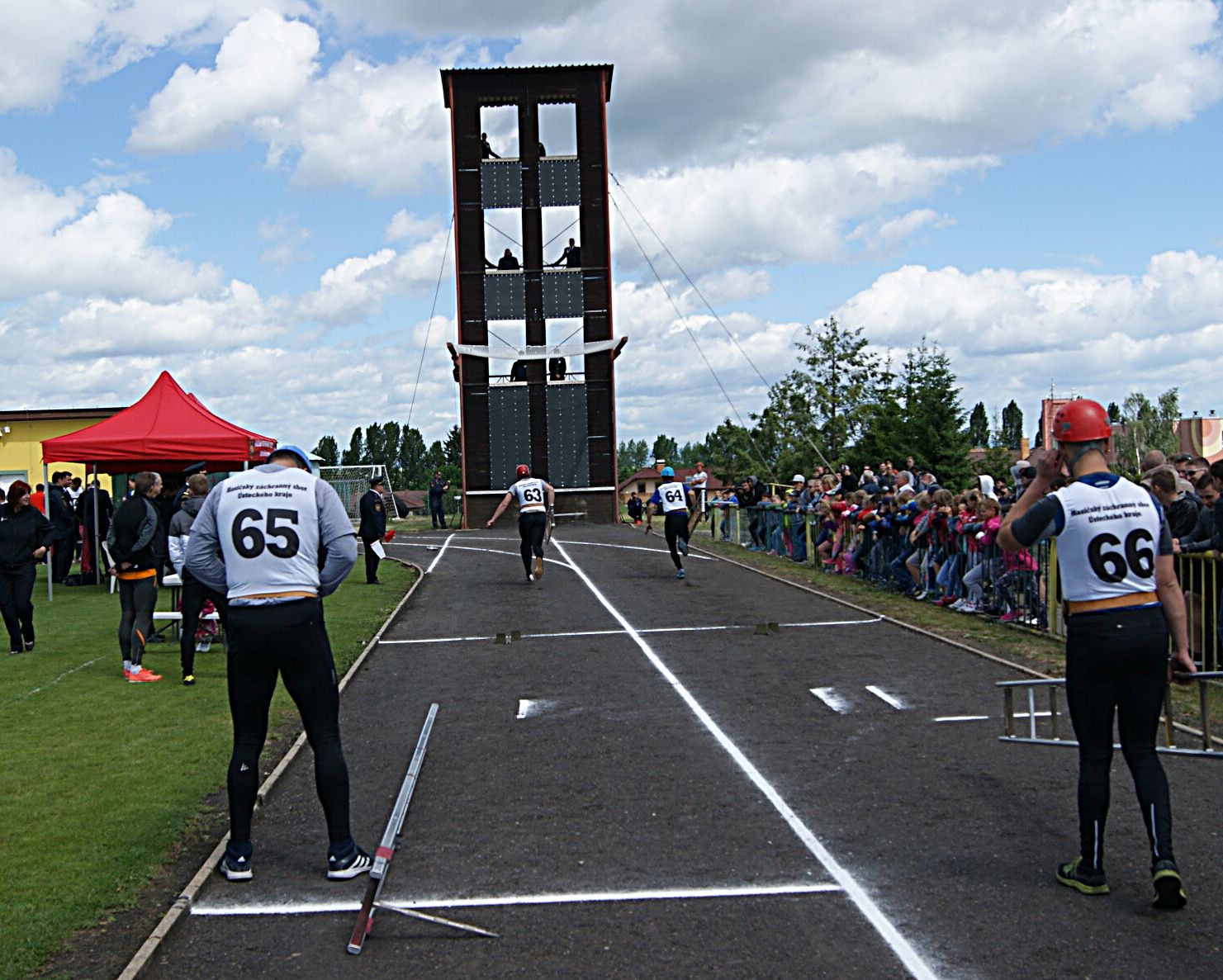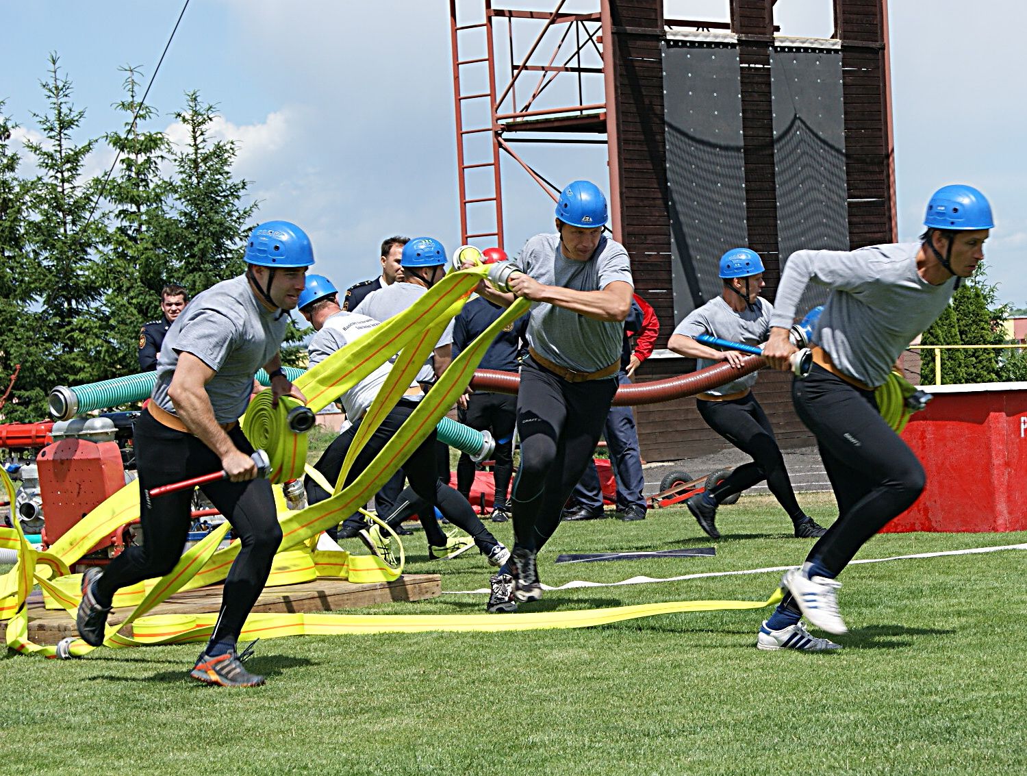 Disciplíny: běh na 100m s překážkami, výstup do 4. patra cvičné věže, štafeta, požární útok.