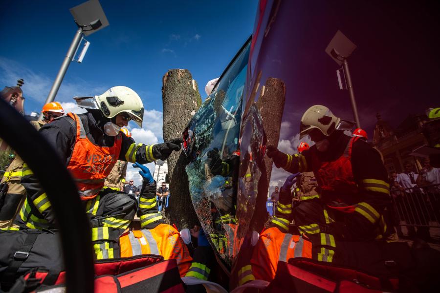 Nejrůznější scénáře dopravních nehod s převrácenými auty, nárazy do stromů, na svodidla a uvnitř zranění lidé, kteří potřebují rychlou pomoc hasičů. Takový byl začátek každého z devíti soutěžních úkolů pro devět družstev profesionálních hasičů HZS Pardubického kraje a HZS Královéhradeckého kraje při regionální soutěži ve vyprošťování zraněných osob z havarovaných vozidel. Akce se uskutečnila ve čtvrtek 3. září 2020 na náměstí T. G. Masaryka ve Dvoře Králové nad Labem.