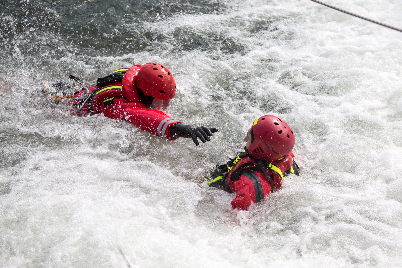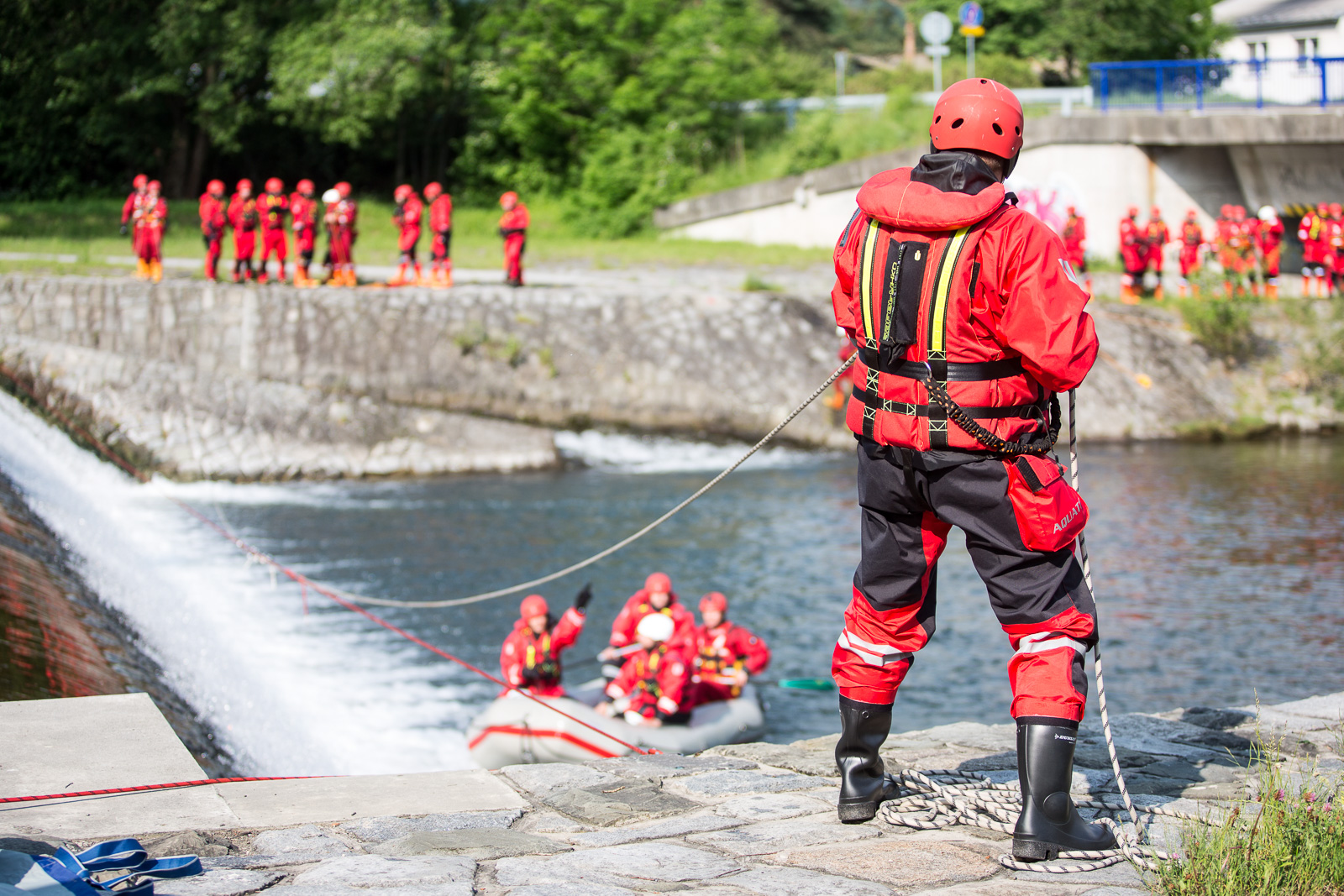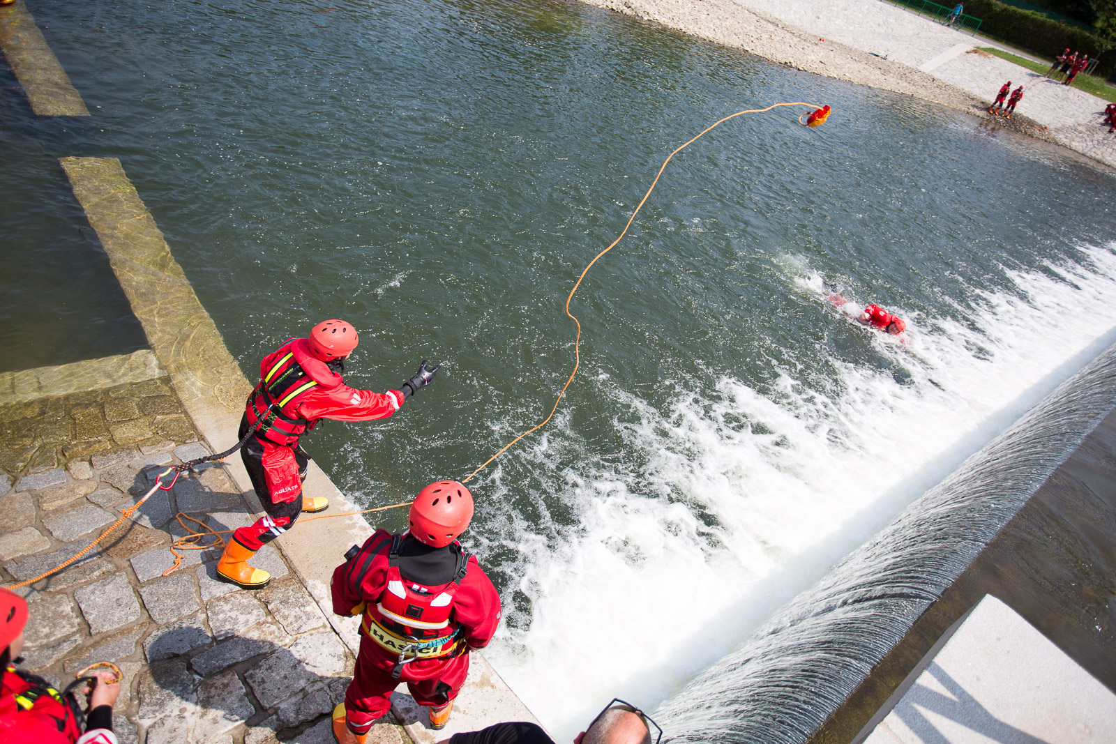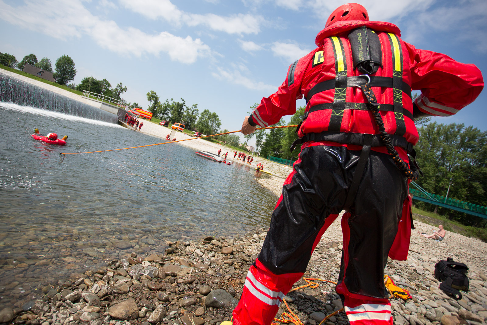 Druhé stanoviště bylo zaměřeno na zásady vstupu do neznámé vody, plavání v tekoucí vodě a lanové techniky při jištění záchranářů.