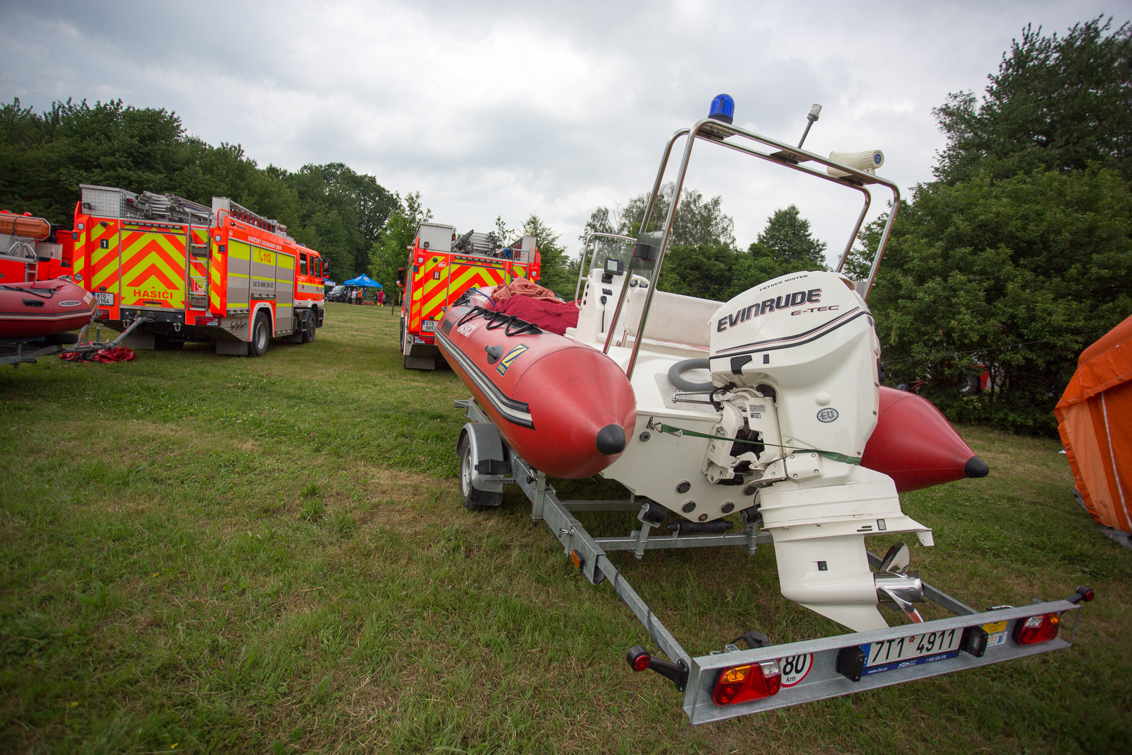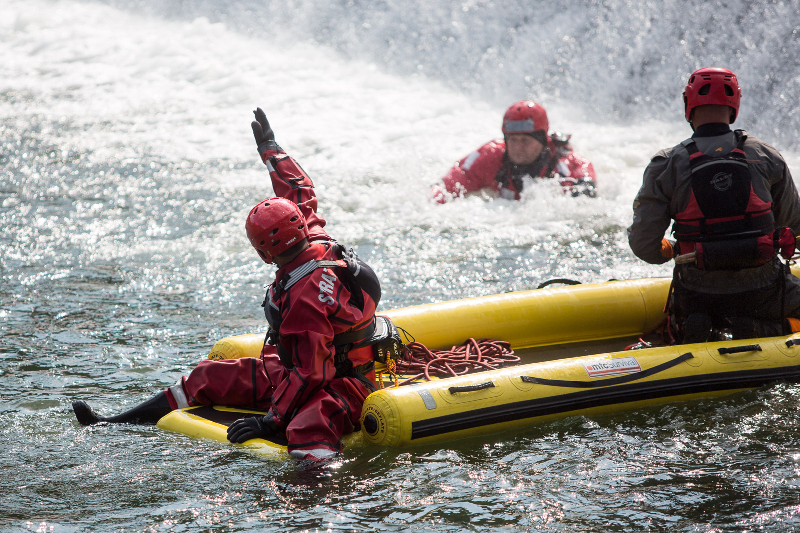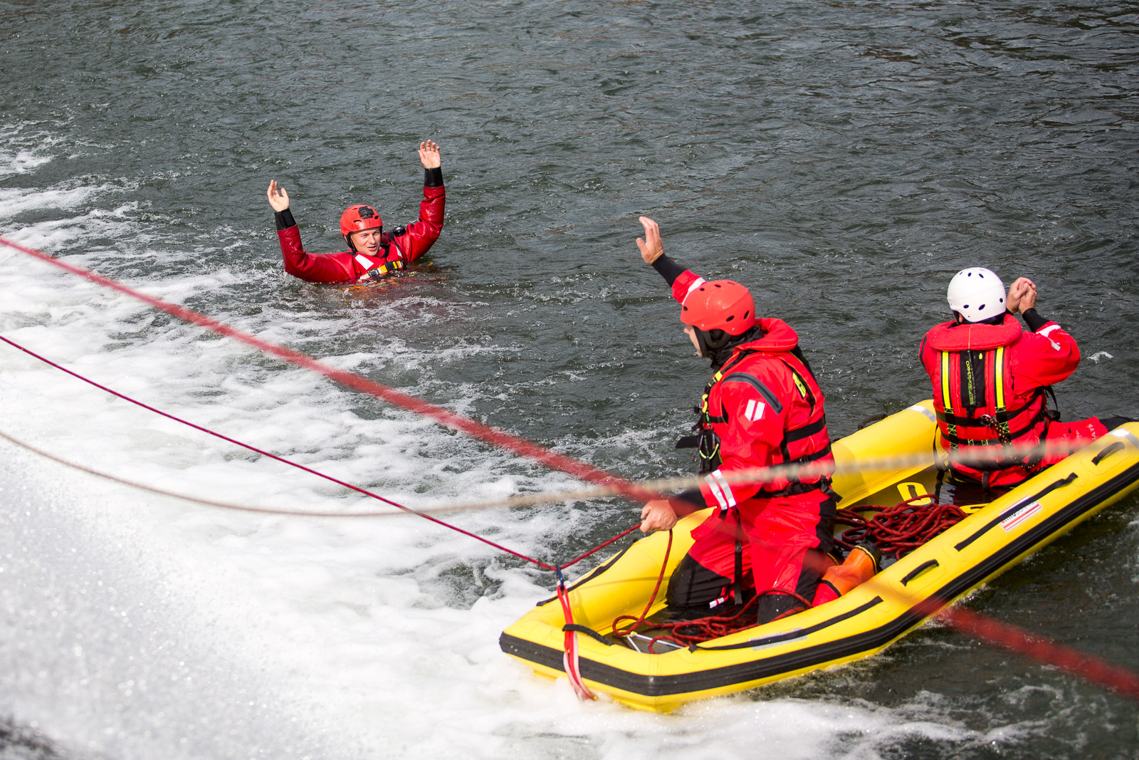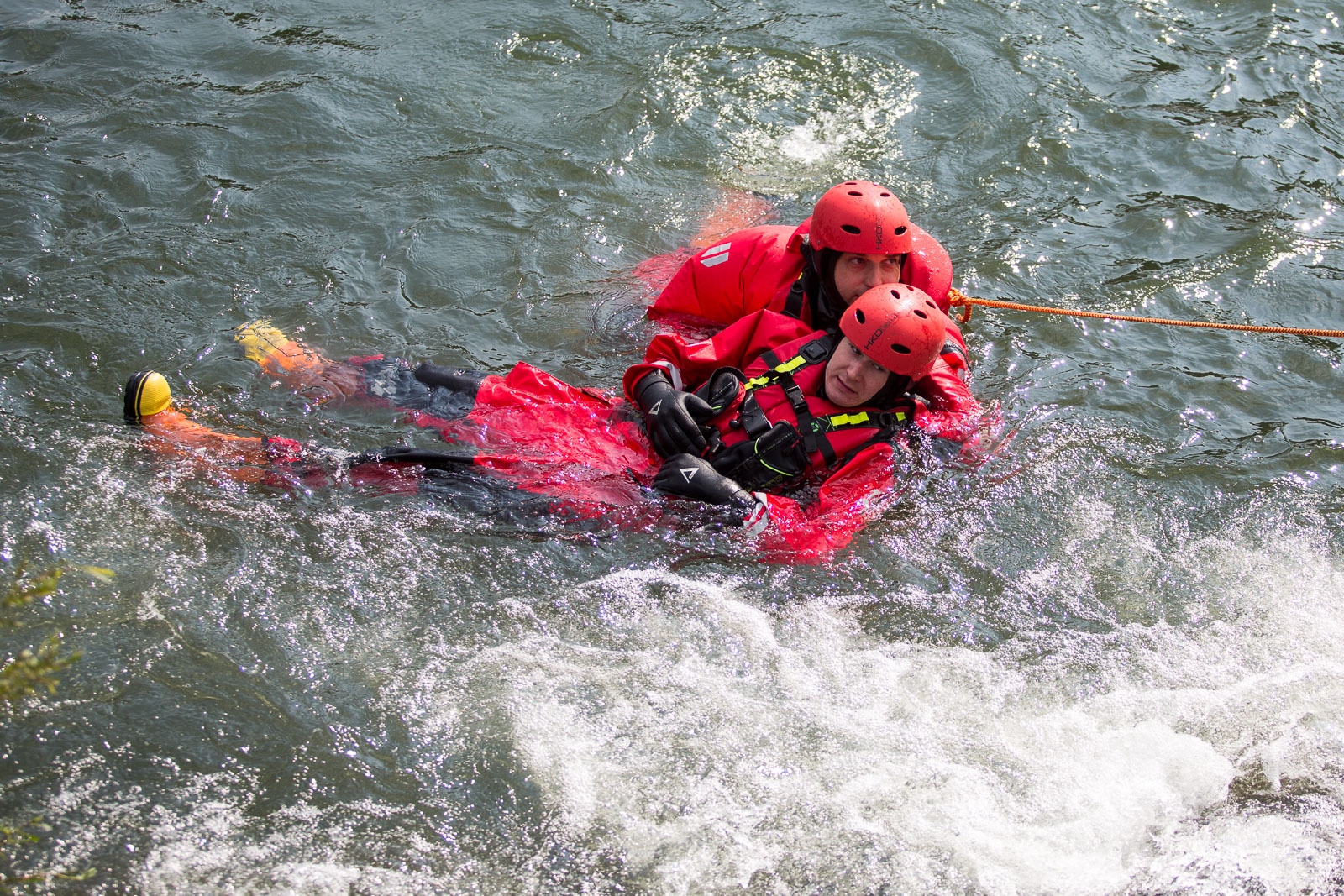 Na prvním stanovišti hasiči cvičili ovládání raftu a speciálních nafukovacích záchranných saní RS5 a záchranné práce pomocí těchto prostředků. Trénovali i obrácení ve vodním toku.