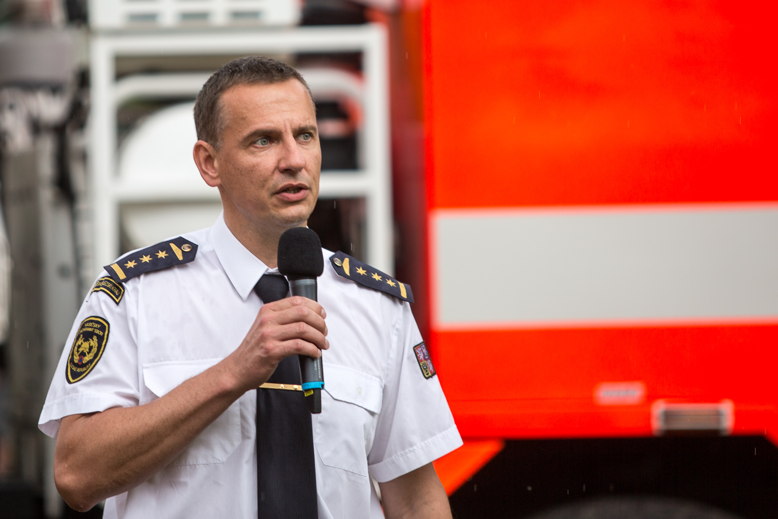 Ředitel územního odboru Frýdek-Místek plk. Ing. Vojtěch Nezval v průběhu akce předal ceny za umístění ve vědomostním kvízu, vyhlášeném v rámci oslav 50 let od založení profesionálního hasičského sboru na území okresu Frýdek-Místek.