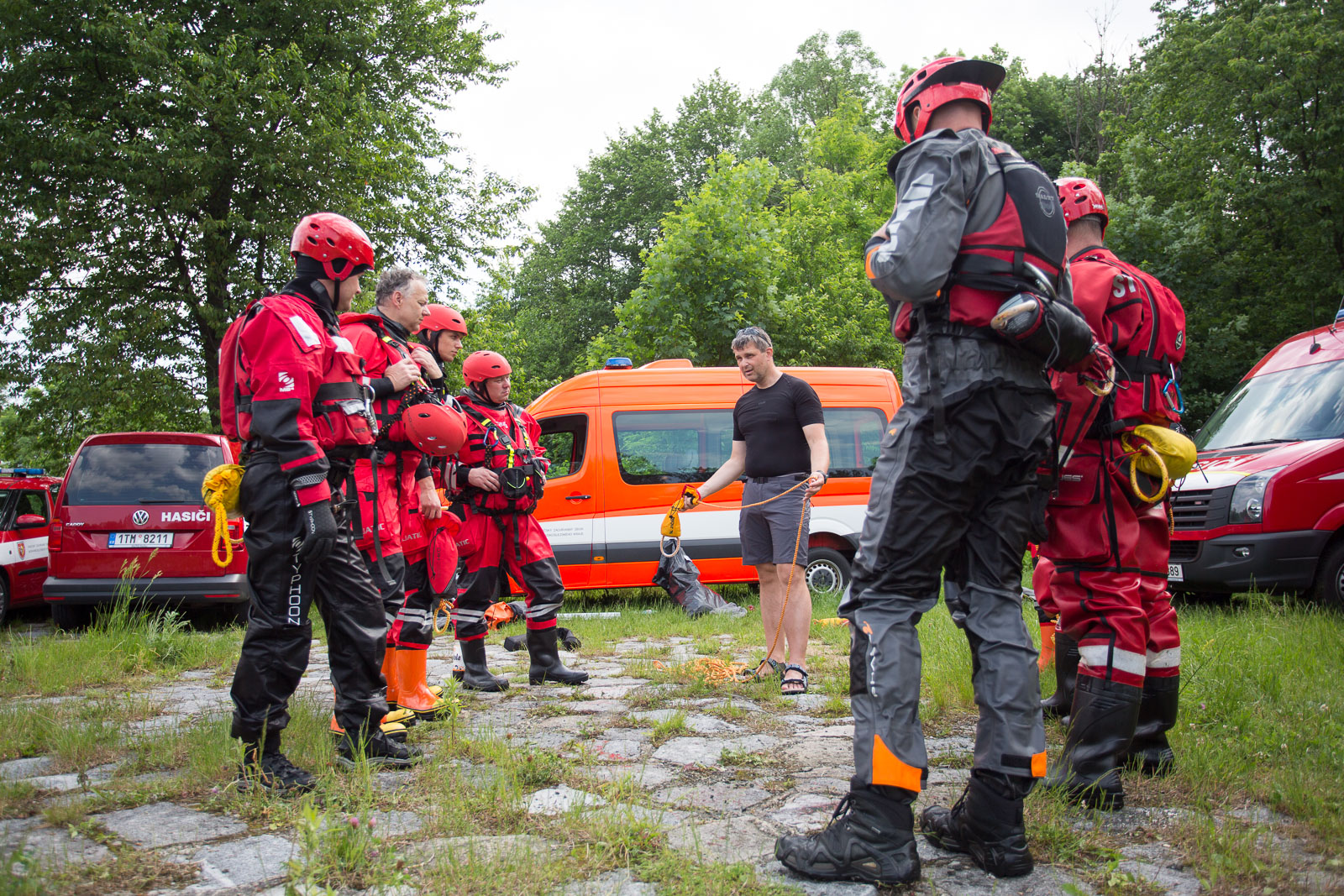Sobotní výcvik navázal na březnový workshop, na kterém si všichni partneři projektu předávali své teoretické znalosti v této oblasti a navzájem se seznamovali nejen s postupy, ale rovněž s vybavením, určeným pro tento typ mimořádných událostí.