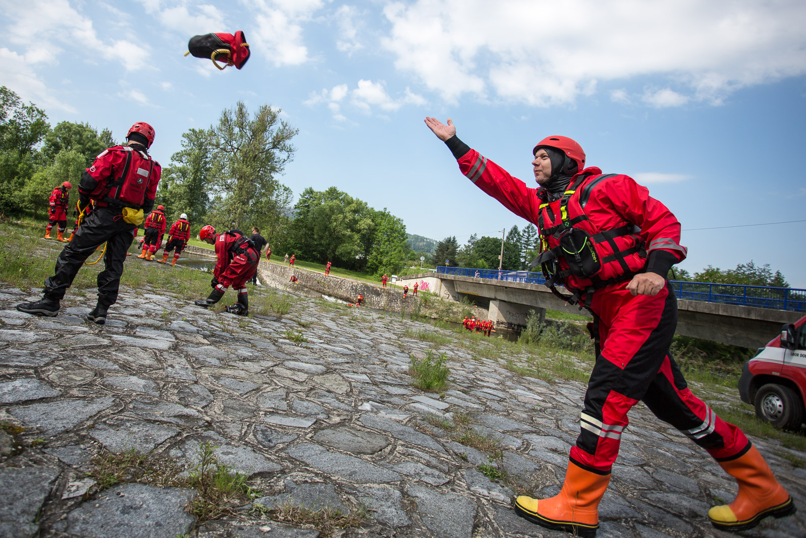 Poslední stanoviště bylo zaměřeno na záchranu osob pomocí házecího pytlíku, způsoby jeho použití a taktické zásady a postupy při řešení záchrany tímto způsobem.