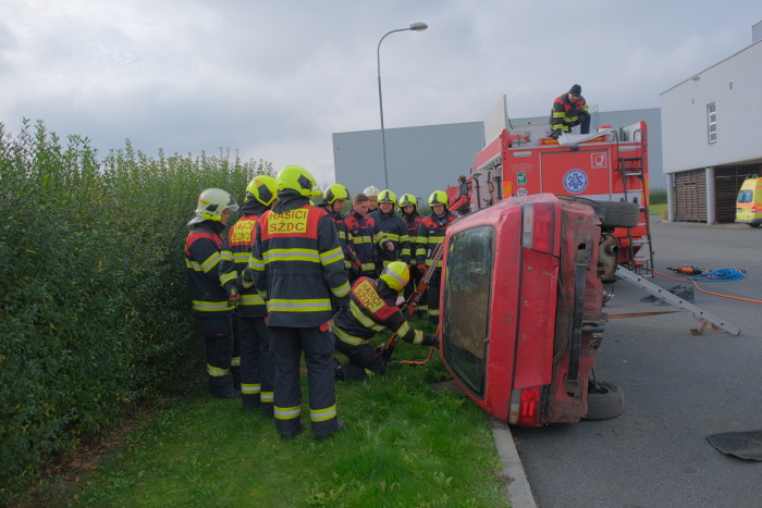 Hlavní část výcviku se konala na dvoře IVC na dvou zánovních červených autech ve dvou skupinách, kdy jednu vedl profesionální hasič Martin Pajurek ze zdejší stanice Hasičského záchranného sboru Moravskoslezského kraje (HZS MSK), druhou jeden ze zkušených drážních hasičů (Hasičská záchranná služba Správy železniční dopravní cesty, státní organizace).