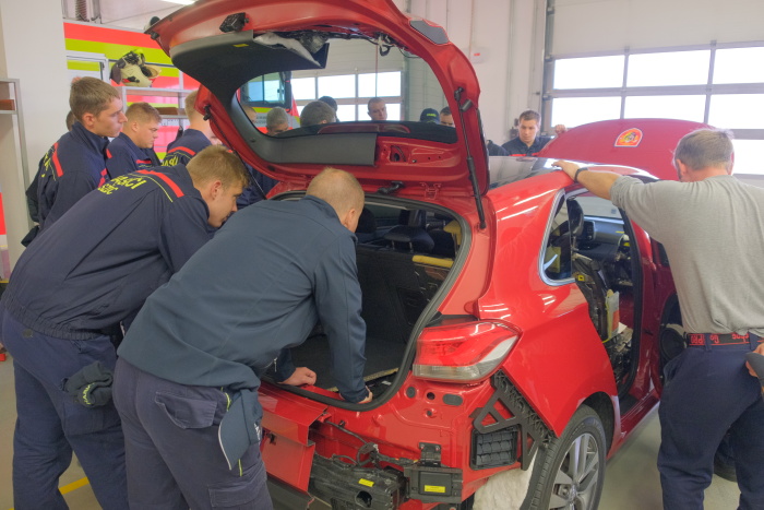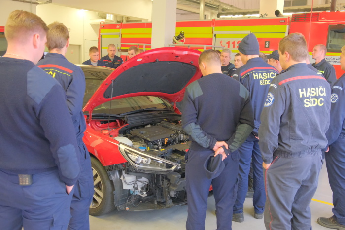 Po teoretické přednášce na učebně přišly na řadu ukázky v garáži u dvou speciálně upravených („očesaných“) automobilů z nedaleké firmy Hyundai se zaměřením na jejich odkryté bezpečnostní prvky. Podrobněji o těchto automobilech např. zde:  https://www.idnes.cz/auto/zpravodajstvi/hasici-hyundai-model-tucson-nehoda.A180419_180339_automoto_fdv