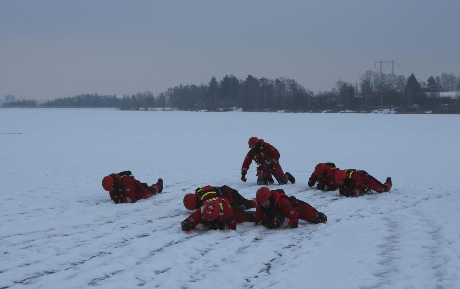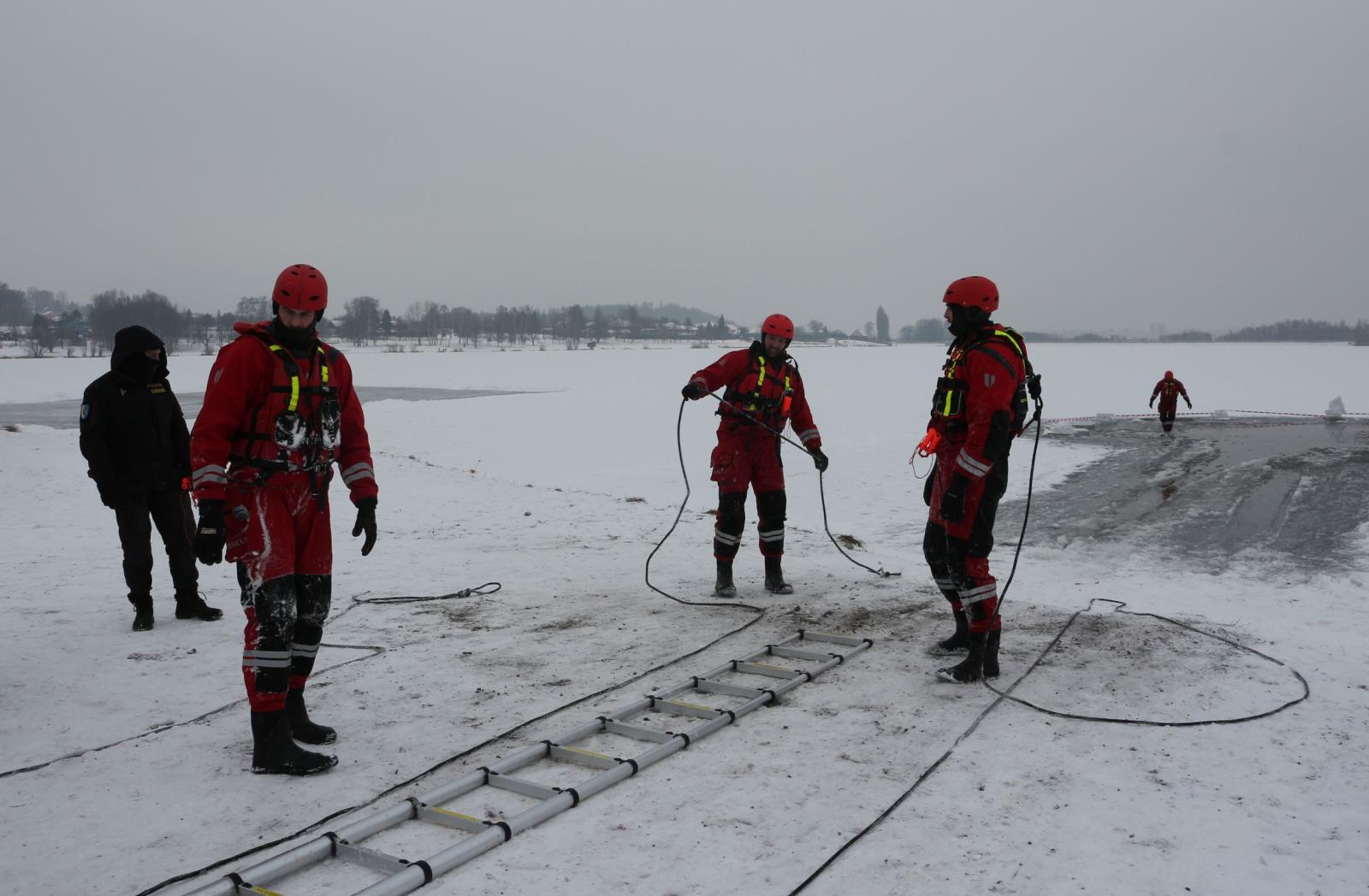 Policisté nacvičovali zásah při propadnutí osob pod led