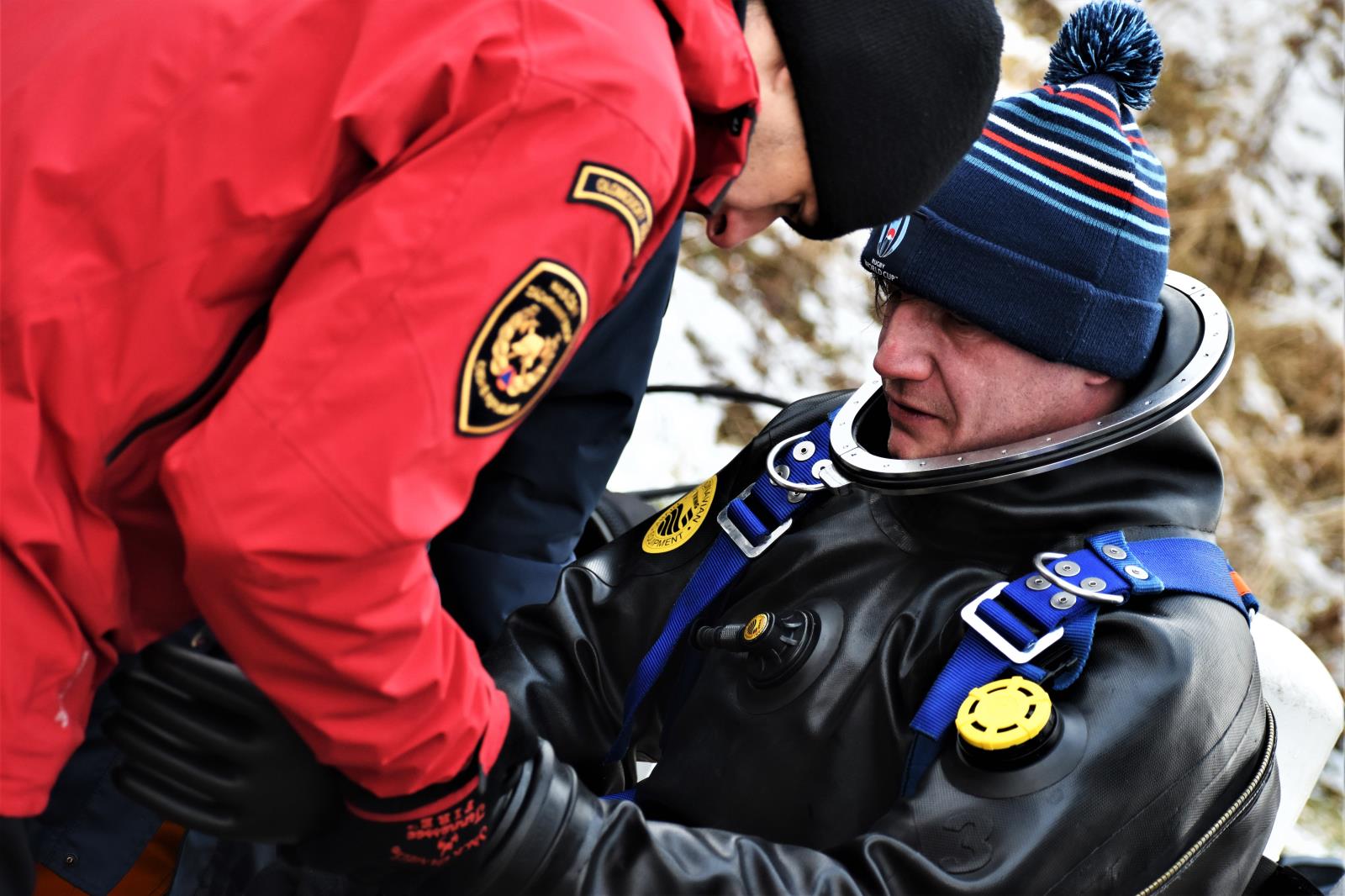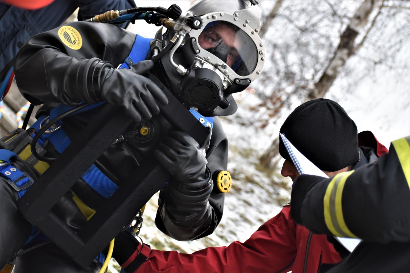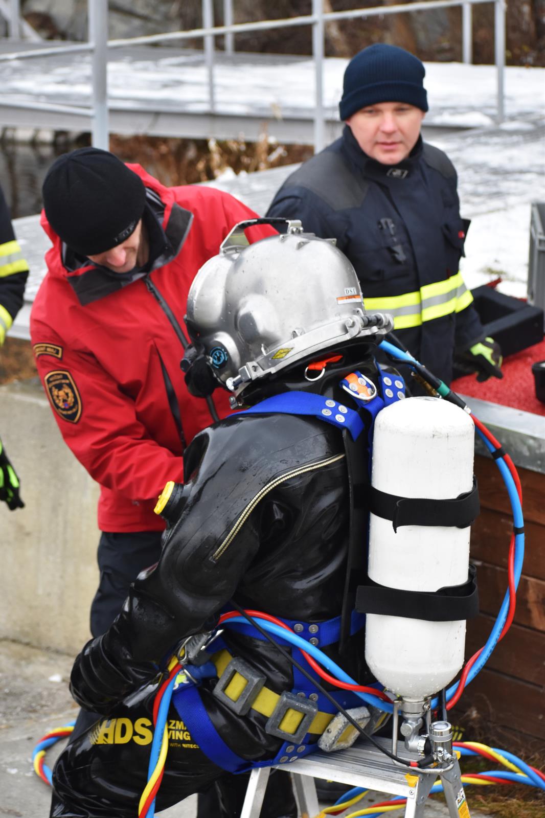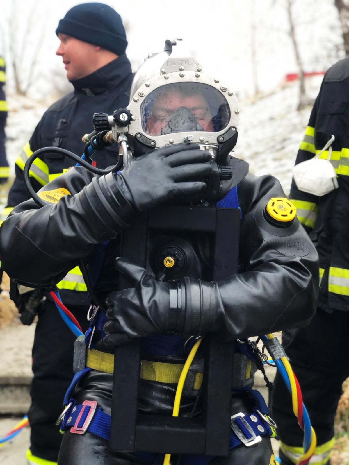 Nejdříve hasiči potrénovali ponory do větších hloubek, dostávali se na přehradě Slezská Harta až do 45 metrů pod vodní hladinu. Potápěčská práce je zde zkomplikovaná tím, že je ve vodě horší viditelnost. „Pro zkušeného borce to zas taková potíž není, je ale dobré trénovat i za těchto podmínek, aby nás pak v reálu nic nepřekvapilo,“ vysvětlil Josef s tím, že následoval přesun do Rychlebských hor, kde se potápěči nořili do ještě hlubších vod. Umožnil jim to přístupný důl Hraničná. „Tady jsme cvičili ponory i přes 50 metrů. Potápění v důlních prostorách nám simuluje práci v zatopených jeskyních, šachtách a jiných uzavřených prostorách. To už jsou náročnější ponory. Pracujeme sice v čisté vodě, ale ve tmě, a výstup zpět je vždy složitější než na volné vodní ploše,“ doplnil zkušený instruktor. V lomu ve Svobodných Heřmanicích se cvičilo přilbové potápění v prostředí HAZMAT, tedy ve vodách kontaminovaných různými patogeny či chemikáliemi.