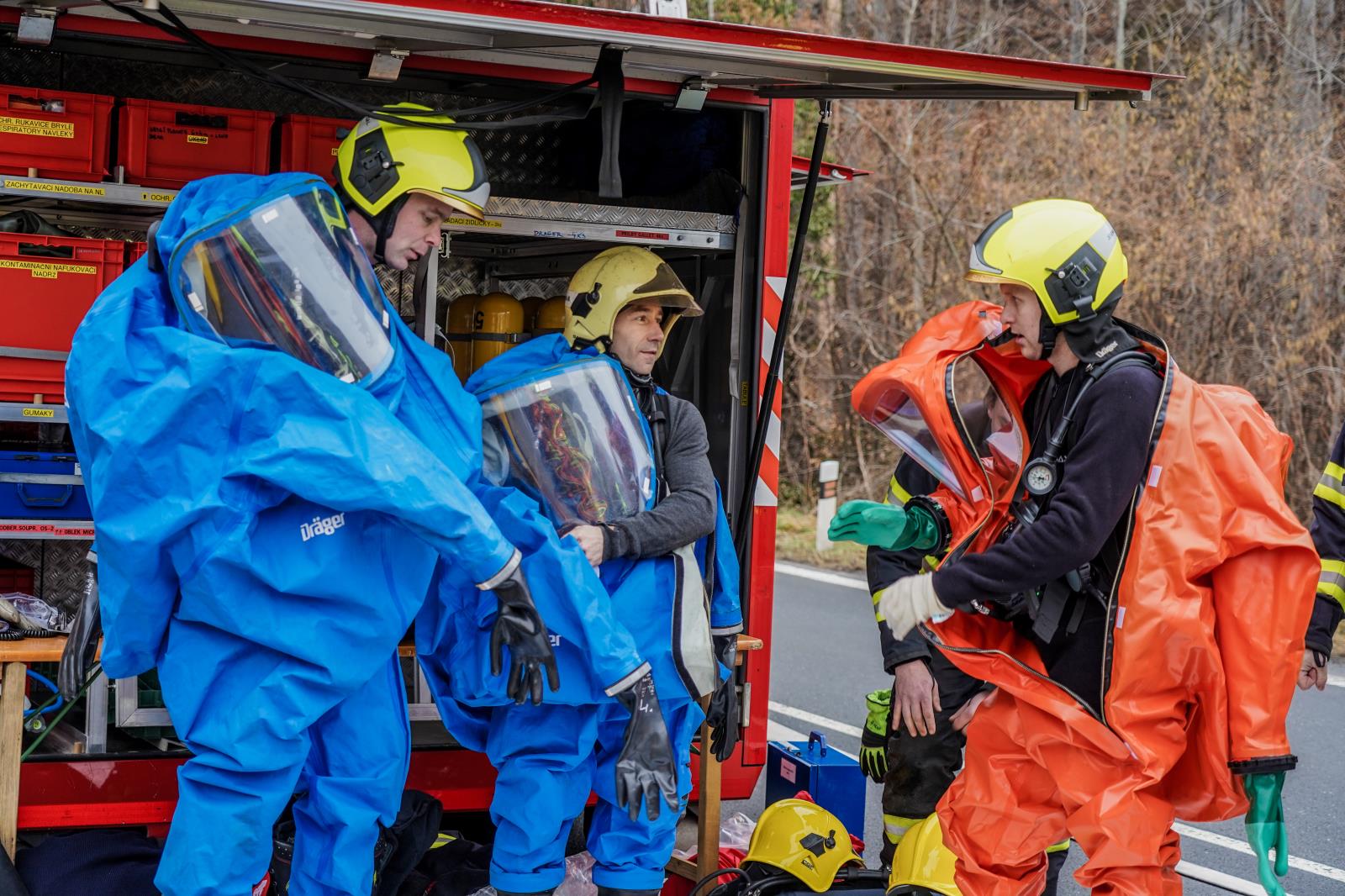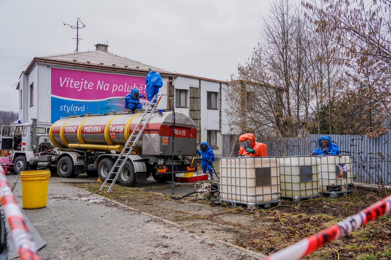 Cisterně plné nebezpečné kyseliny dusičné selžou brzdy a na hraničním přechodu na mezistátní silnici I/44 Mikulovice - Glucholazy se srazí s osobním automobilem. Souprava při nehodě navíc zdemoluje budovu bývalé celnice. Ve vozidlech jsou zaklínění zranění řidiči, pod sutinami zavalení vojáci, z cisterny uniká nebezpečná látka. To byly situace, se kterými se musely vypořádat v úterý 14. února na česko-polských hranicích složky IZS při mezinárodním taktickém cvičení.