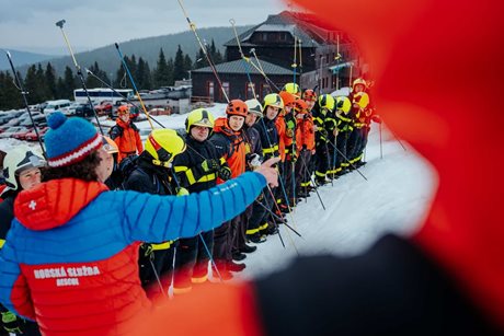 Následně se přesunuli do terénu, kde si vyzkoušeli vyhledávání zasypaných osob pomocí speciálních přístrojů. Procvičili také systematické prohledávání laviniště a samotné vyproštění osob.
