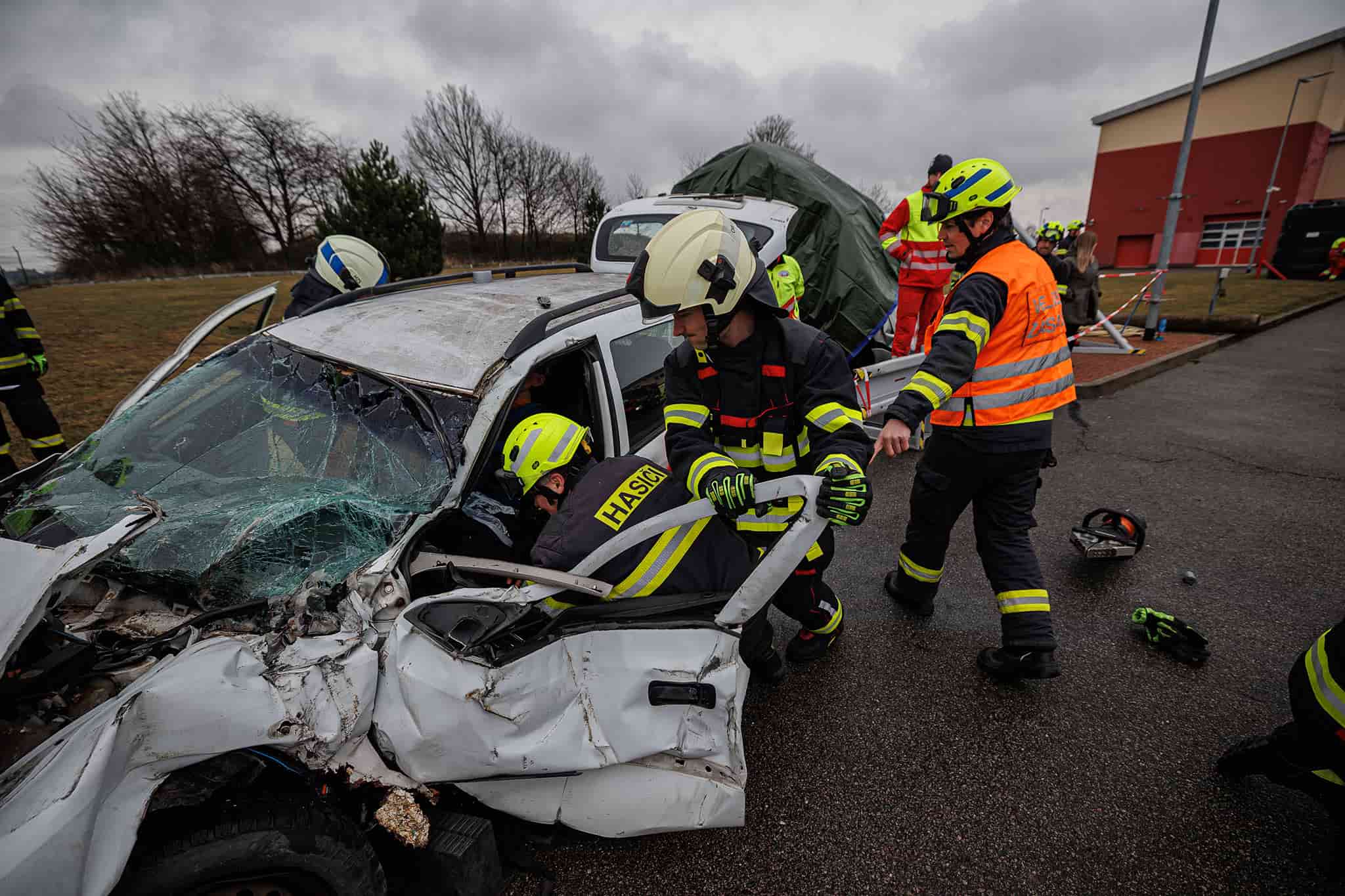 Hasiči společně se zdravotnickými záchranáři nacvičovali postupy při vyprošťování osob zaklíněných ve vozidlech po dopravních nehodách. Cílem nebylo dosáhnout co nejkratšího času, ale zajistit maximální bezpečí zraněných. Během zásahu musí být každý pohyb promyšlený, aby nedošlo ke zhoršení zdravotního stavu pacientů.