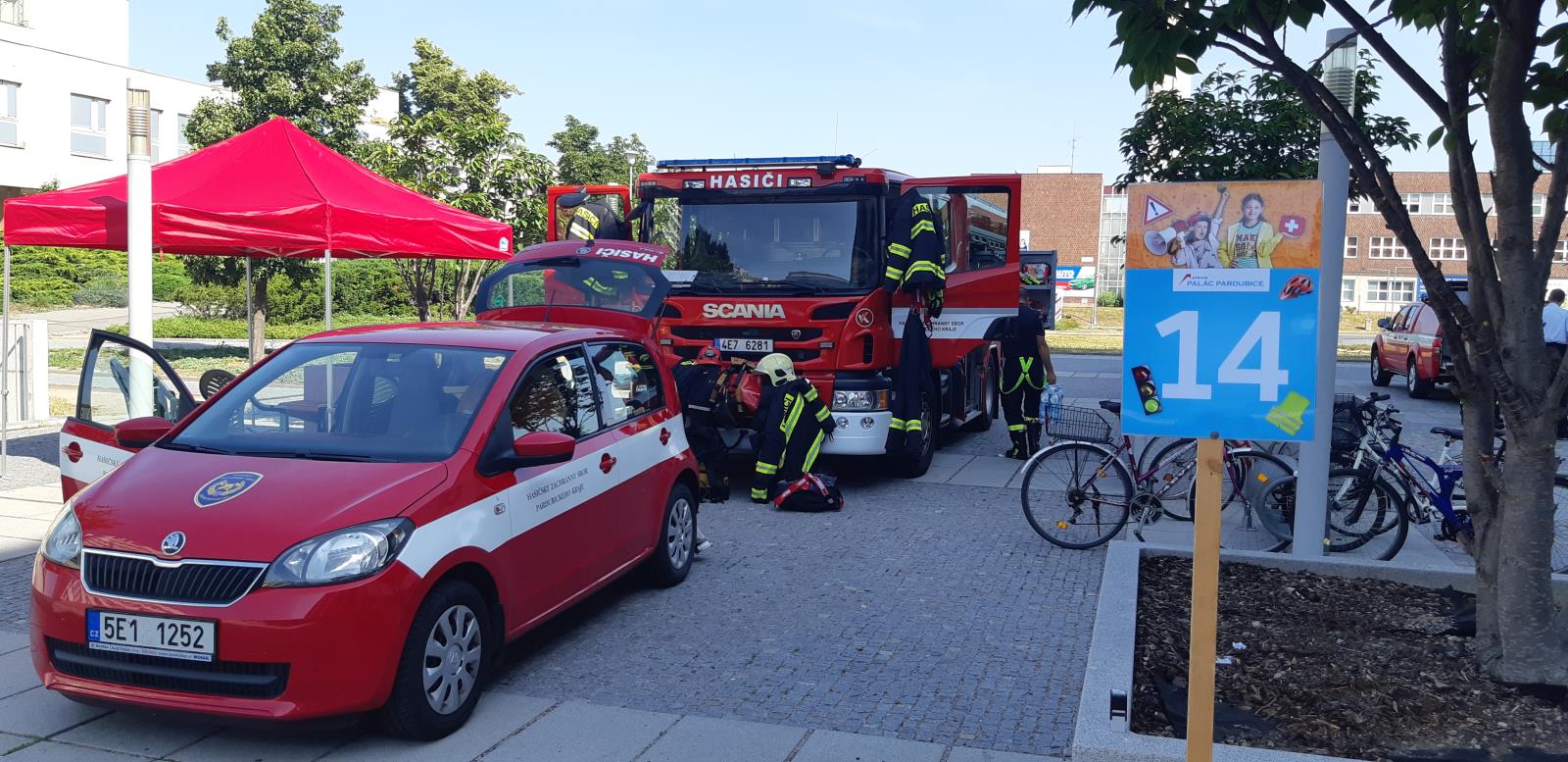 Praktické úkoly připravené ve spolupráci s Besip týmem naučily děti zásadám dopravní výchovy. Tým hasičského sboru představil nejen hasičské auto, ale navíc předvedl, jak se hasí hořící olej v hrnci. Zajímavá byla i ukázka hasičské náročné soutěže TFA v dětském provedení. Nechyběli ani psovodi z Policie ČR a jízdní oddíl s koňmi Městské policie Pardubice. Návštěvníci měli také šanci osvojit si první pomoc díky zdravotníkům ze Zdravotnické záchranné služby Pardubického kraje. Za splněné úkoly si děti odnášely drobné dárky na prázdniny.
