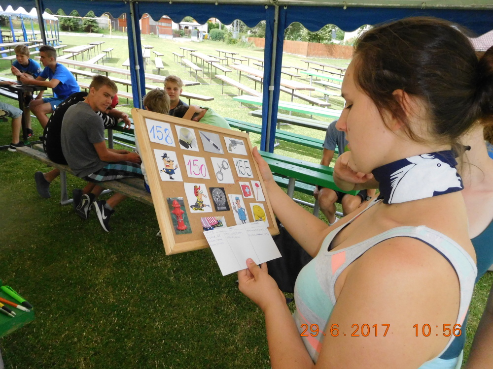 Celkem jsme na stanovišti uvítali 11 tříd (cca 220 dětí). Stanoviště Hasíka bylo rozděleno na tři jednotlivé části - Hasíkovu tajenku, procvičování paměti s předměty složek IZS (děti měli 10 sekund na prohlédnutí nástěnky s obrázky předmětů, poté je měli sepsat a přiřadit k jednotlivým složkám IZS) a běh pro minihasičská autíčka na čas.