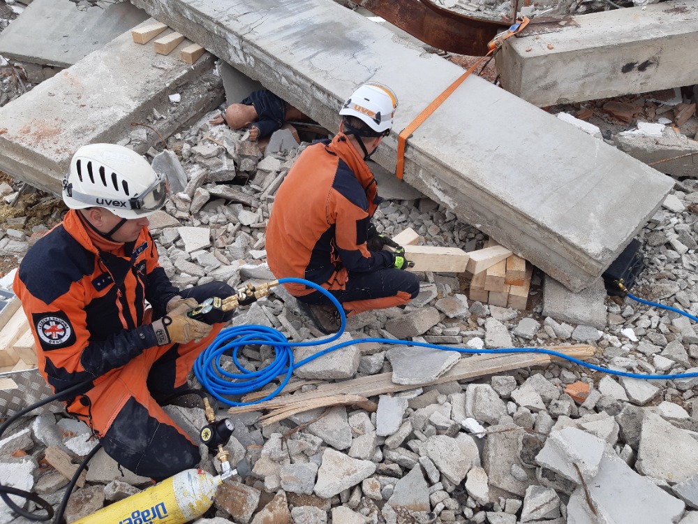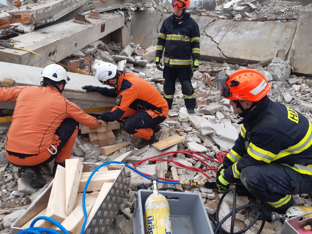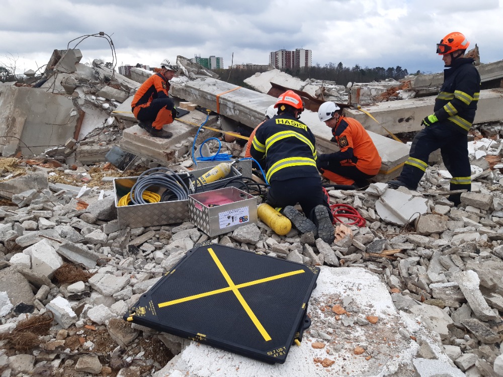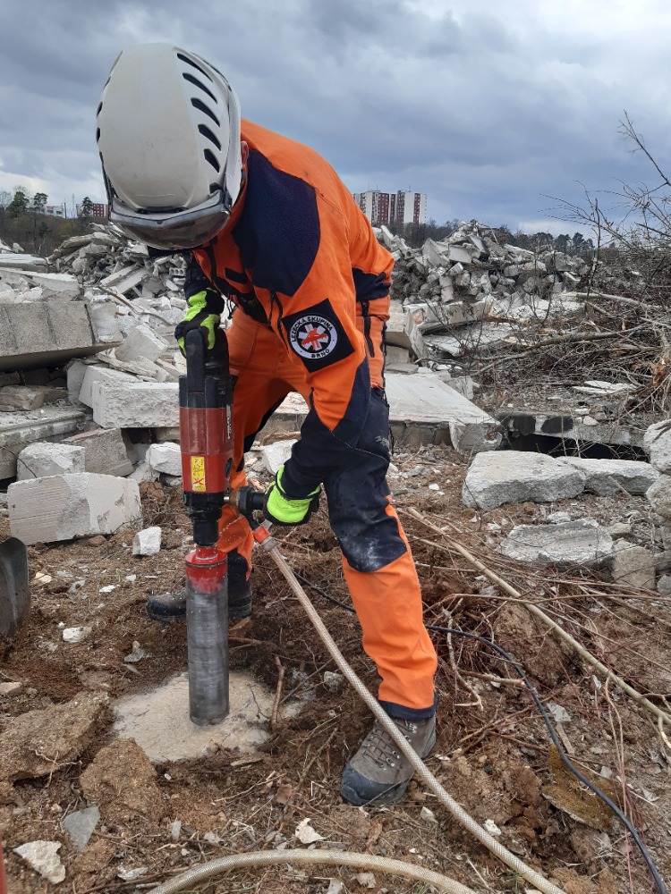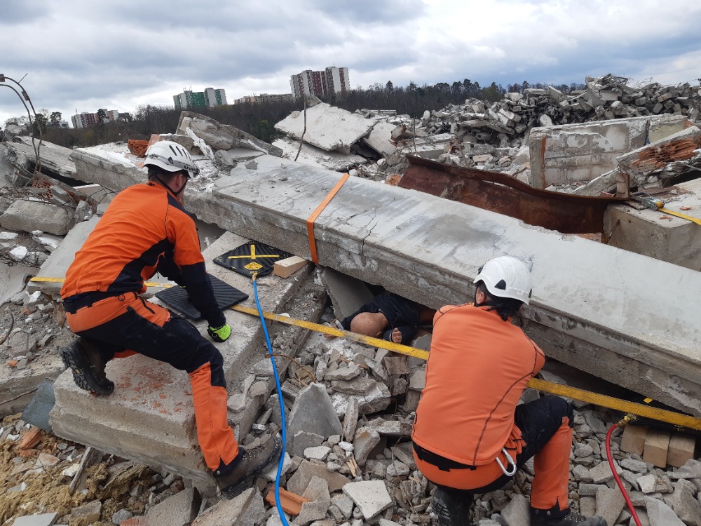Pátek, 8. dubna 2022 - Zchátralý areál Ergon v brněnský Maloměřicích, ve kterém jsou nyní prováděny demoliční práce, tento týden poskytl reálné podmínky pro cvičení téměř třiceti profesionálních brněnských hasičů. Výcvik byl zaměřen na stabilizaci narušených konstrukcí a záchranu zavalených osob. Hasiči například prováděli průzkum prostor pomocí korunkového vrtání a štěrbinové kamery, řezali ocelové nosníky kyslíkem a pomocí pneumatických vaků zachraňovali zavalené figuríny.