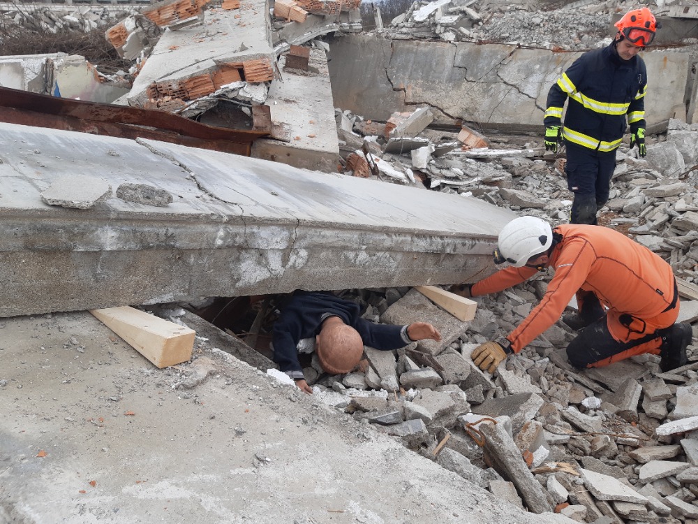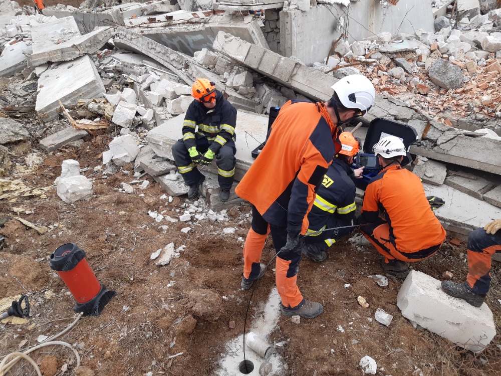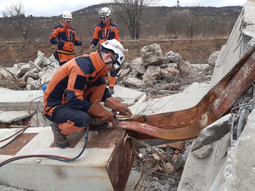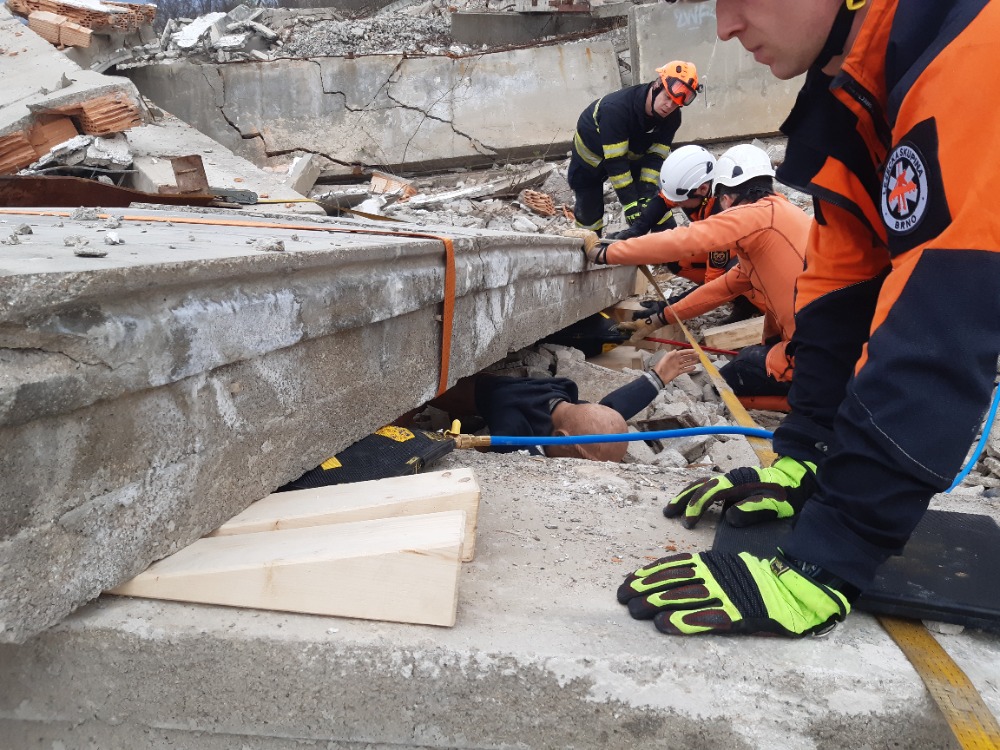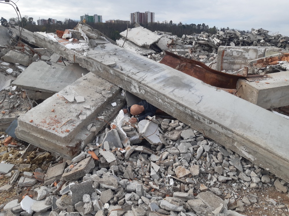 Pátek, 8. dubna 2022 - Zchátralý areál Ergon v brněnský Maloměřicích, ve kterém jsou nyní prováděny demoliční práce, tento týden poskytl reálné podmínky pro cvičení téměř třiceti profesionálních brněnských hasičů. Výcvik byl zaměřen na stabilizaci narušených konstrukcí a záchranu zavalených osob. Hasiči například prováděli průzkum prostor pomocí korunkového vrtání a štěrbinové kamery, řezali ocelové nosníky kyslíkem a pomocí pneumatických vaků zachraňovali zavalené figuríny.