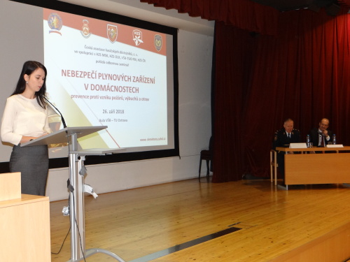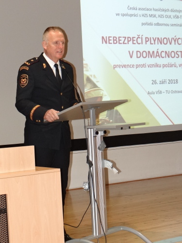 Své zkušenosti z bohaté praxe a náhledy na dodržování předpisů v oblasti požární ochrany si ve středu 26.9.2018 vyměňovali v aule Vysoké školy báňské-Technické univerzity v Ostravě plynařští servisní a revizní technici, zástupci kominického cechu, lékaři, vysokoškolští pedagogové, zástupci radnic i hasiči, a to na semináři „Nebezpečí plynových zařízení v domácnostech – prevence proti vzniku požárů, výbuchů a otrav“.