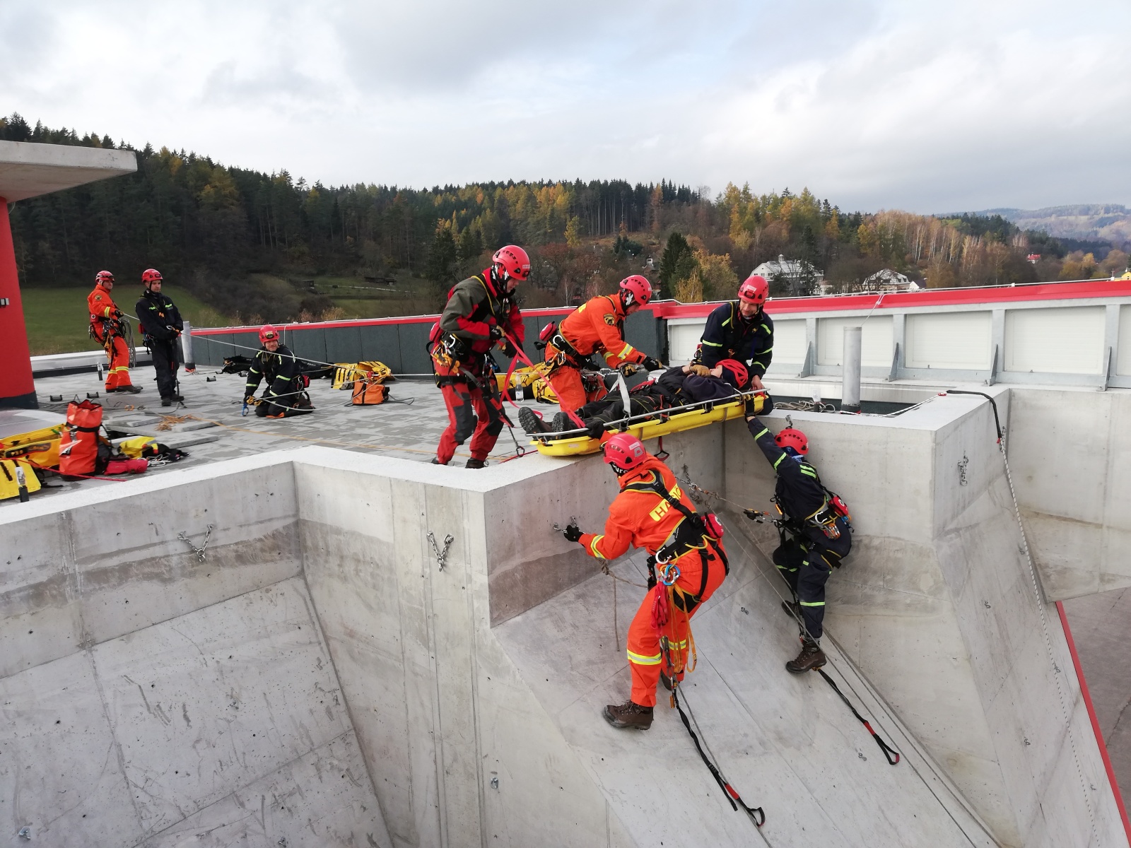 Poslední den proběhlo vyhodnocení celého výcviku, prohlídka polygonu, trénink zachycení pádu prvolezce a na rozloučenou ještě jedna modelová situace, a sice technicky náročná (jak jinak) záchrana zpod převisu.