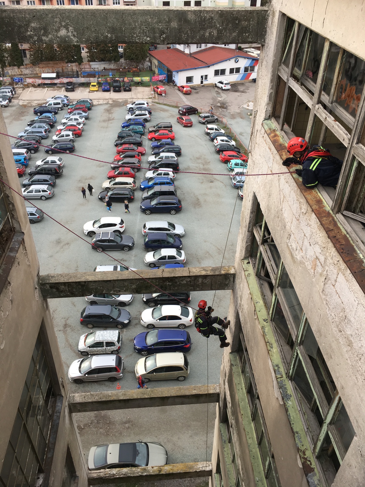 První den lezci cvičili práci s nosítky a další individuální dovednosti v budově dnes už bývalé textilky TEPNA v Náchodě. Podmínky v této průmyslové stavbě jsou velmi reálné – všudypřítomné střepy, ostré hrany a ne vždy ideálně rozmístěné kotevní body nutí lezce ke kreativitě, díky které pak dokáží vytvořit kotvení prakticky kdekoliv. Během ověřování individuálních dovedností přecházeli mimo jiné obávanou hranu ze střechy budovy, která je technicky poměrně náročná.