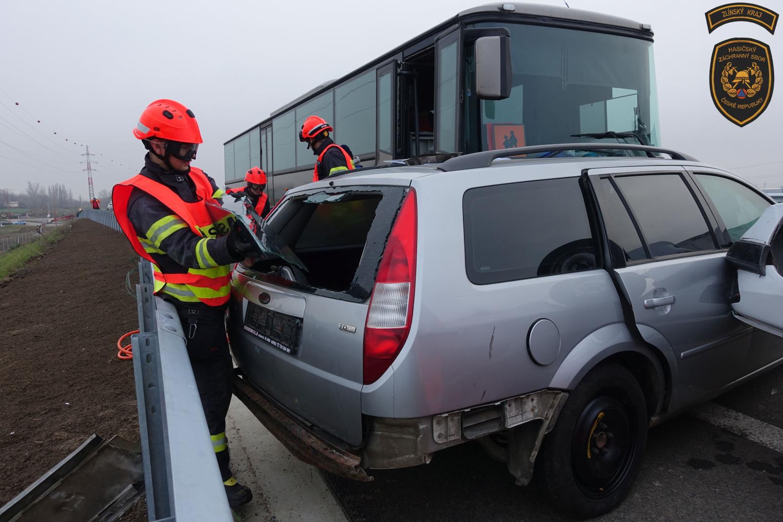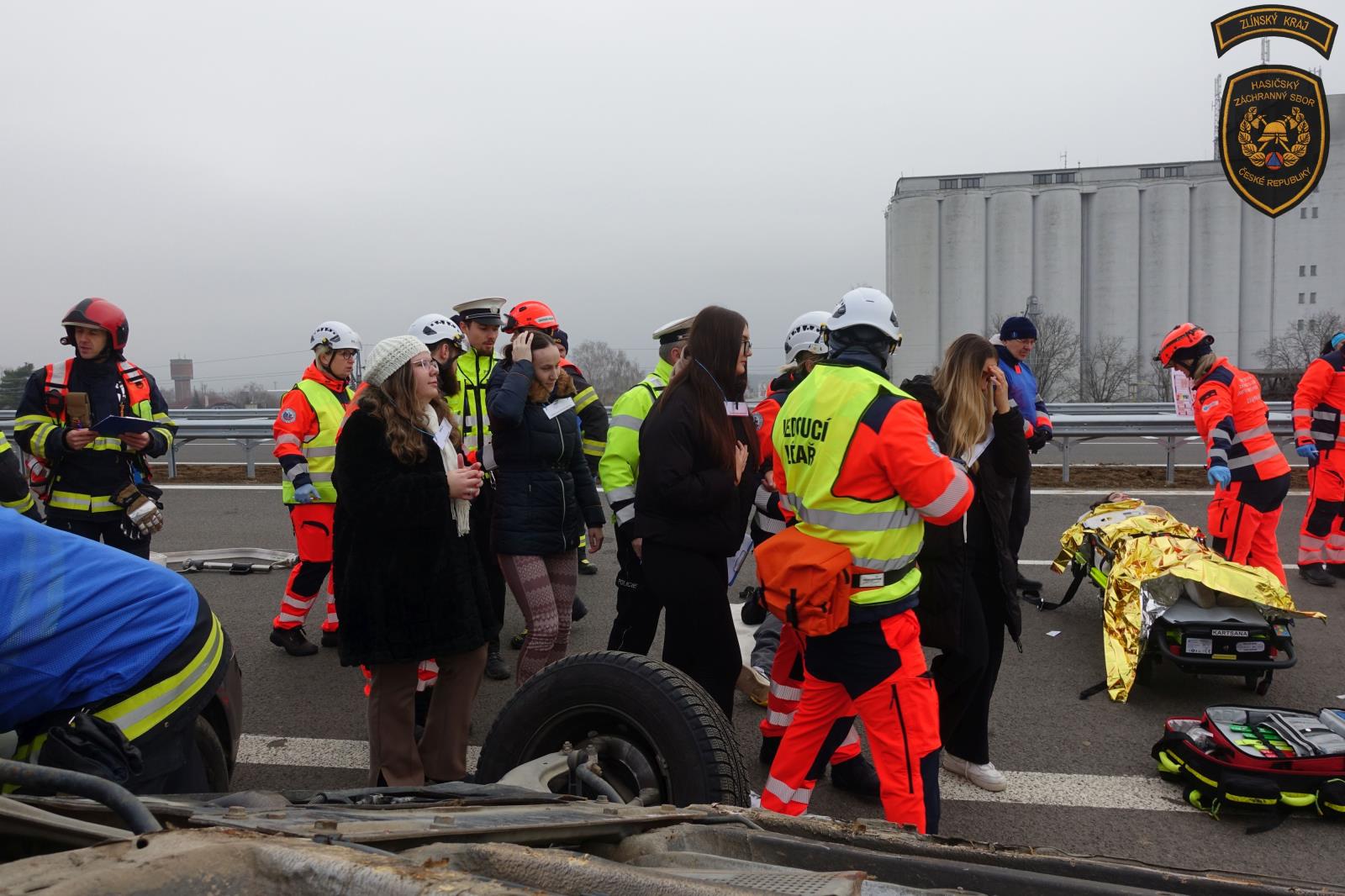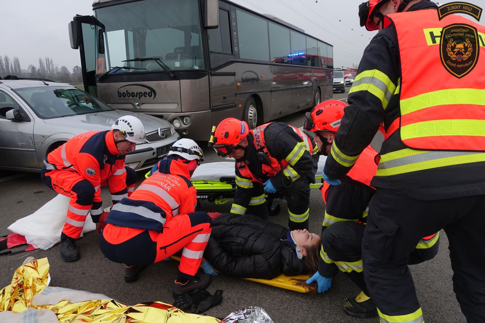 Připravovaný úsek dálnice D55 na Uherskohradišťsku se stal ve středu dopoledne místem velkého taktického cvičení, kterého se účastnili nejen profesionální hasiči, ale všechny složky IZS, tedy i PČR a ZZS.