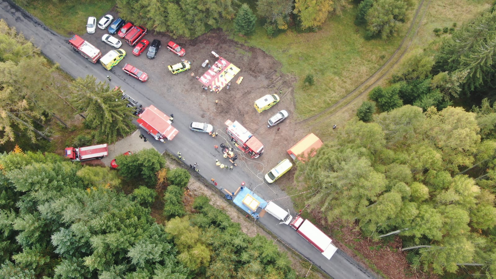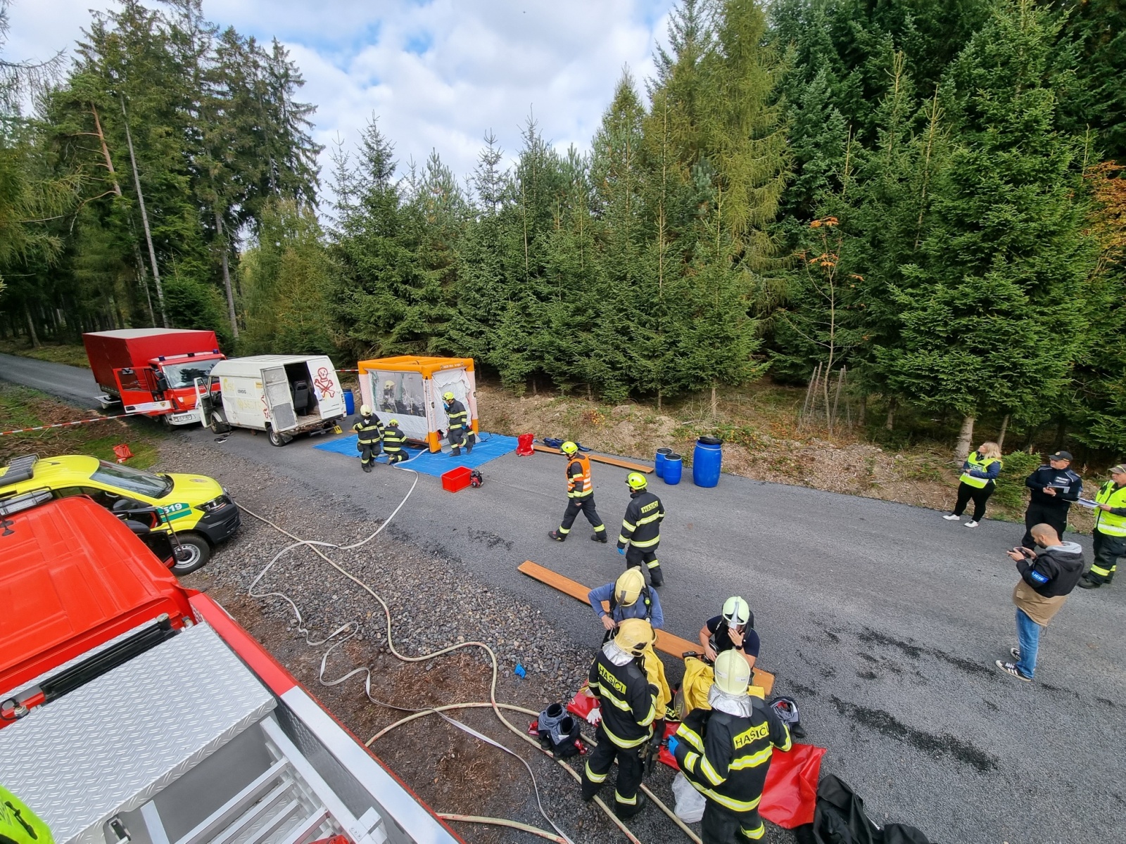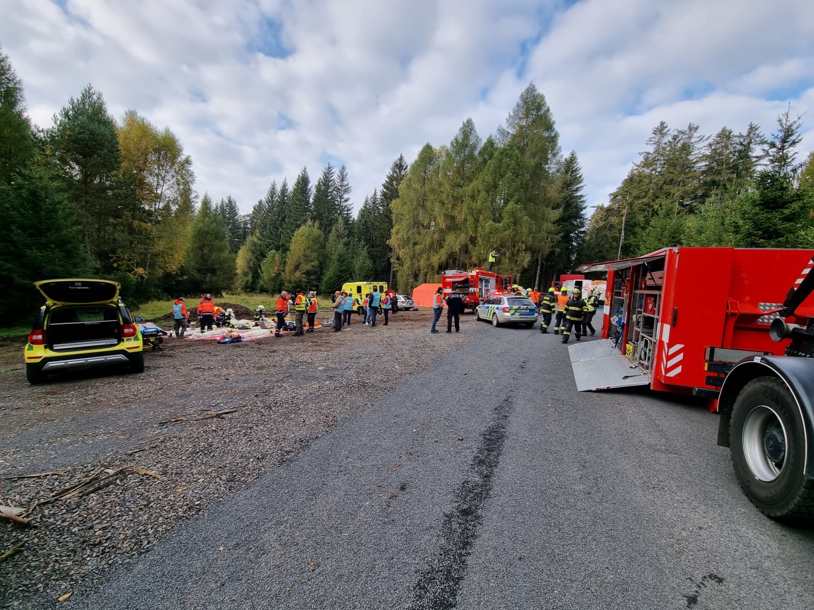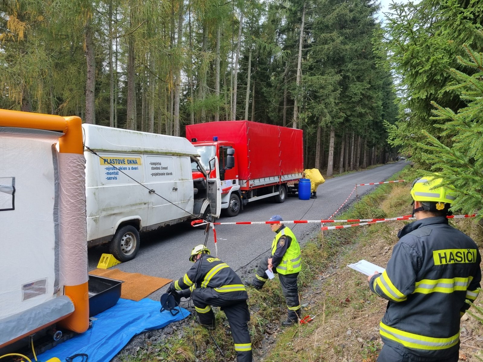 Ve čtvrtek 13. října došlo k dopravní nehodě dodávky a nákladního automobilu s následným únikem nebezpečné látky – to byl námět taktického cvičení složek IZS okresu Příbram, které se konalo na komunikaci nedaleko vodní nádrže Pilská v Chráněné krajinné oblasti Brdy.