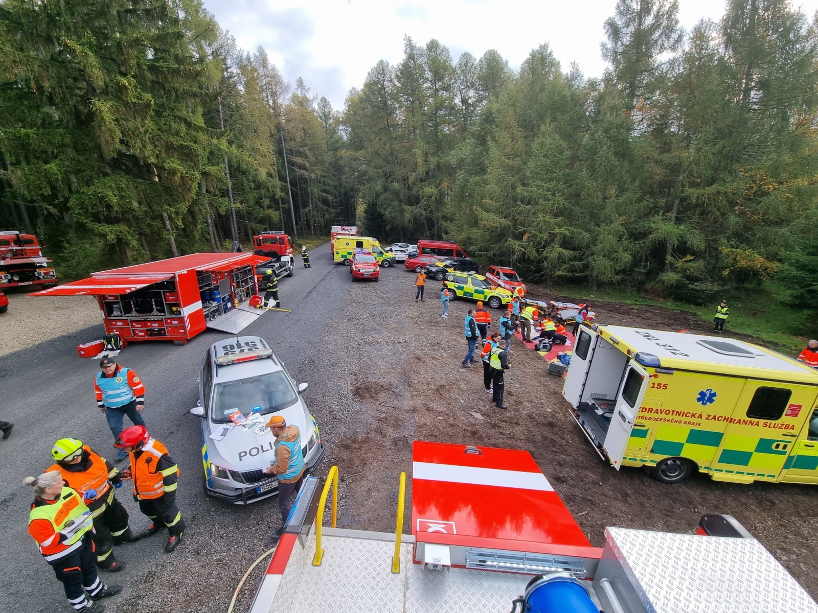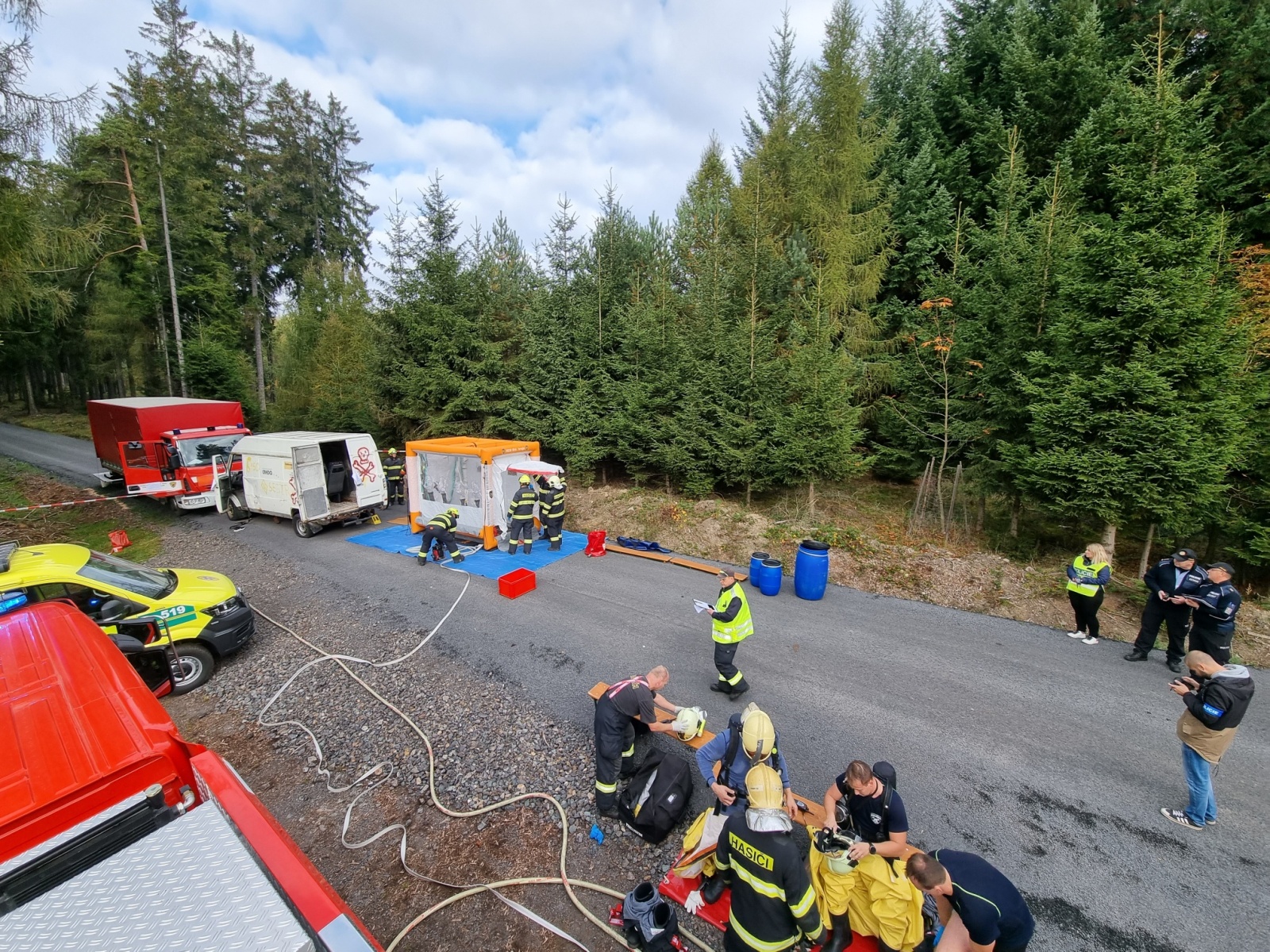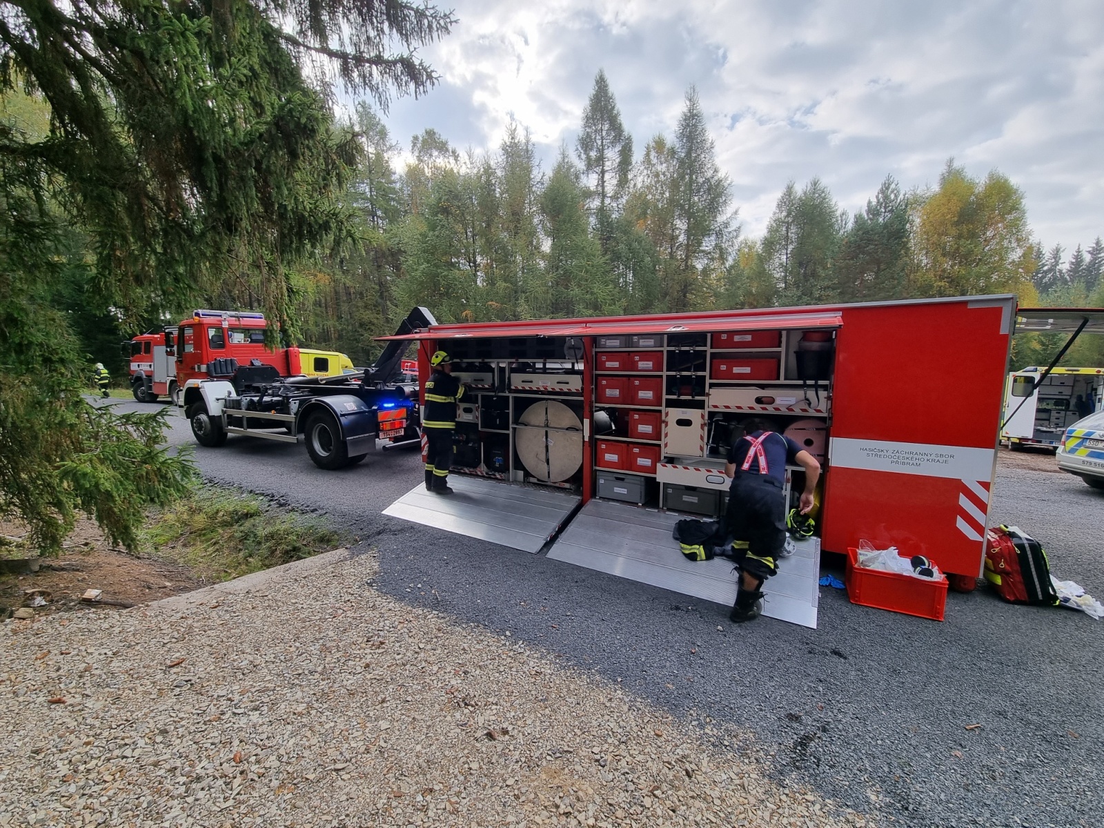Ve čtvrtek 13. října došlo k dopravní nehodě dodávky a nákladního automobilu s následným únikem nebezpečné látky – to byl námět taktického cvičení složek IZS okresu Příbram, které se konalo na komunikaci nedaleko vodní nádrže Pilská v Chráněné krajinné oblasti Brdy.