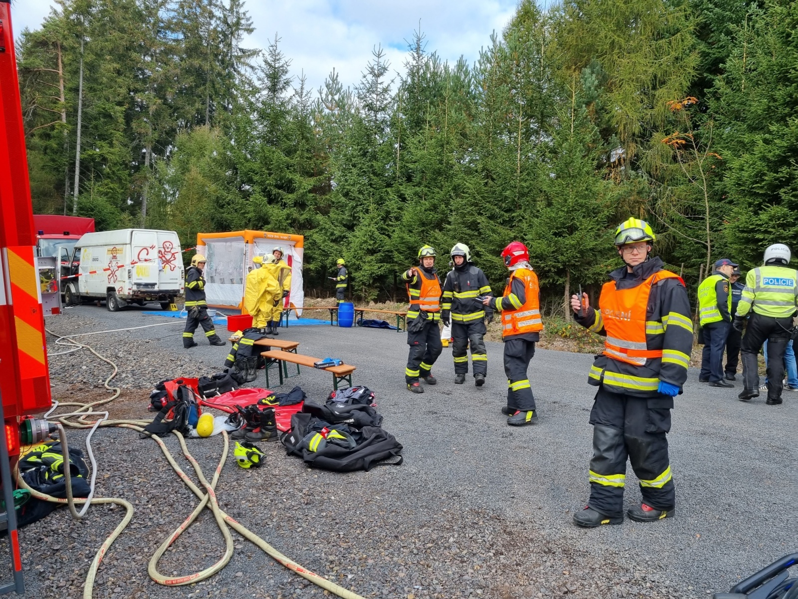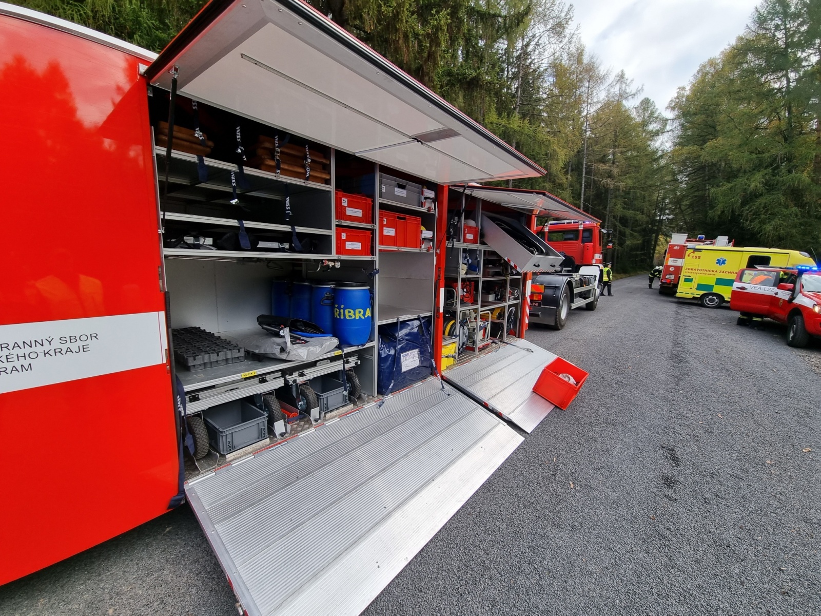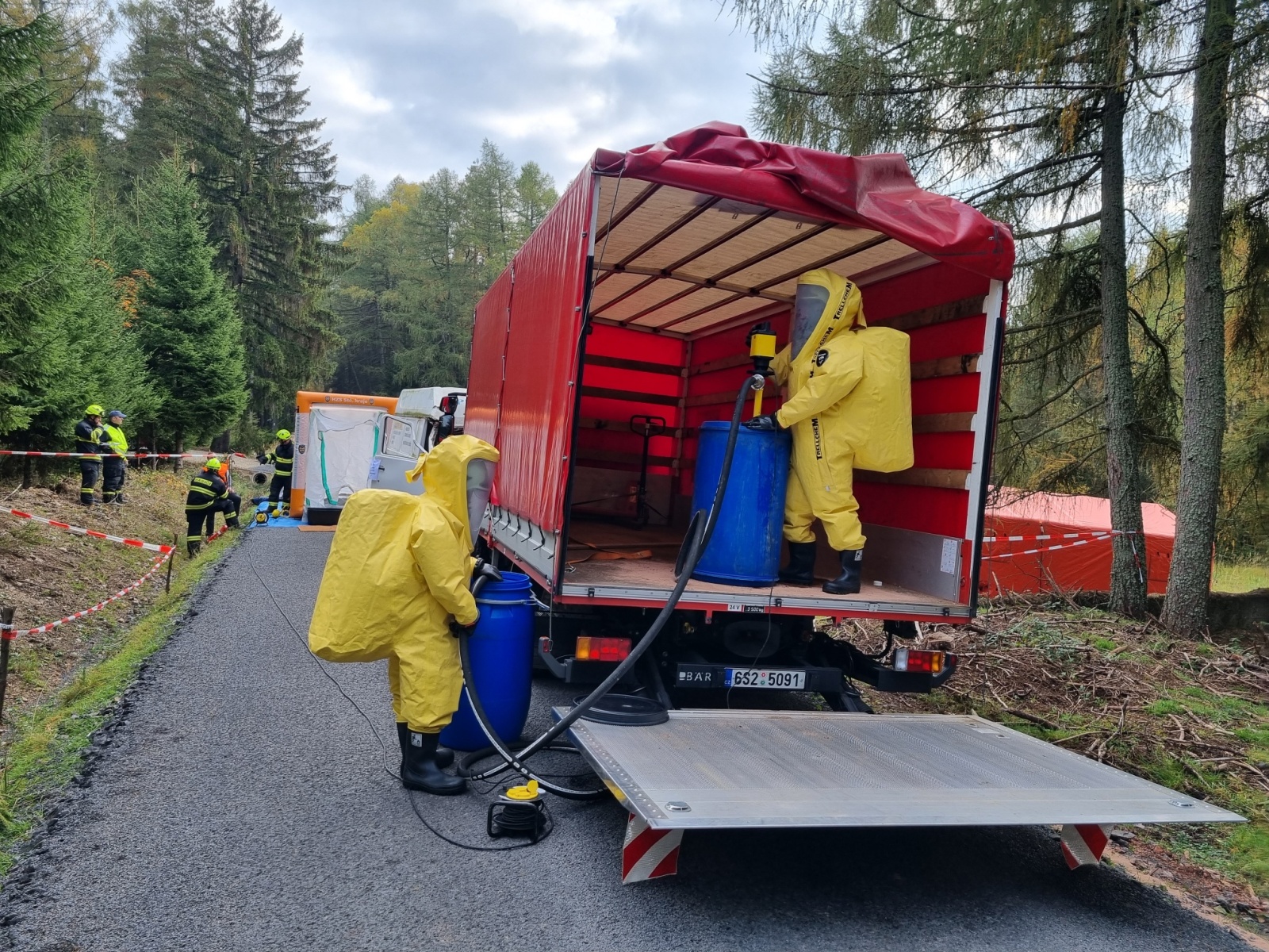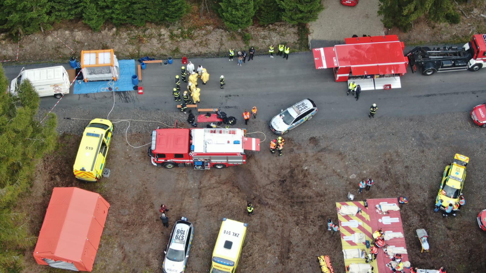 Ve čtvrtek 13. října došlo k dopravní nehodě dodávky a nákladního automobilu s následným únikem nebezpečné látky – to byl námět taktického cvičení složek IZS okresu Příbram, které se konalo na komunikaci nedaleko vodní nádrže Pilská v Chráněné krajinné oblasti Brdy.