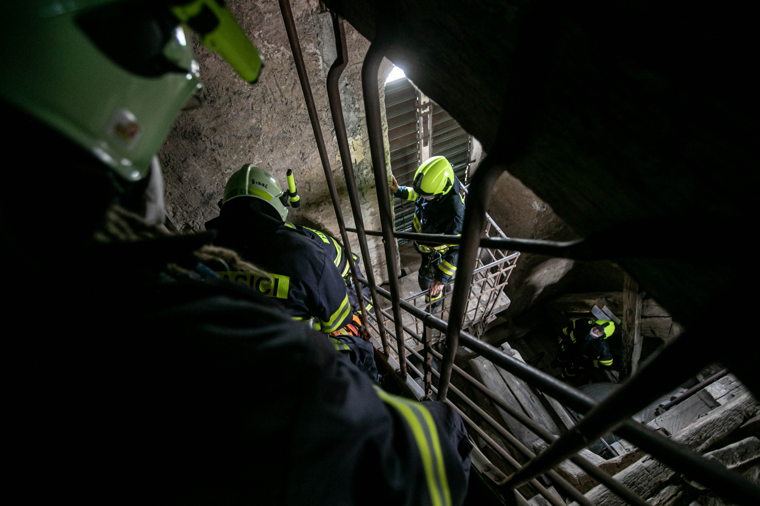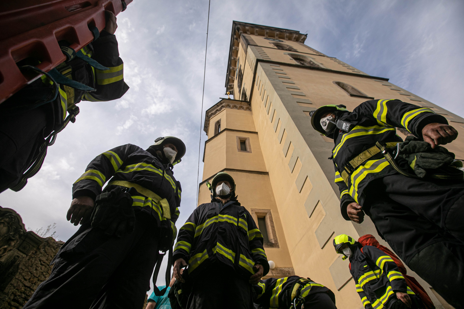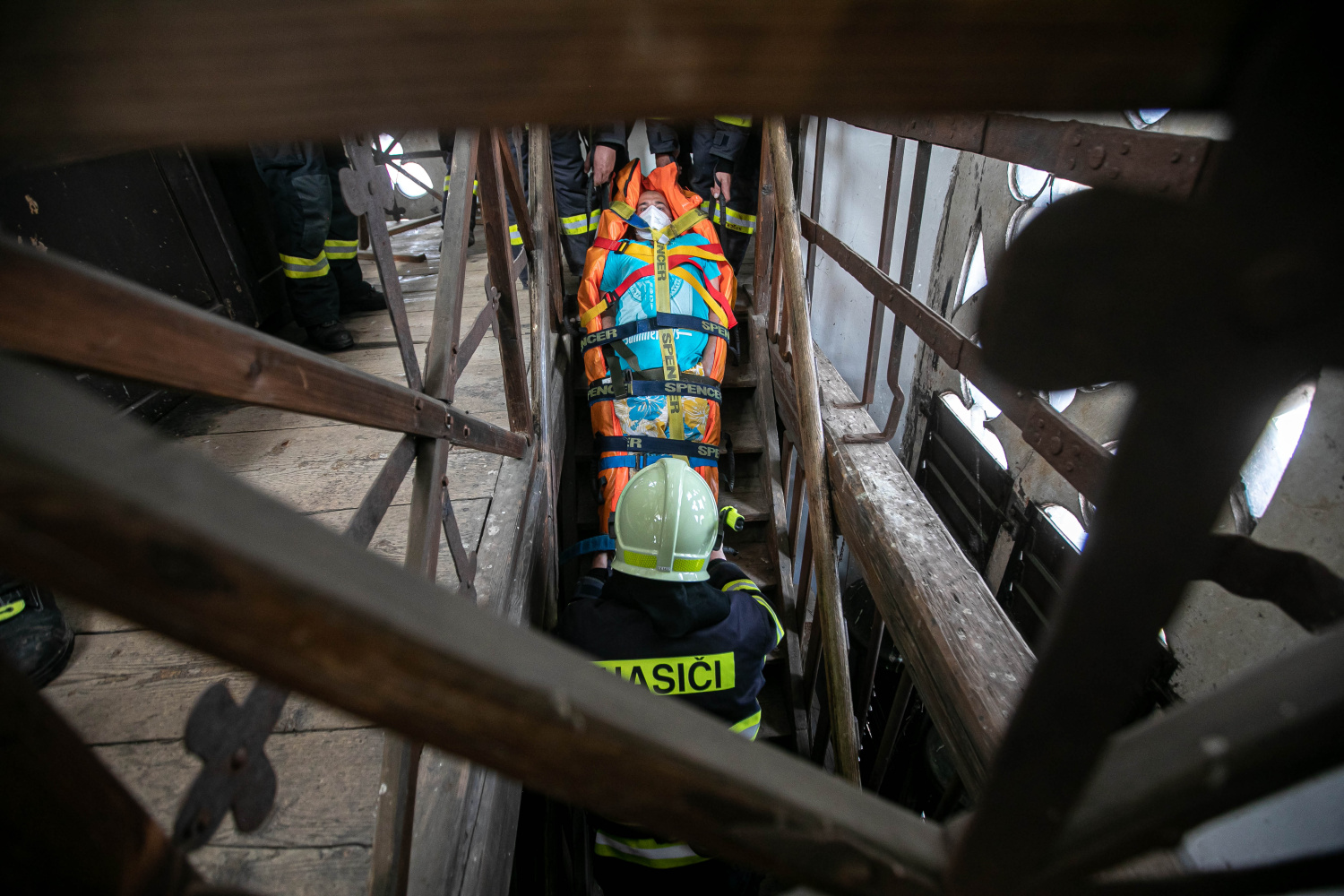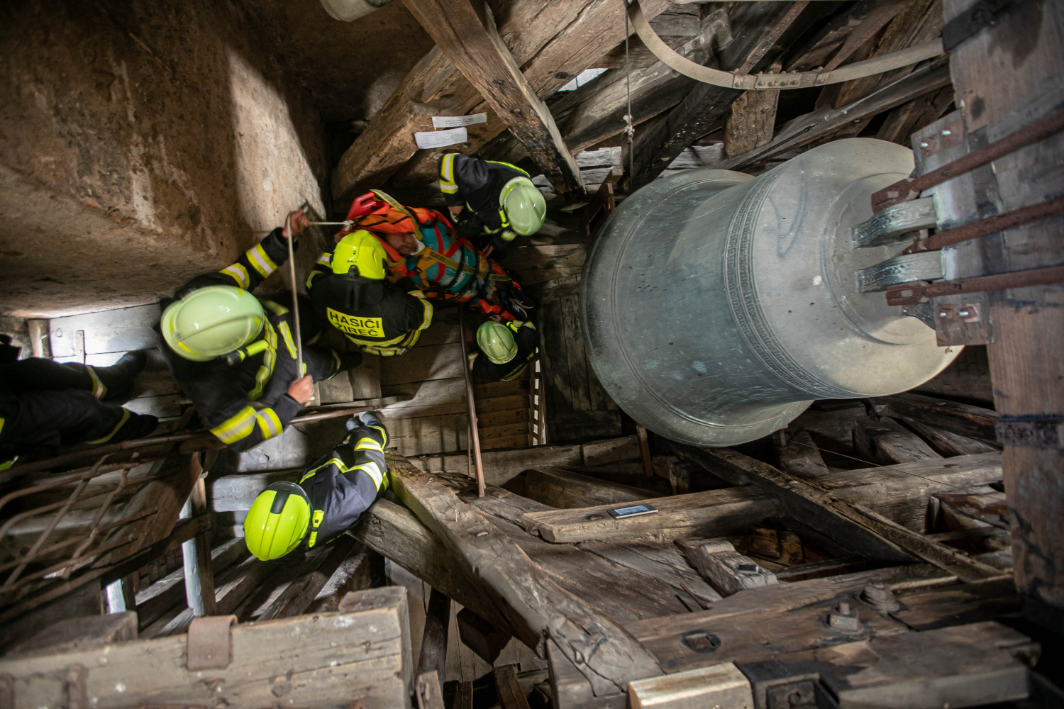 Cvičná záchrana osob z kostelní věže