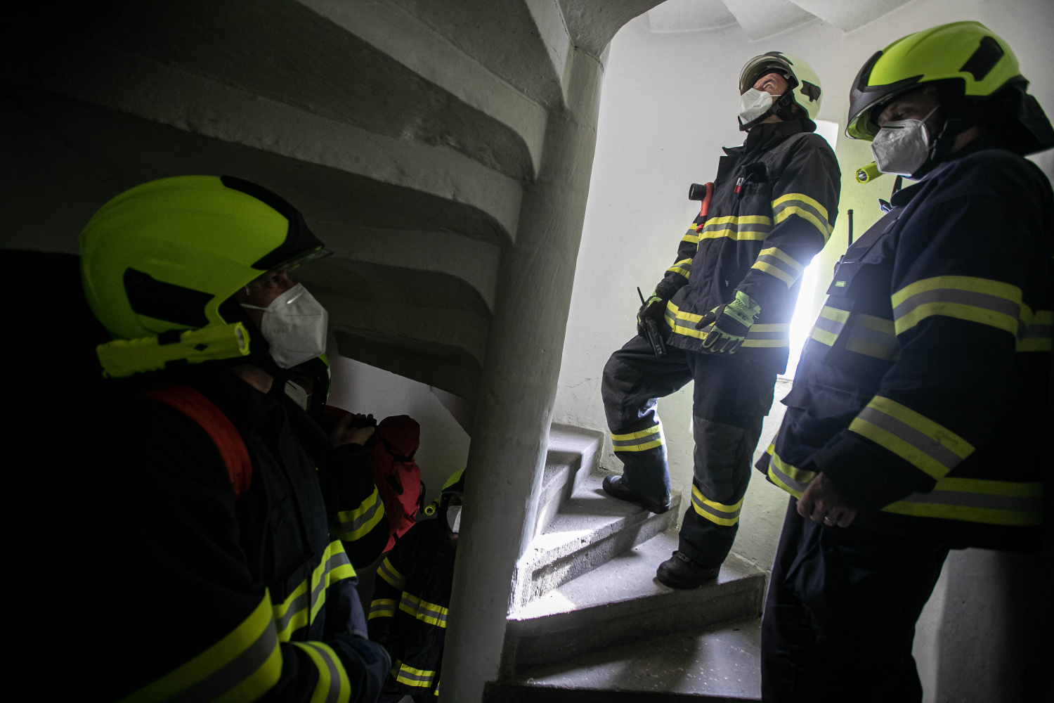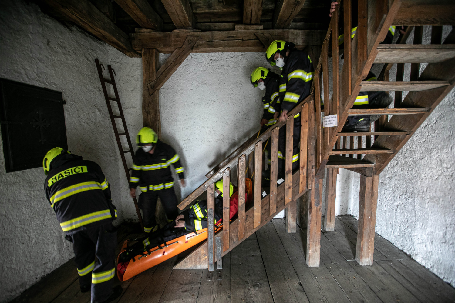 Pomoc při transportu osob z vyhlídkové věže kostela sv. Jana Křtitele, která je ve Dvoře Králové nad Labem oblíbeným cílem, cvičili v úterý 15. června 2021 místní profesionální a dobrovolní hasiči. Podle fiktivního scénáře mělo dojít při pohybu návštěvníků k pádu osoby ze schodiště, přitom strhla dalšího člověka stoupajícího po úzkých schodech vedoucích až na vyhlídku. Jednotky si pak musely poradit s transportem figurantů po příkrých schodech až do prostoru před kostelem, kde by si zraněné převzala zdravotnická záchranná služba.