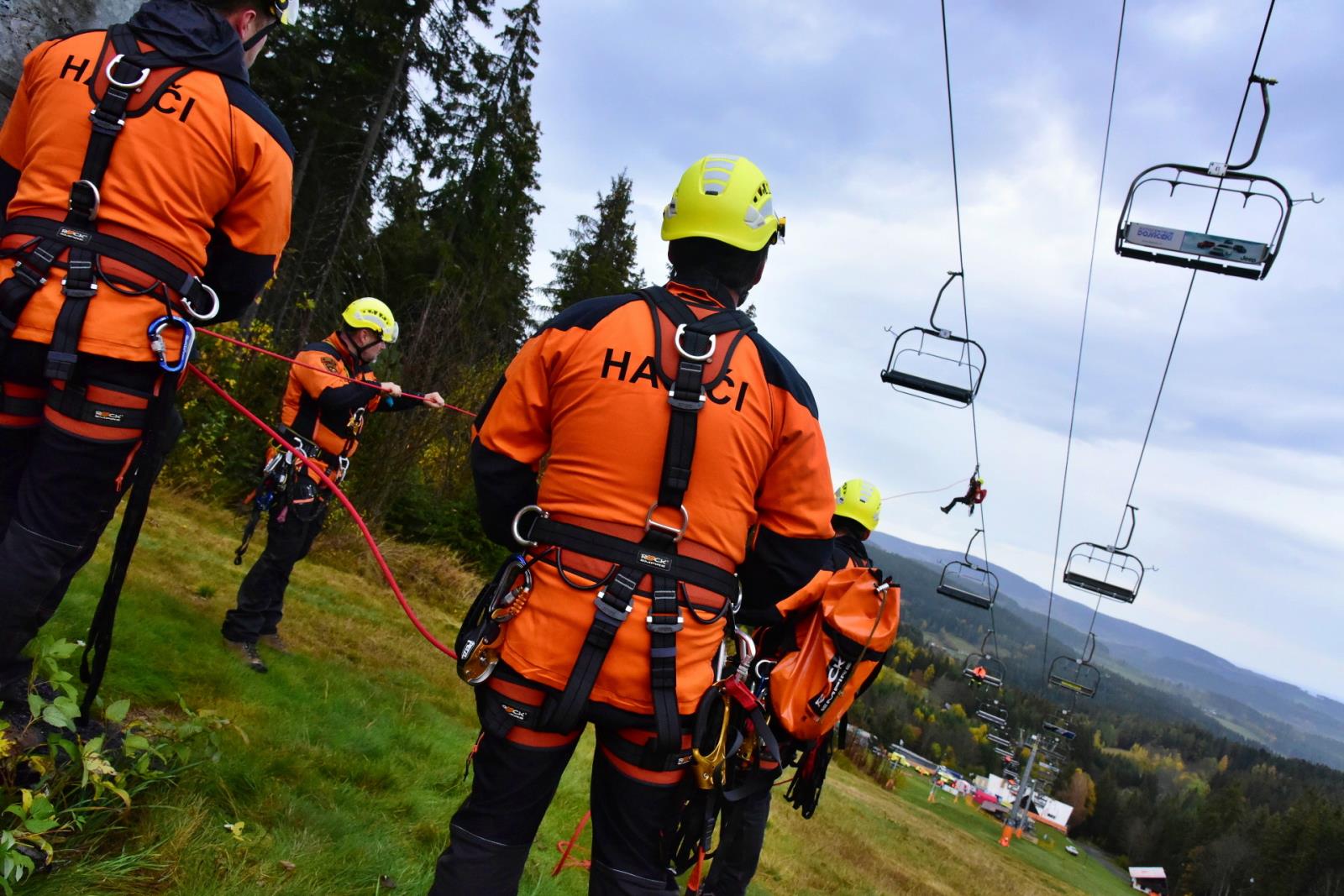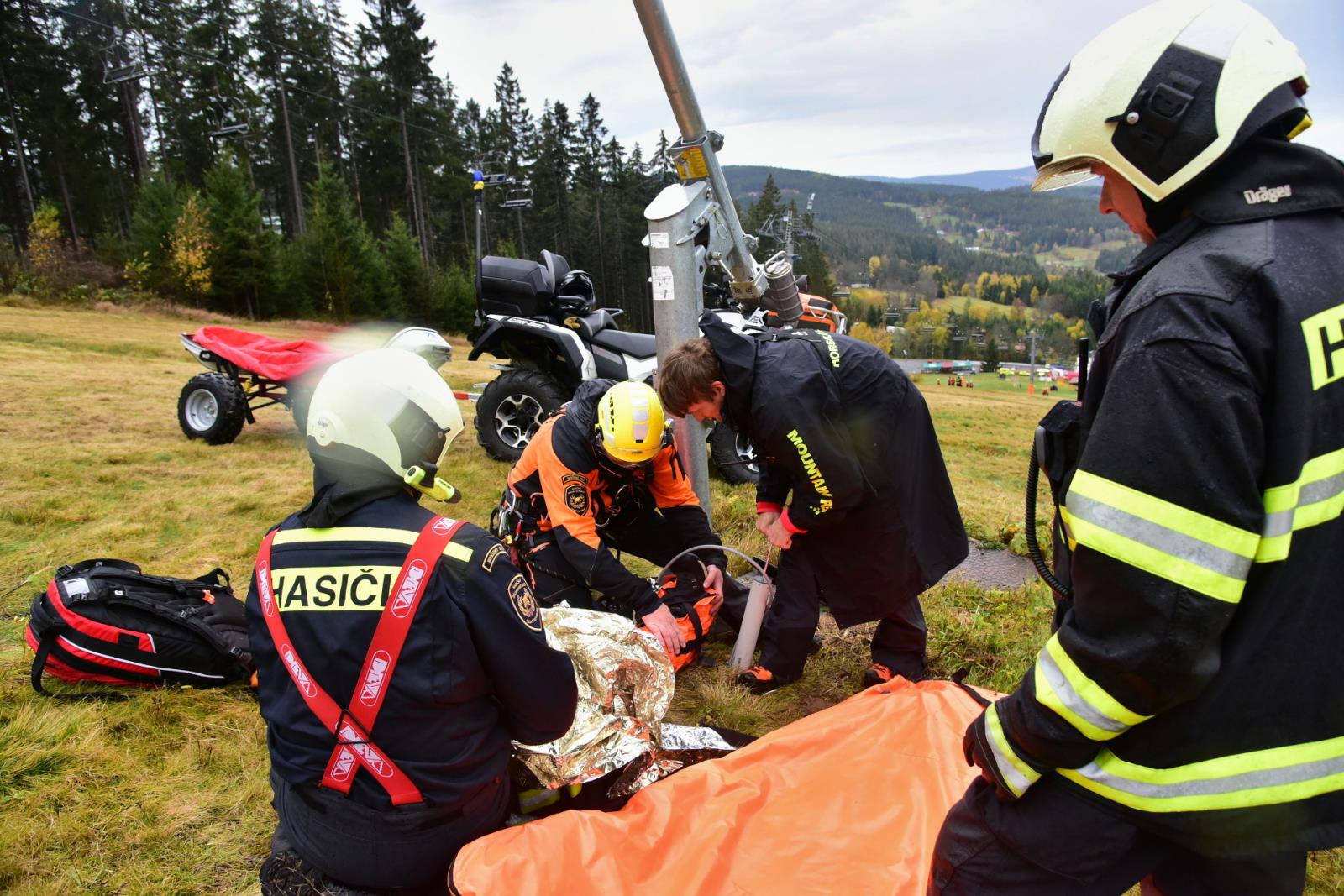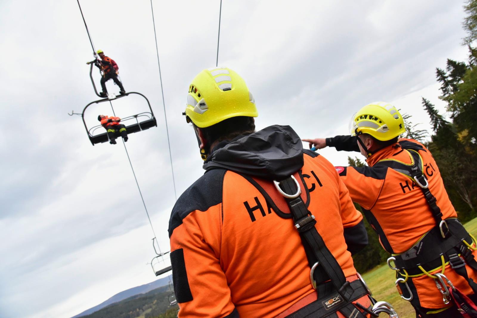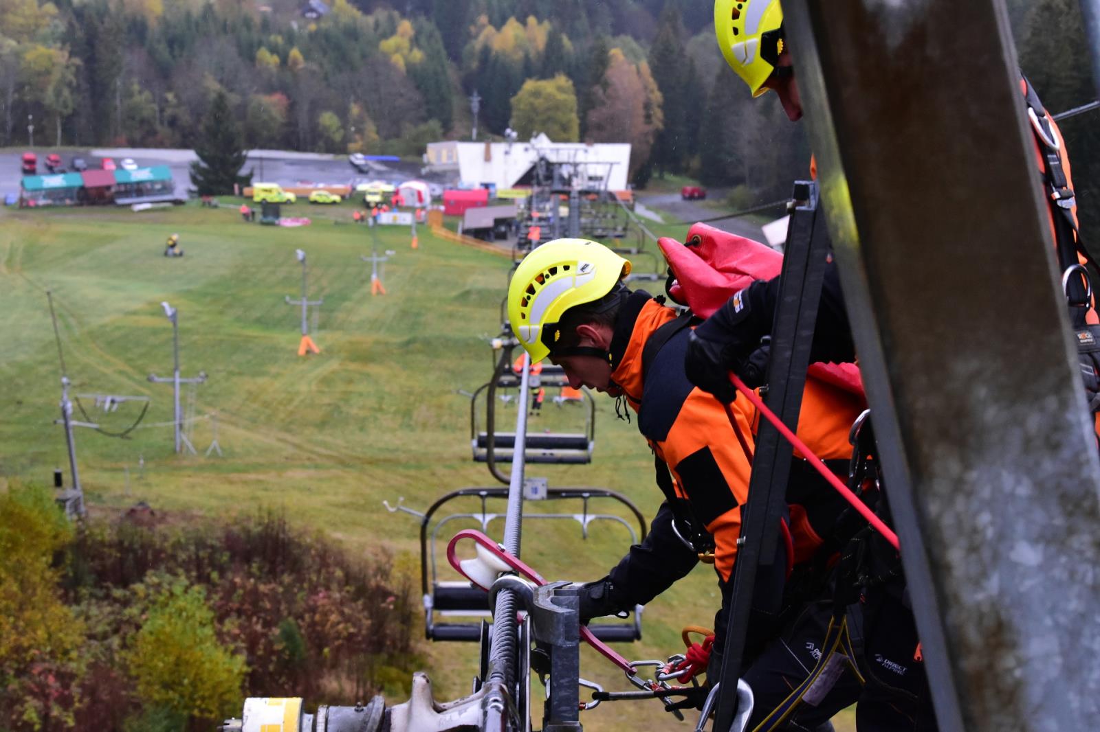 Porucha na lanové dráze, na které uvízly přepravované osoby - to byl námět taktického cvičení, které proběhlo v pondělí 24. října na lanovce Kobyla v Lyžařském areálu Zadov.