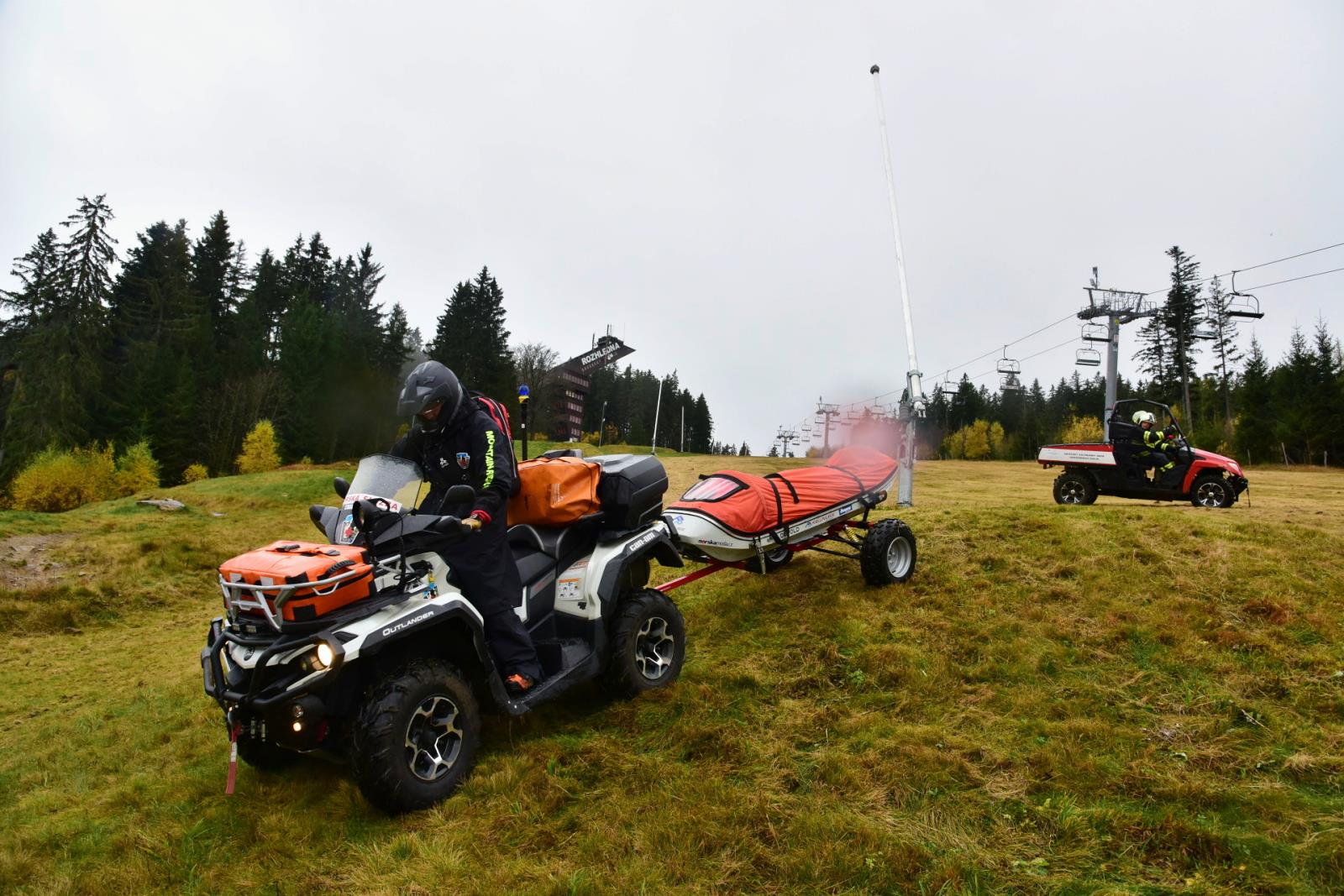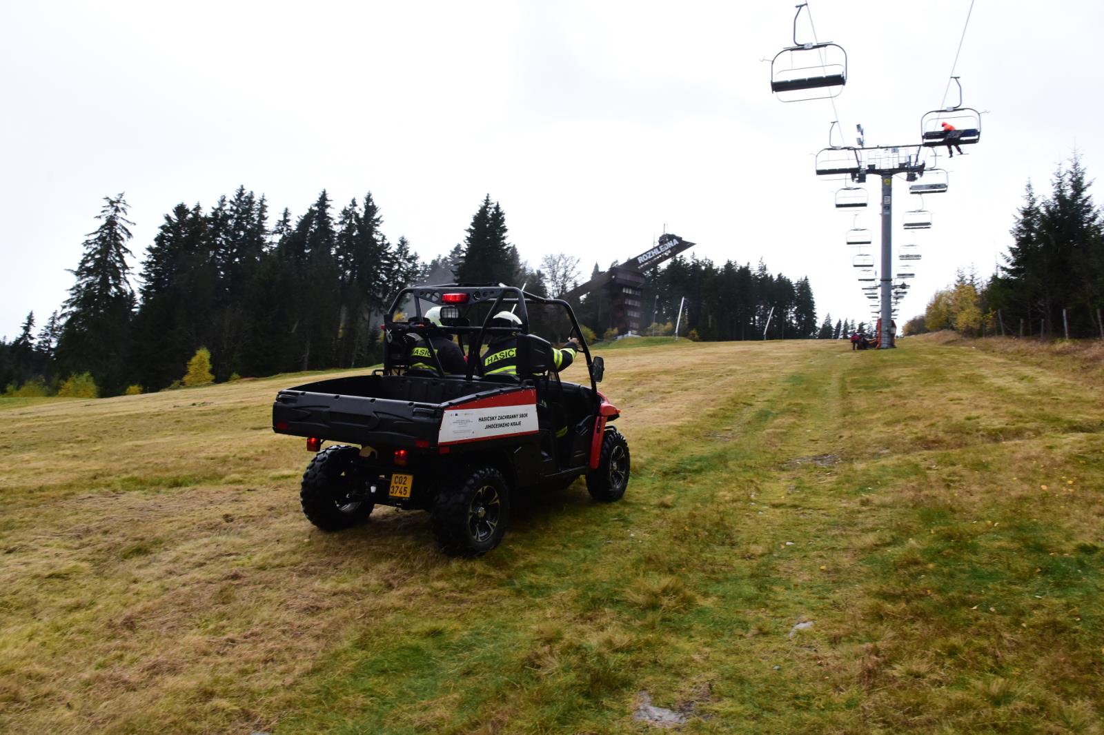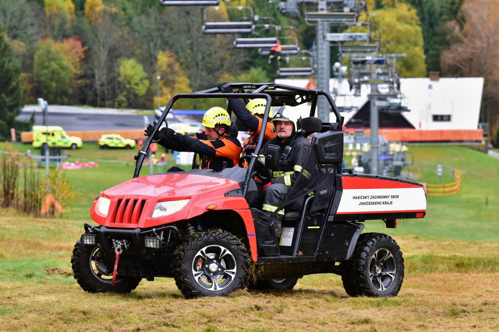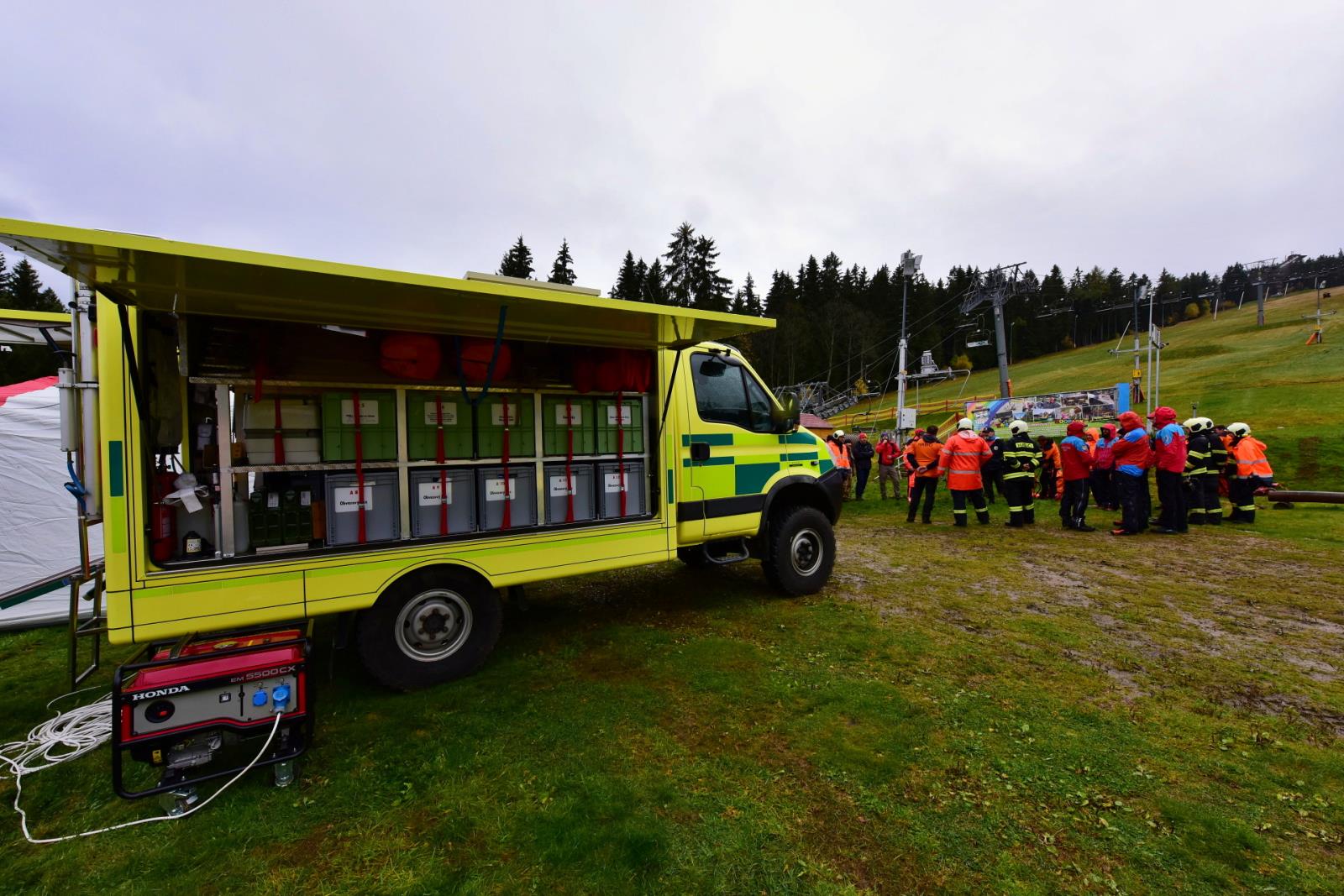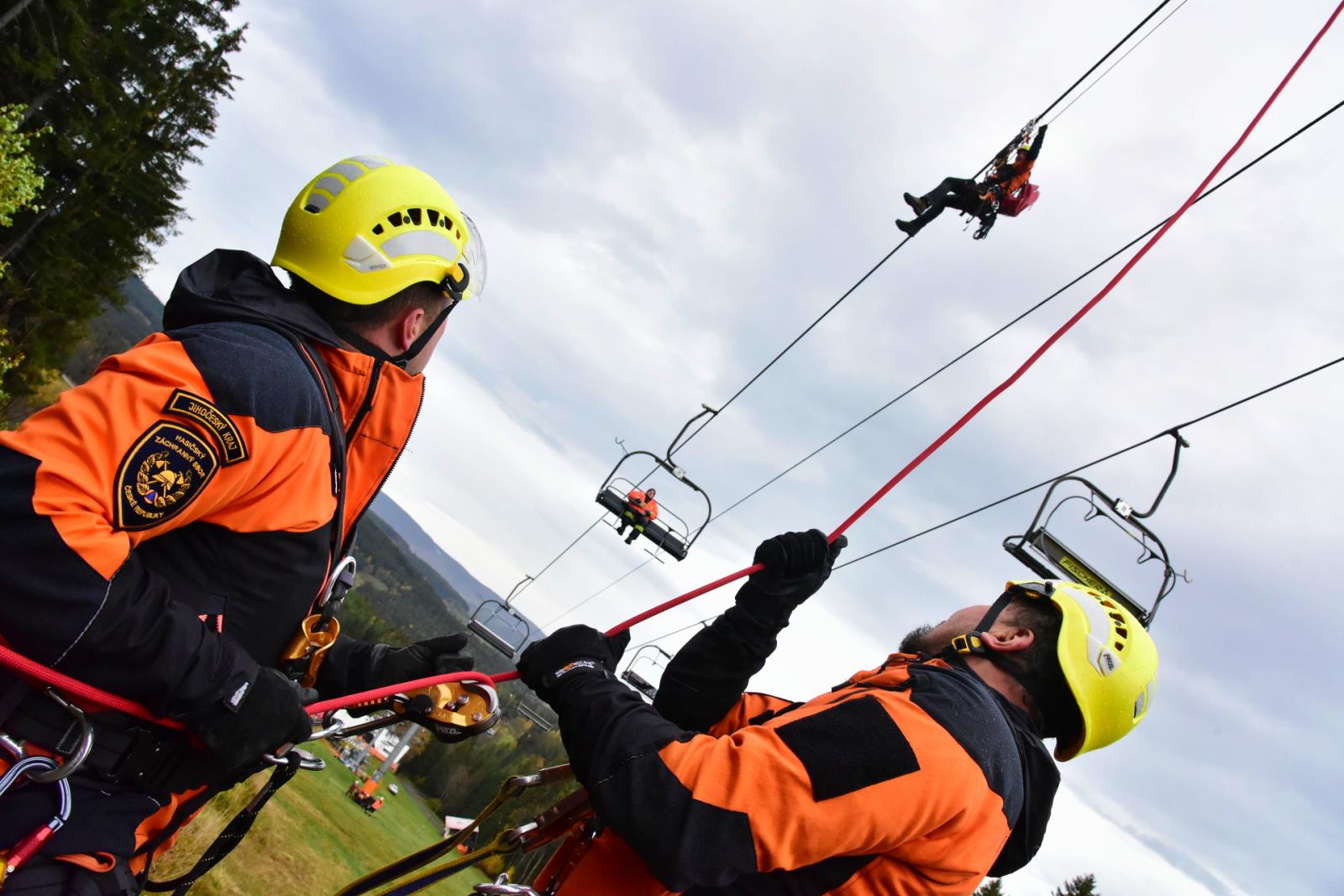 Porucha na lanové dráze, na které uvízly přepravované osoby - to byl námět taktického cvičení, které proběhlo v pondělí 24. října na lanovce Kobyla v Lyžařském areálu Zadov.