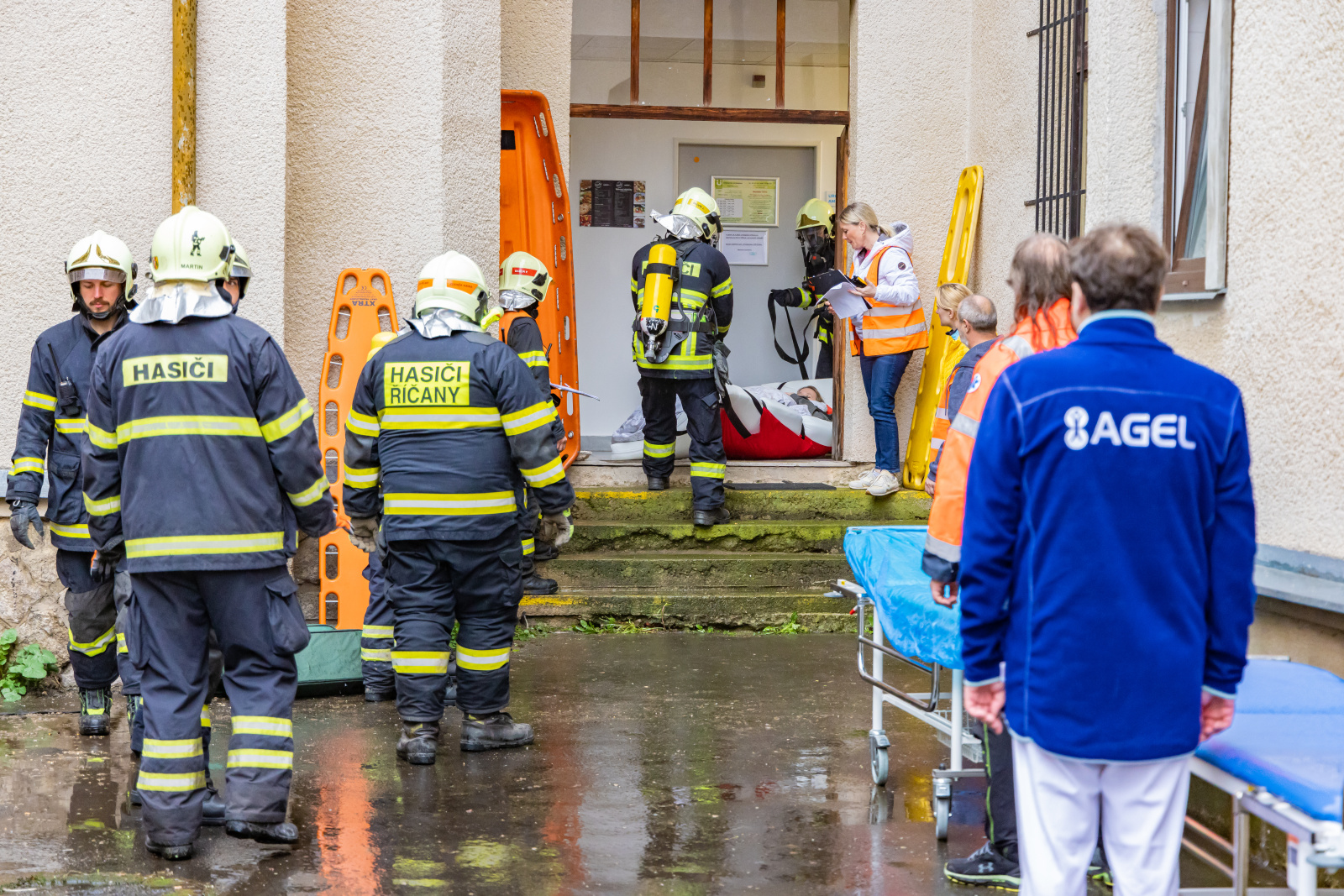 V pátek 14. dubna proběhlo v areálu Nemocnice AGEL Říčany a.s. taktické cvičení jednotek požární ochrany, kterého se účastnila stanice HZS Říčany s dobrovolnými hasiči z Říčan, Tehovce a Mukařova. Námětem cvičení byl požár vybavení na chodbě v lůžkové části nemocnice ve druhém nadzemním podlaží.