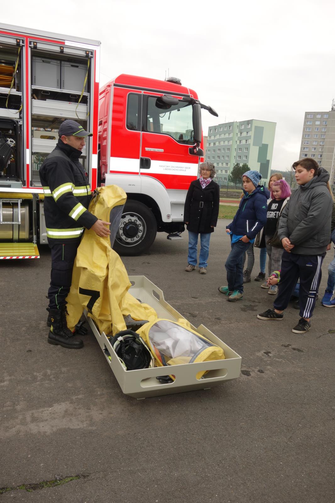 Dne bezpečí se zúčastnilo celkem 130 dětí ze 7 tříd 2. stupně ZŠ. Profesionální hasiči z oddělení ochrany obyvatelstva a krizového řízení krajského ředitelství Liberec a z územního odboru Česká Lípa HZS Libereckého kraje připravili ve škole dvě stanoviště, kde se děti i jejich učitelé mohli dozvědět informace o možném ohrožení při úniku chloru nebo čpavku, co dělat při úniku těchto látek a prakticky si vyzkoušet vytvořit improvizovanou ochranu dýchacích cest, očí a celého povrchu těla. Na třetím stanovišti čekal na žáky nový chemický automobil HZS Libereckého kraje s kompletním vybavením na zásahy při úniku nebezpečných chemických látek. Technik chemické a technické služby z oddělení IZS a služeb HZS Libereckého kraje dětem ukázal přetlakové protichemické obleky, měřicí přístroje a další techniku, kterou profesionální hasiči při těchto mimořádných událostech používají. Děti dostaly také letáčky s informacemi, které vytvořili pracovníci oddělení ochrany obyvatelstva a krizového řízení HZS Libereckého kraje a tisk financoval právě státní podnik Diamo.