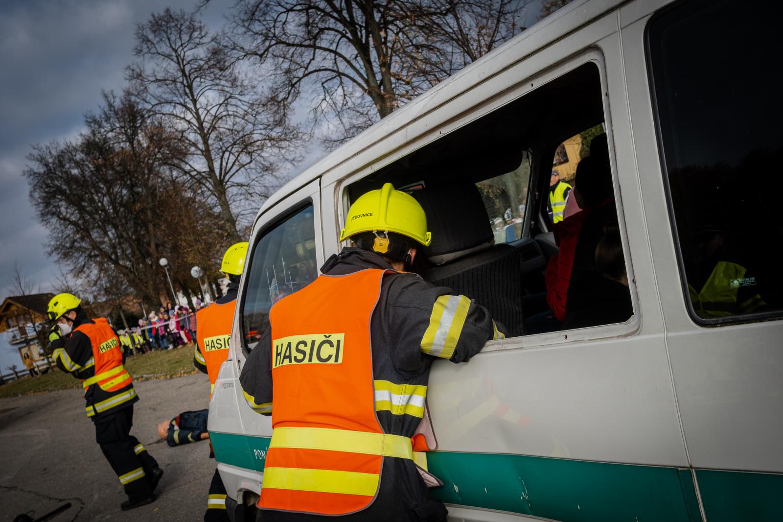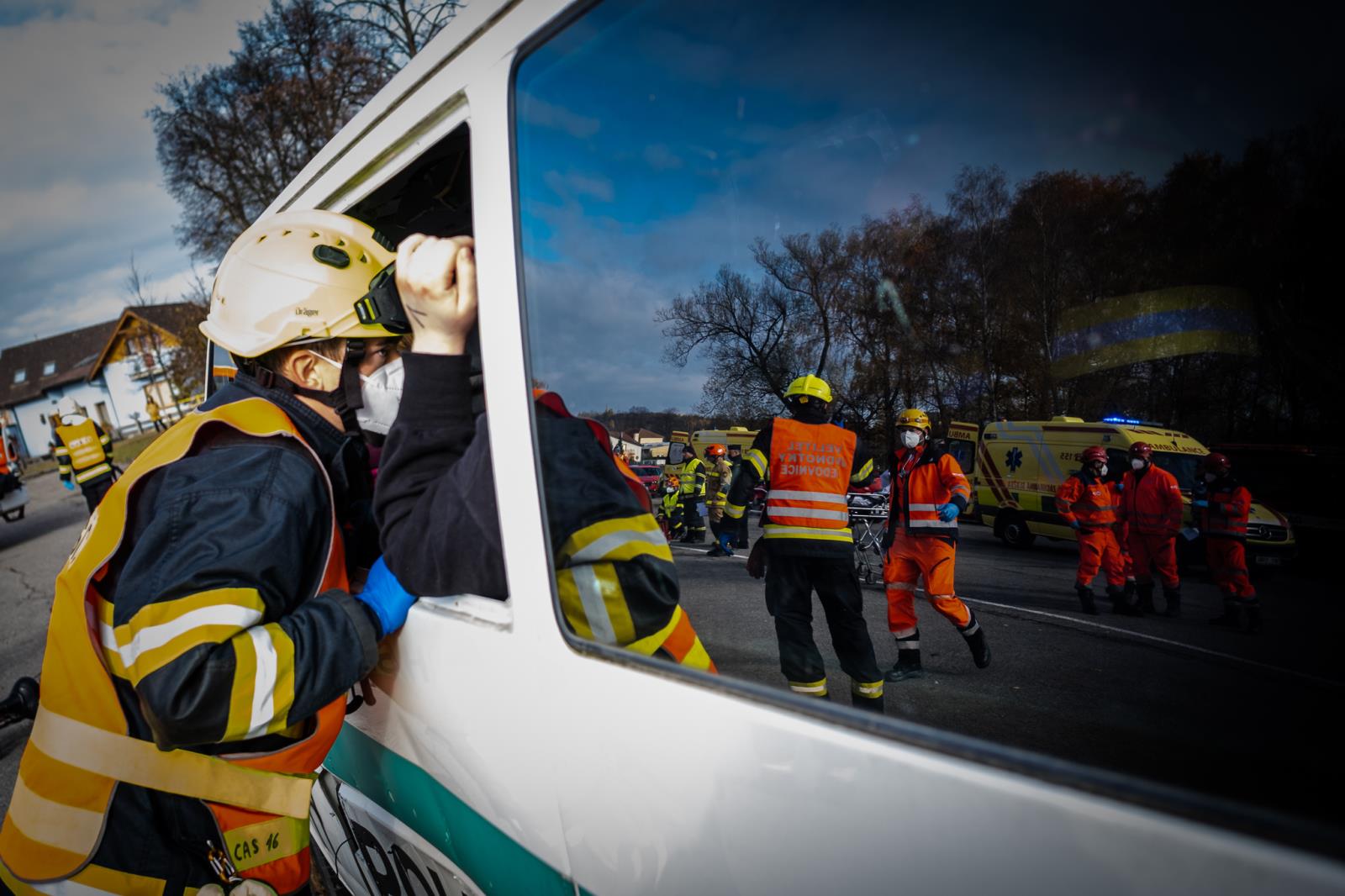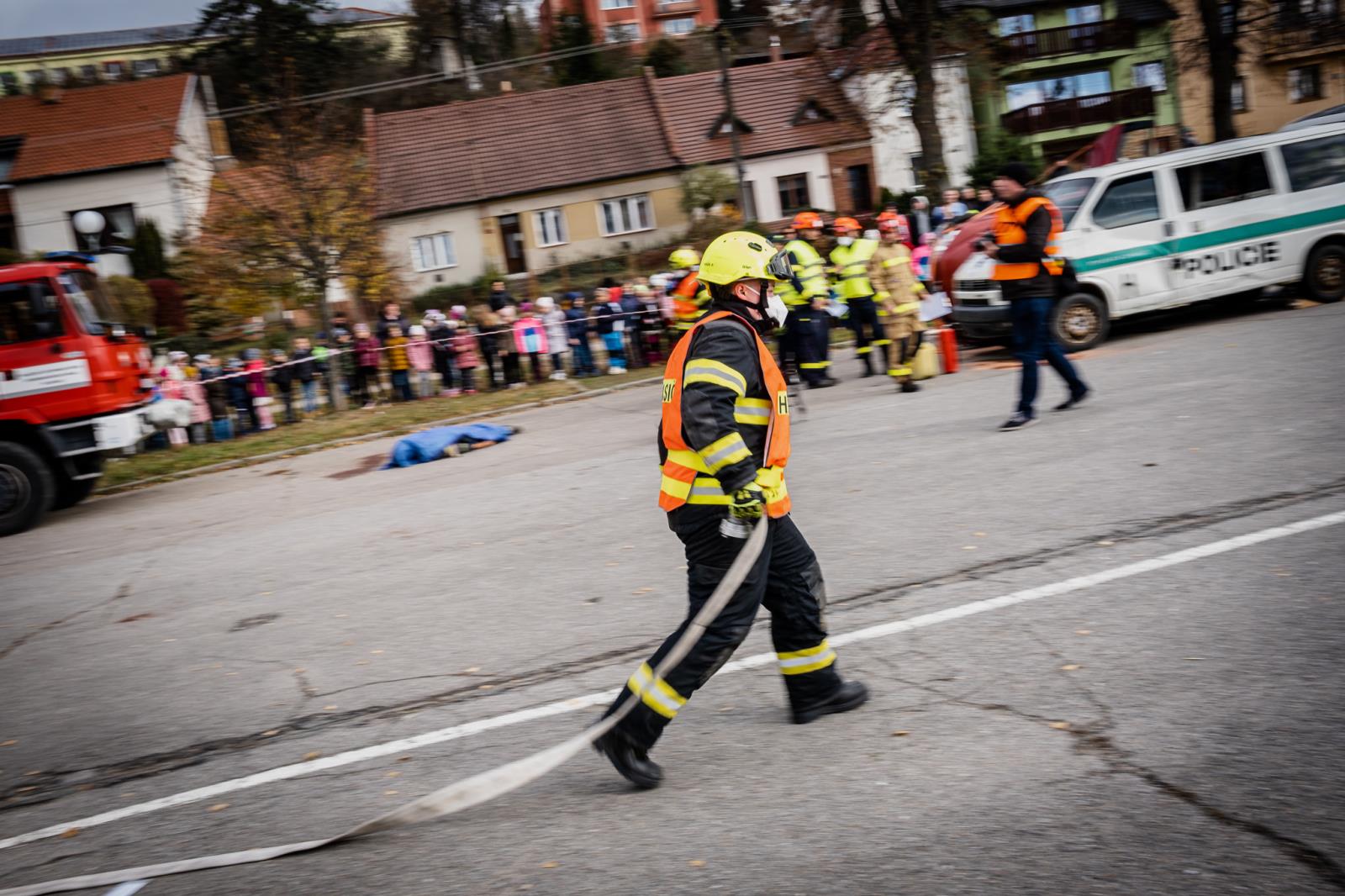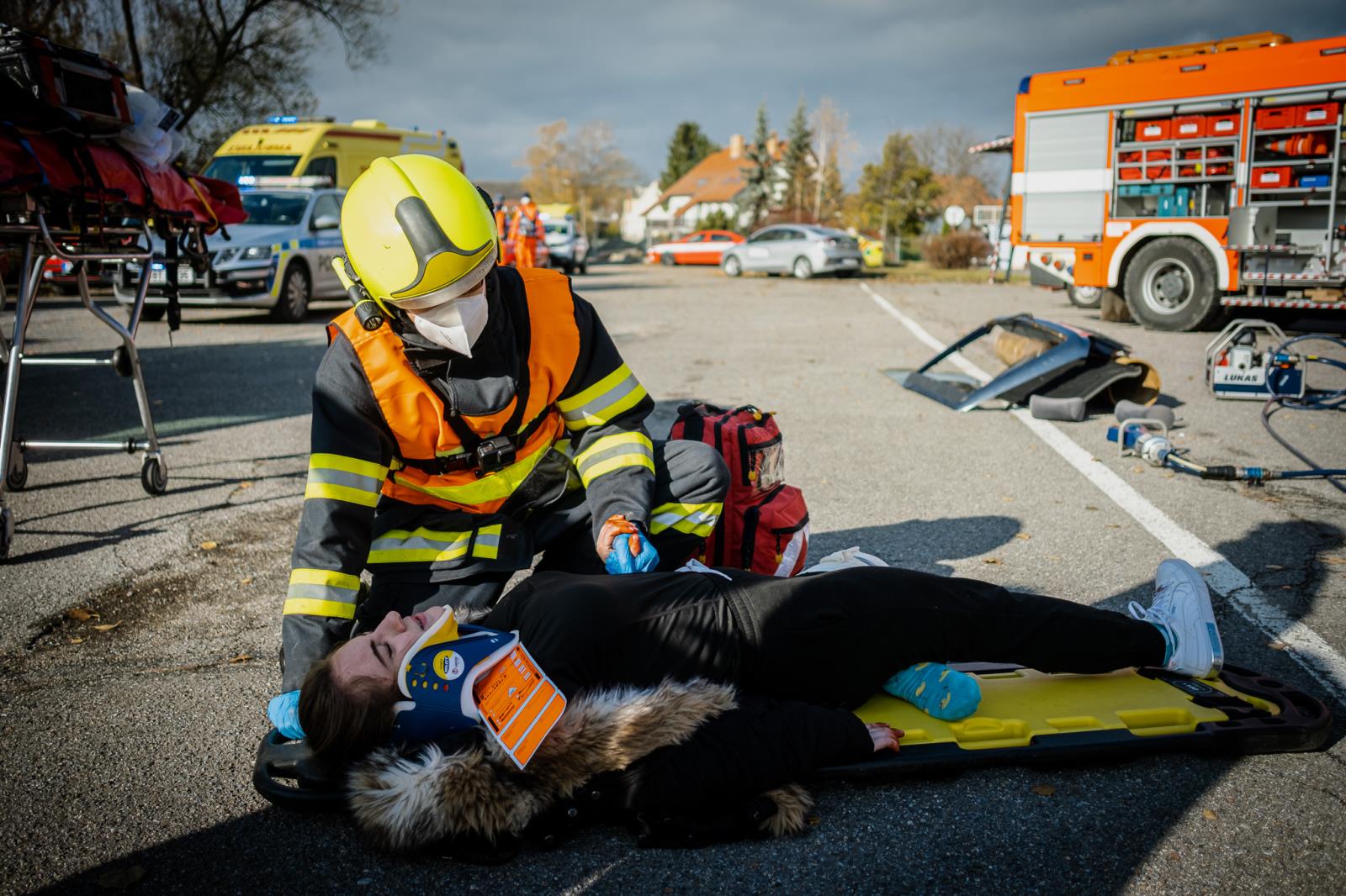 Téměř třicet profesionálních a dobrovolných hasičů sehrálo během cvičení důležitou roli. Po střetu dvou osobních aut, dodávky a cyklisty bylo nutné zraněné vyprošťovat, transportovat a zajistit zázemí zasahujícím.